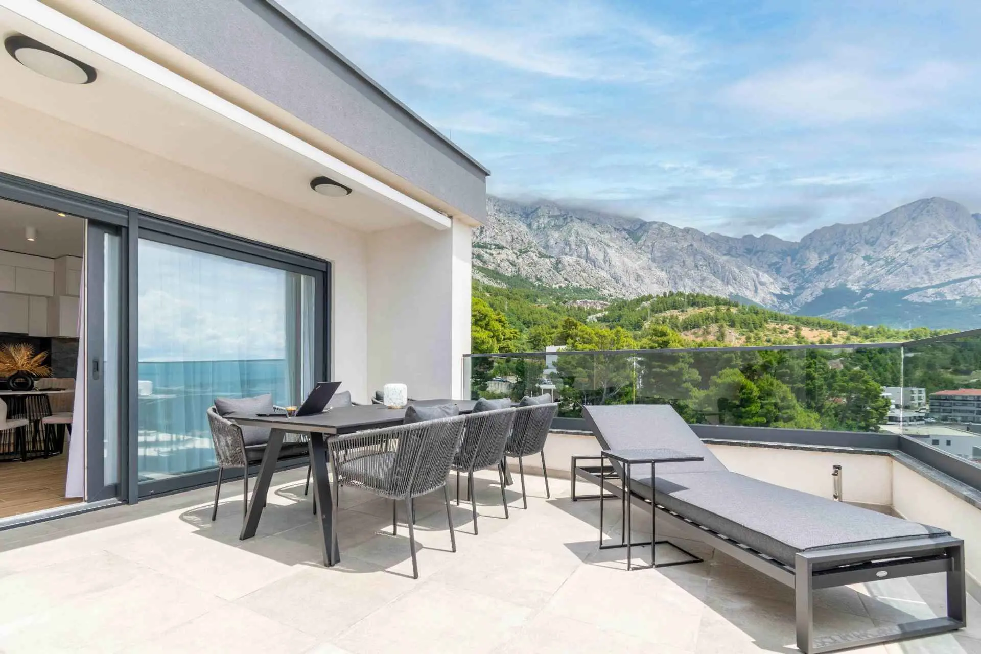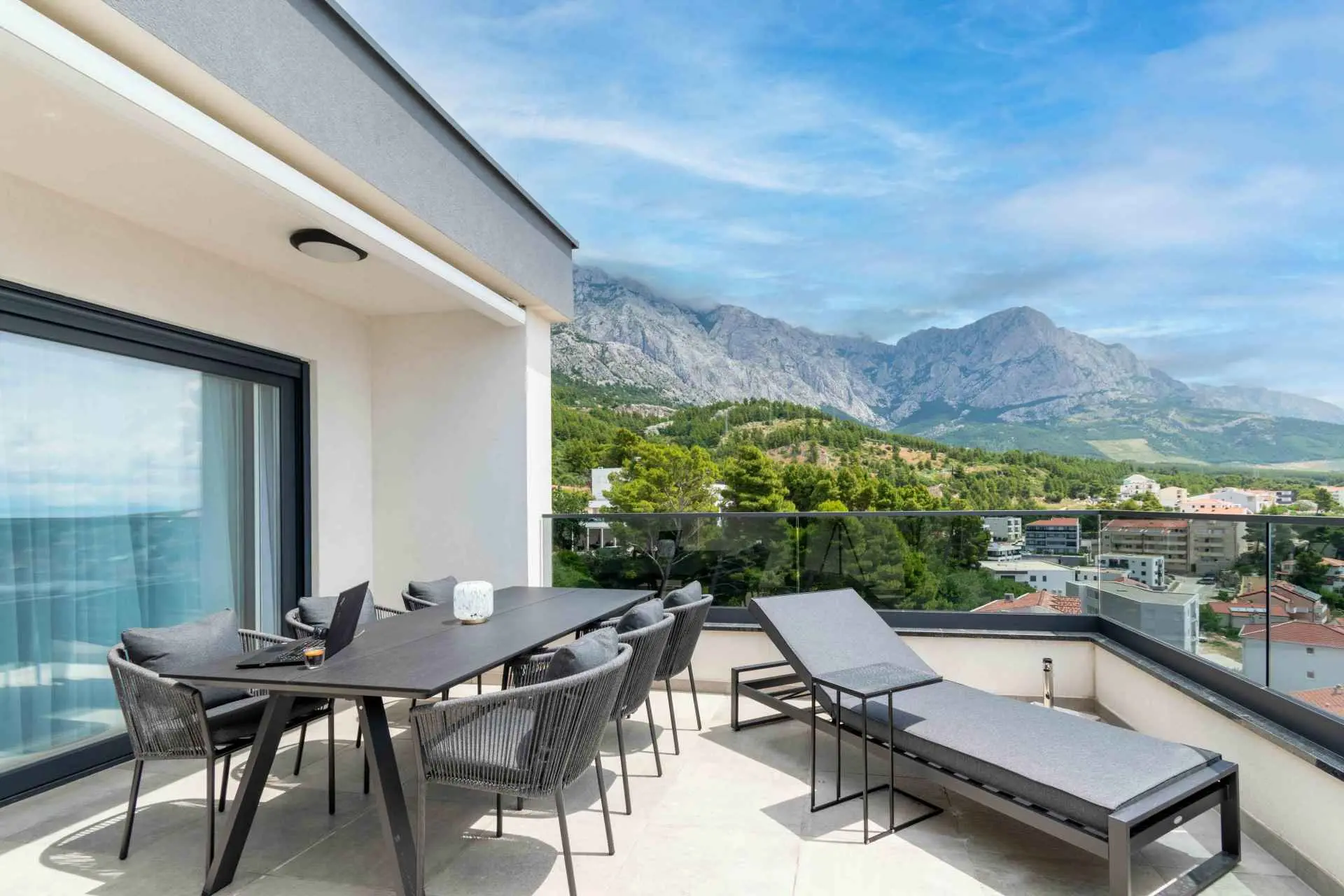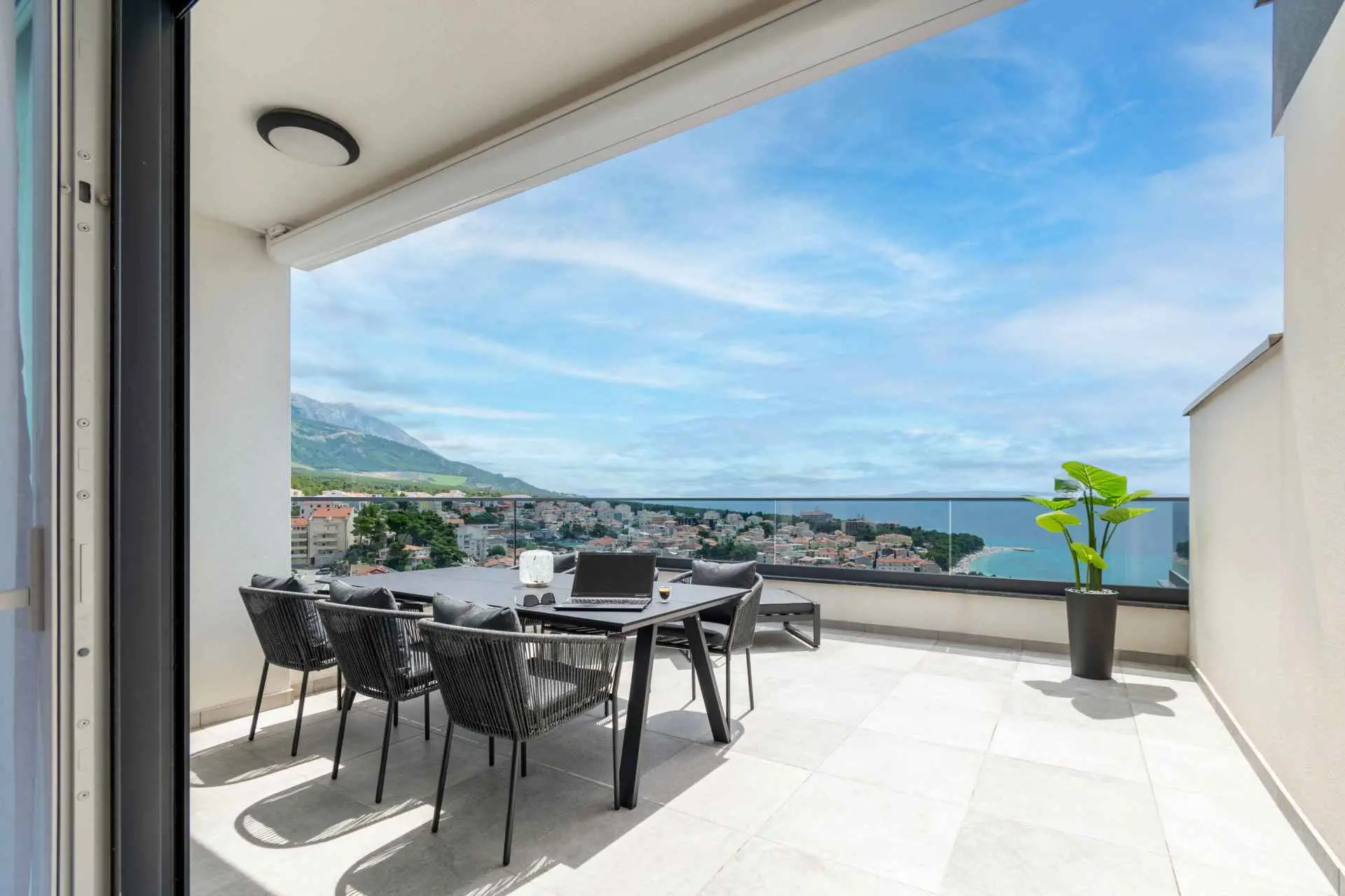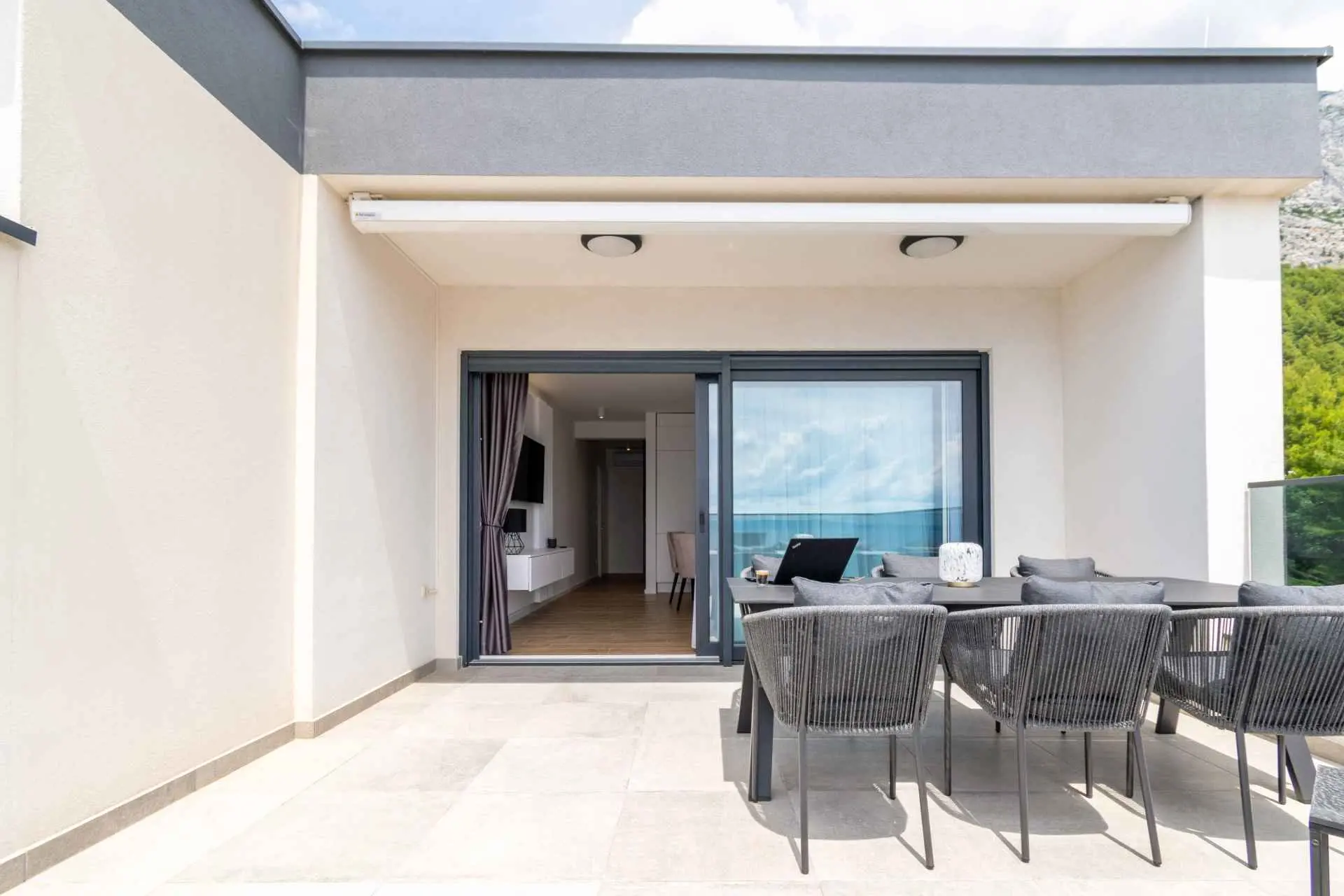 Apartmán Sky nabízí speciální ubytování s nezapomenutelným výhledem na moře, Brač a Bašku Vodu. Tento moderní apartmán se skládá z 1 ložnice, obývacího pokoje s rozkládací pohovkou a velké terasy se sedacím nábytkem a lehátky. Za domem máte vlastní parkovací místo.