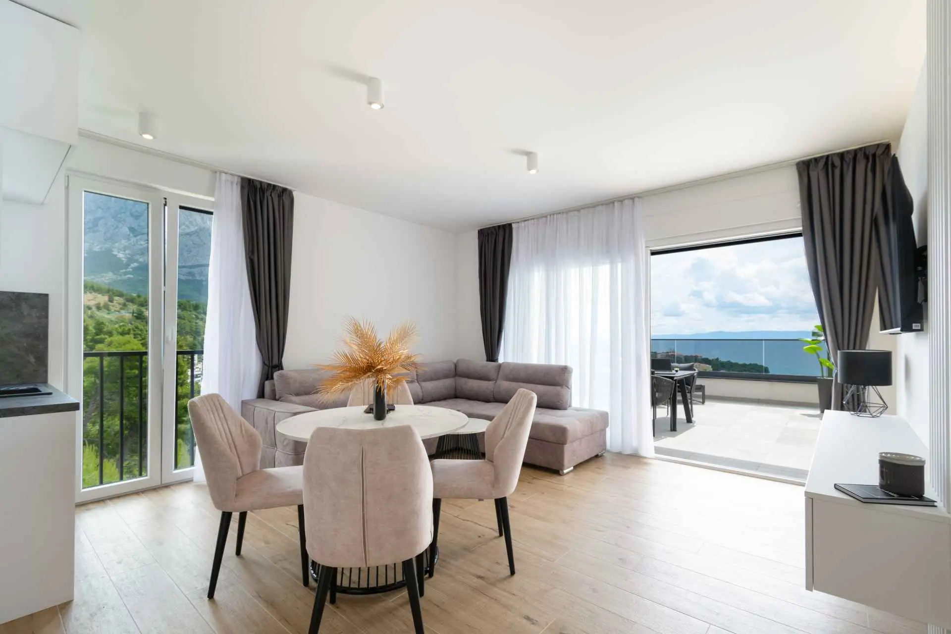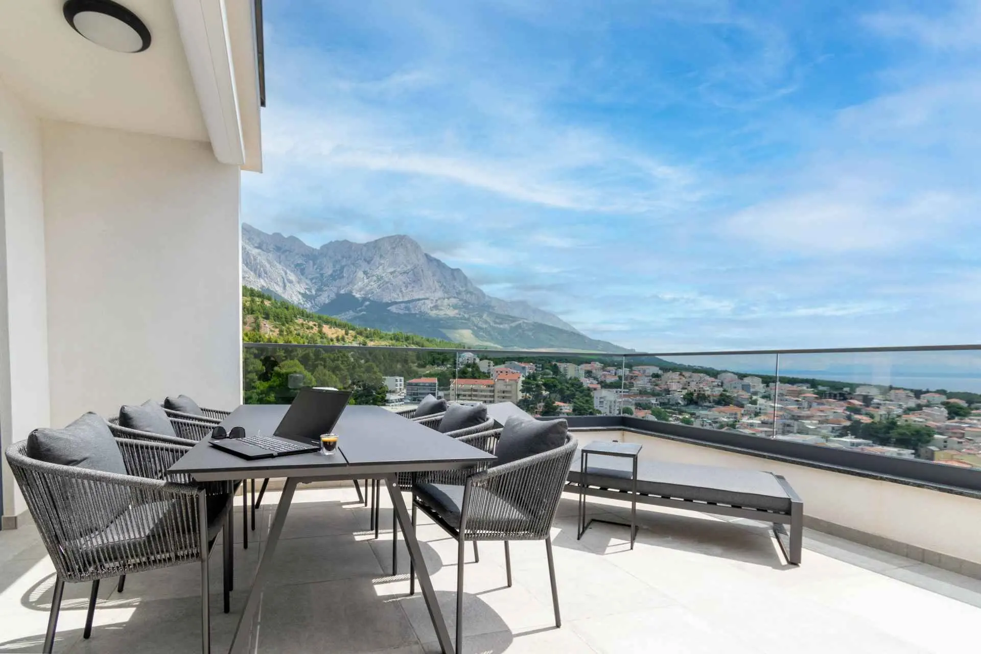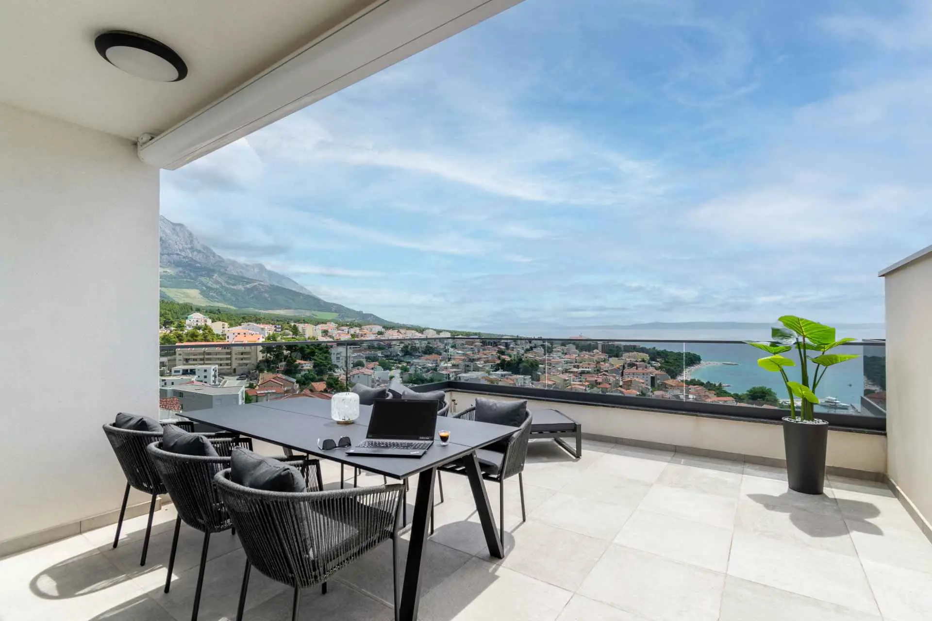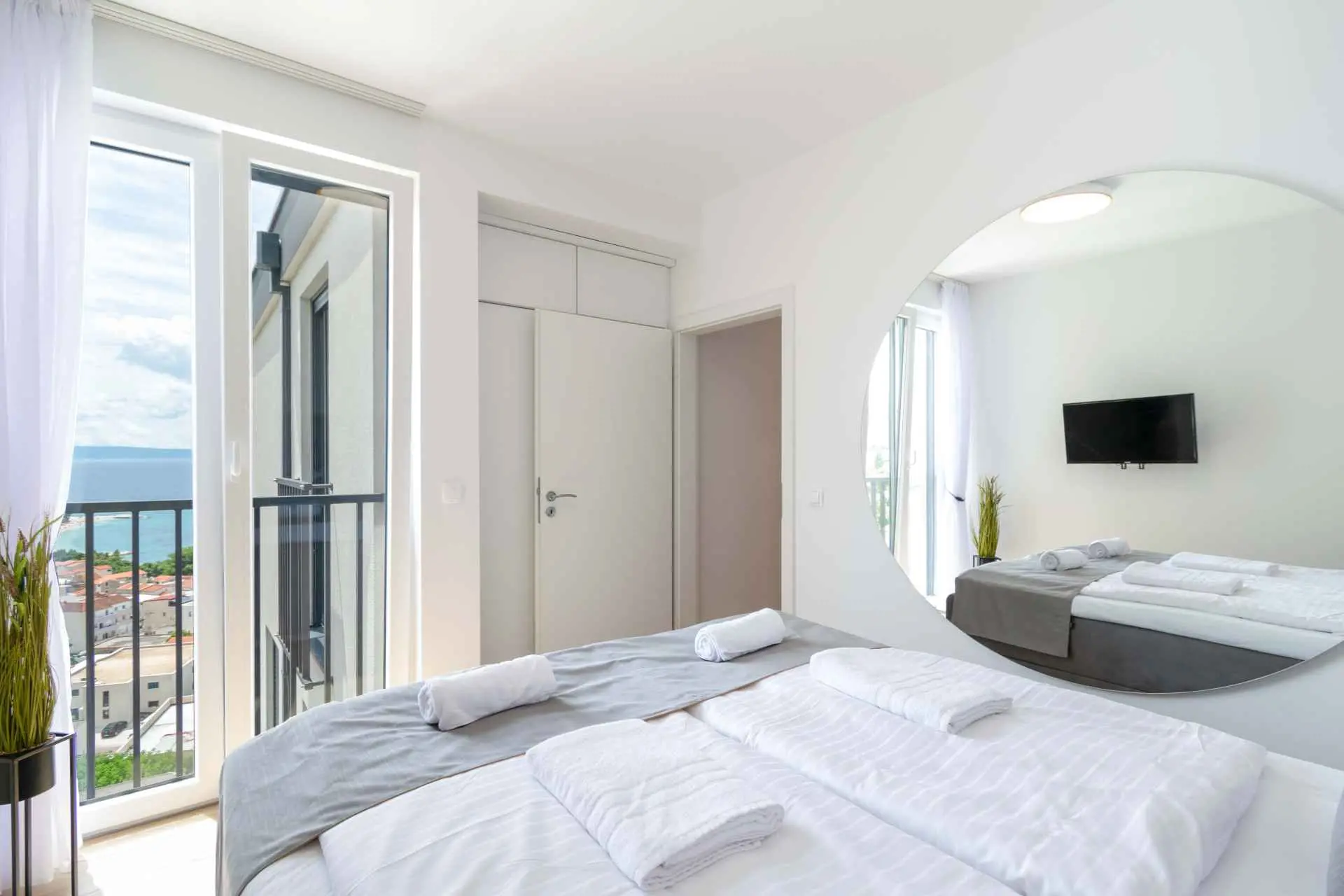 Apartmán Sky nabízí speciální ubytování s nezapomenutelným výhledem na moře, Brač a Bašku Vodu. Tento moderní apartmán se skládá z 1 ložnice, obývacího pokoje s rozkládací pohovkou a velké terasy se sedacím nábytkem a lehátky. Za domem máte vlastní parkovací místo.