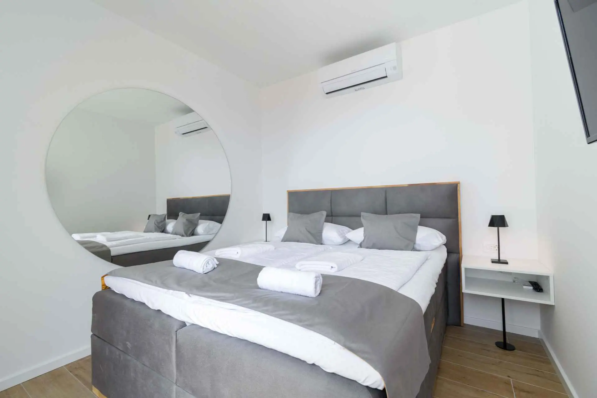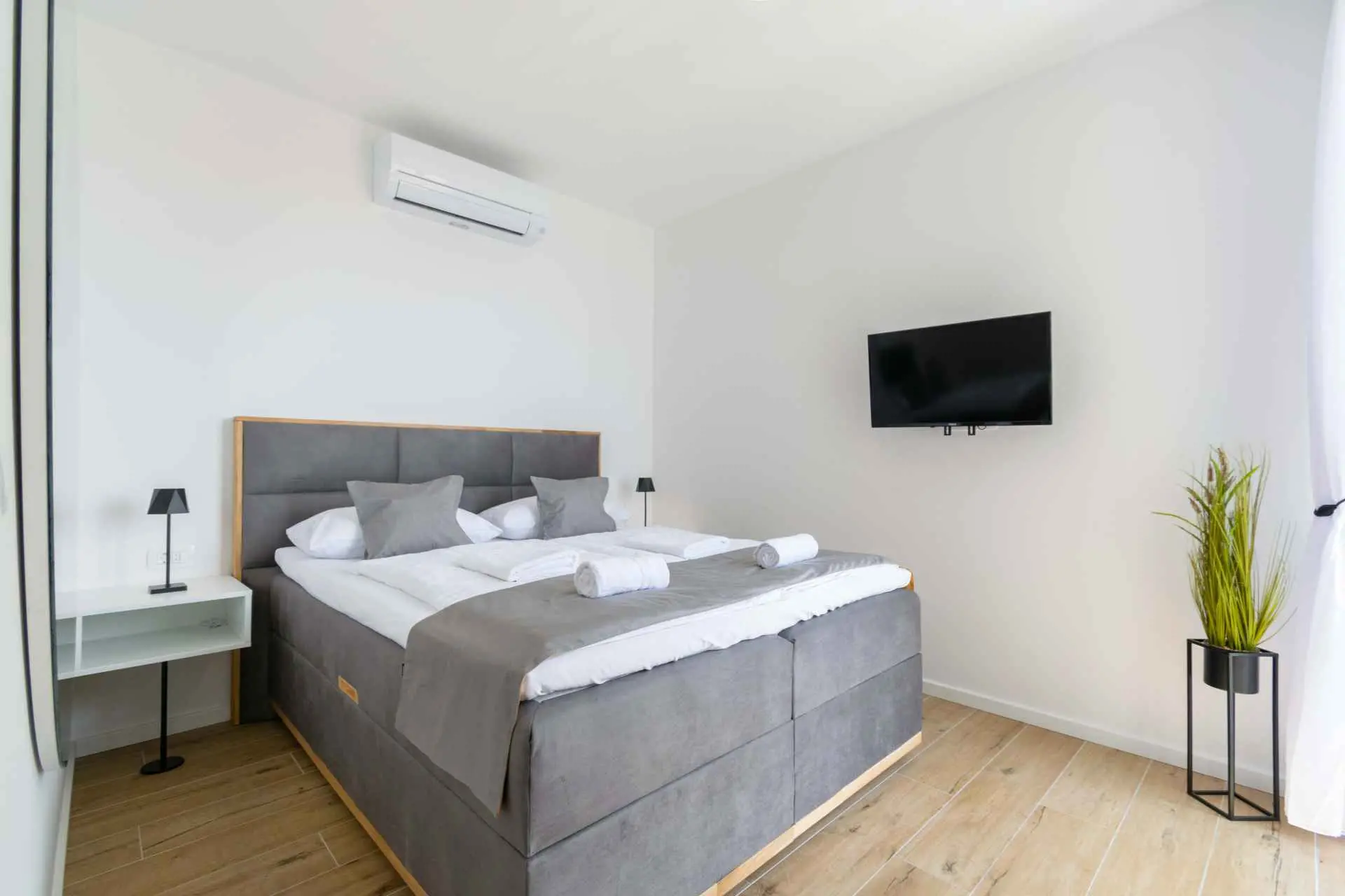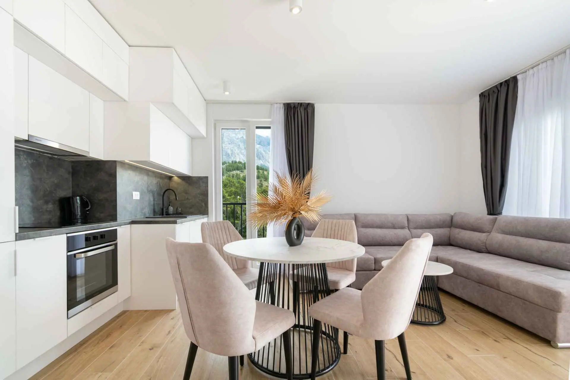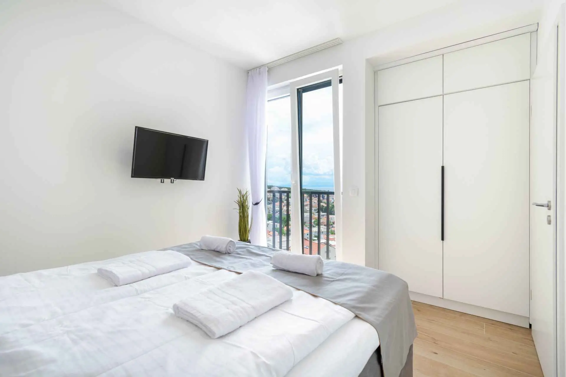 Apartmán Sky nabízí speciální ubytování s nezapomenutelným výhledem na moře, Brač a Bašku Vodu. Tento moderní apartmán se skládá z 1 ložnice, obývacího pokoje s rozkládací pohovkou a velké terasy se sedacím nábytkem a lehátky. Za domem máte vlastní parkovací místo.