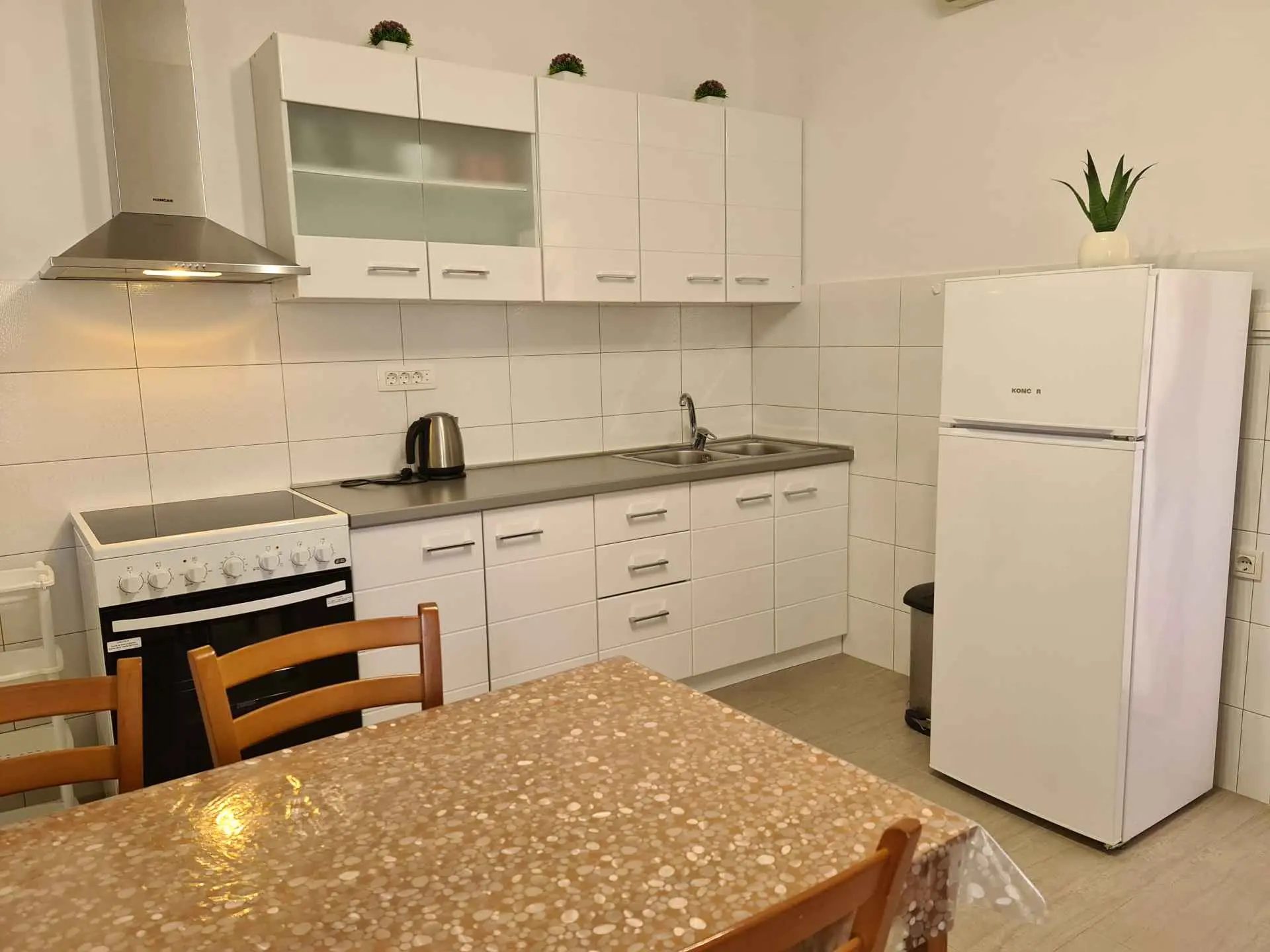 Naše apartmány se nacházejí v domě 200 m od oblázkové pláže Bošana. Studio pro dvě osoby se nachází v přízemí, zatímco v prvním patře jsou dva dvoupokojové apartmány s terasami. Oba apartmány mají dvě ložnice a dvě koupelny. Parkování je zajištěno v uzavřeném dvoře. V blízkosti domu je obchod s denními potřebami a do centra Biogradu se dostanete za 10-15 minut chůze.