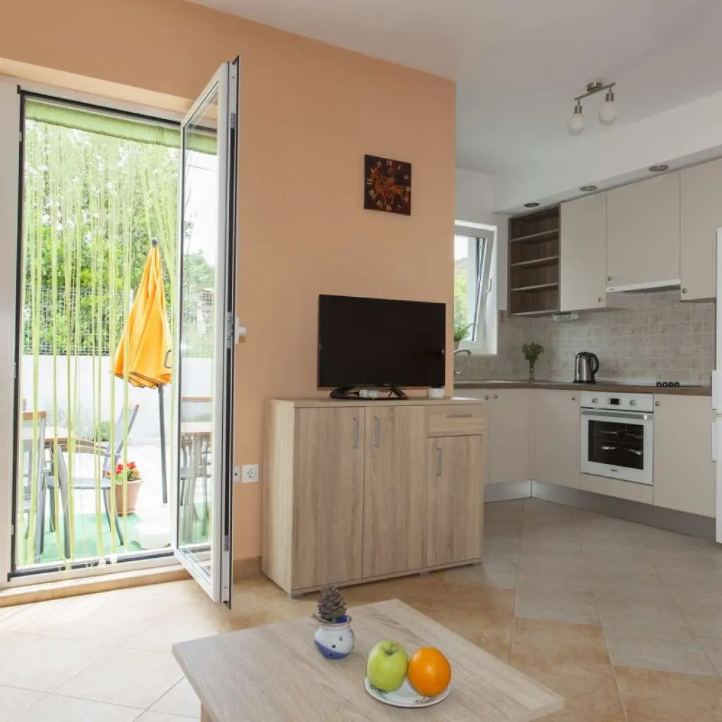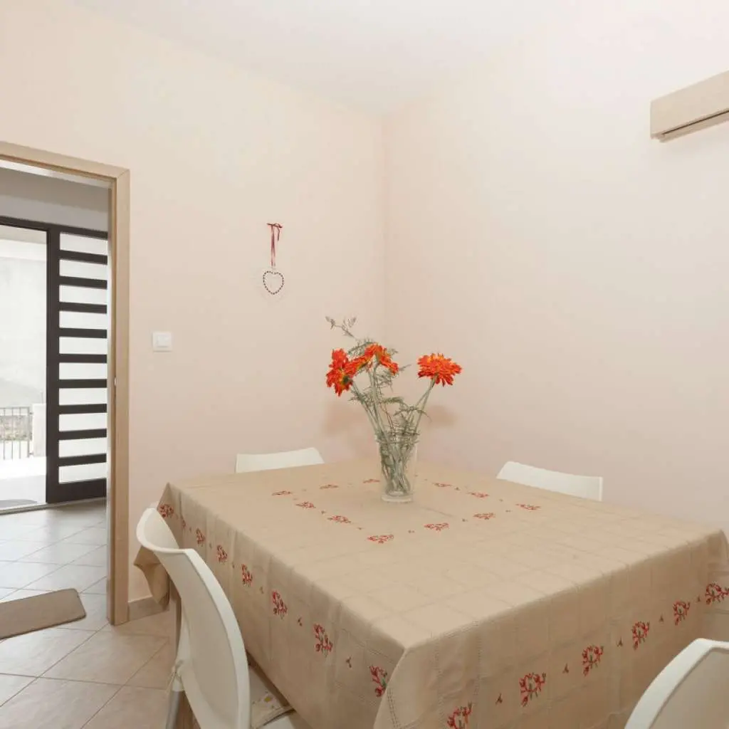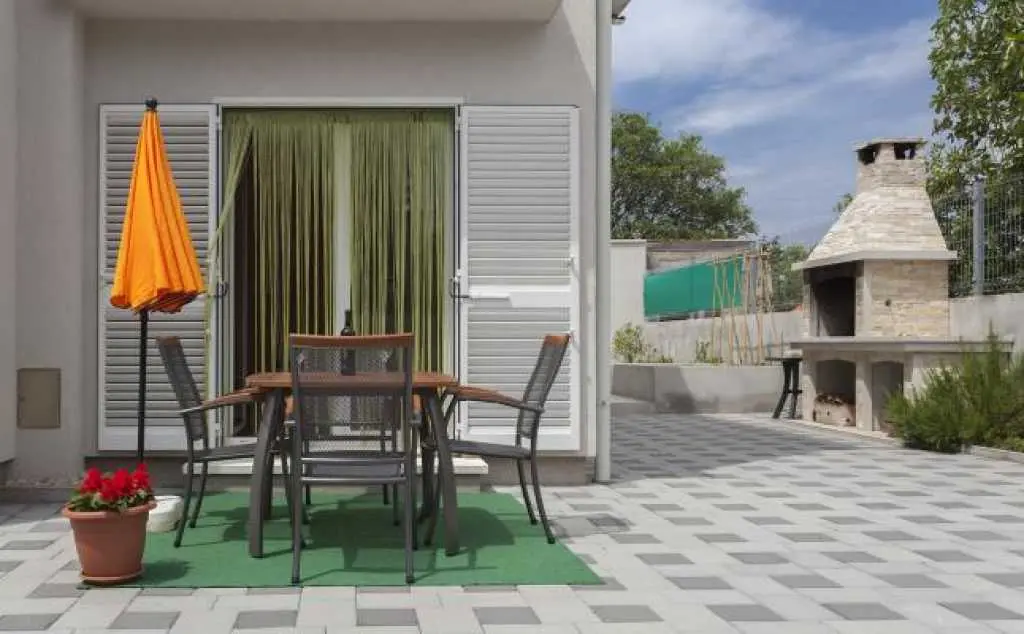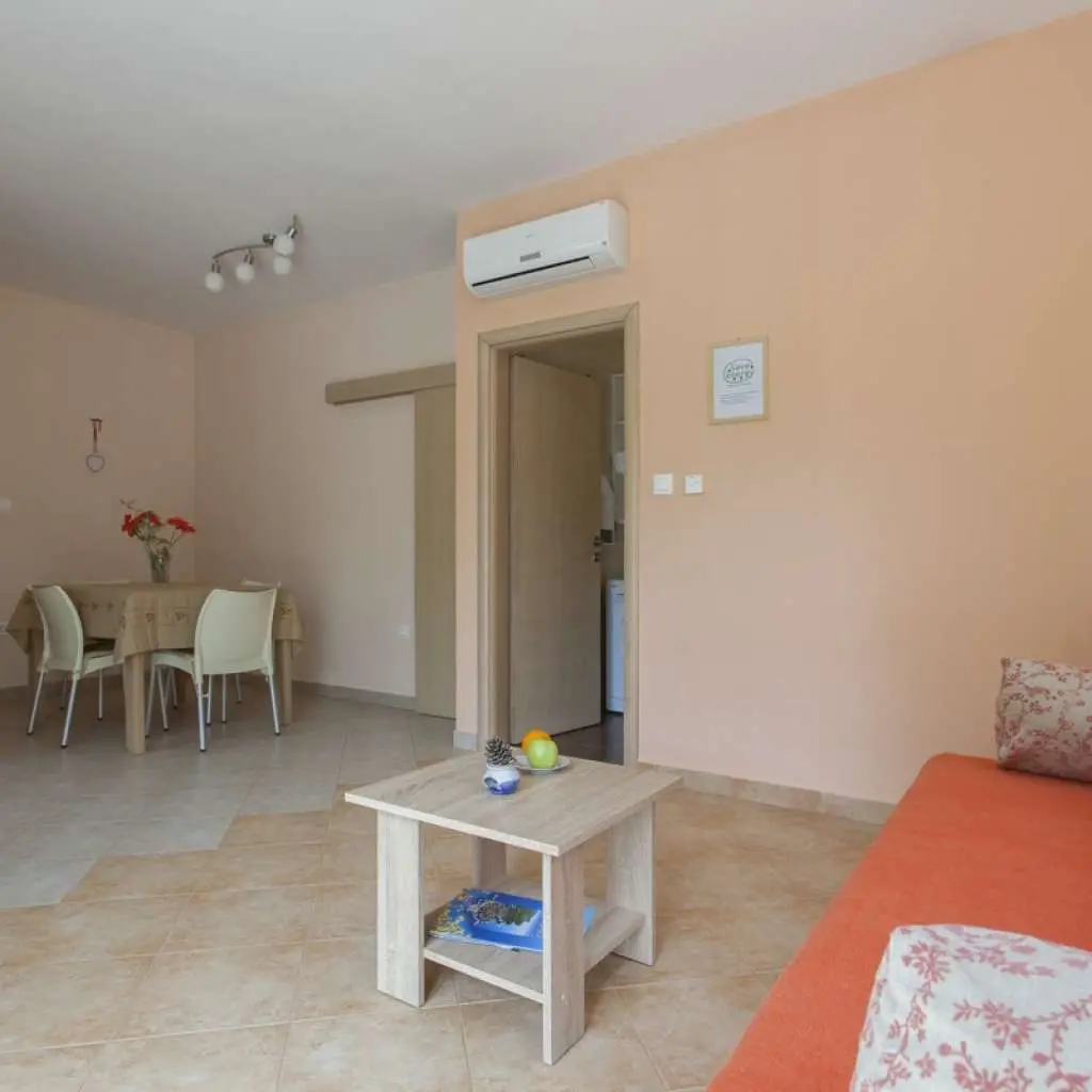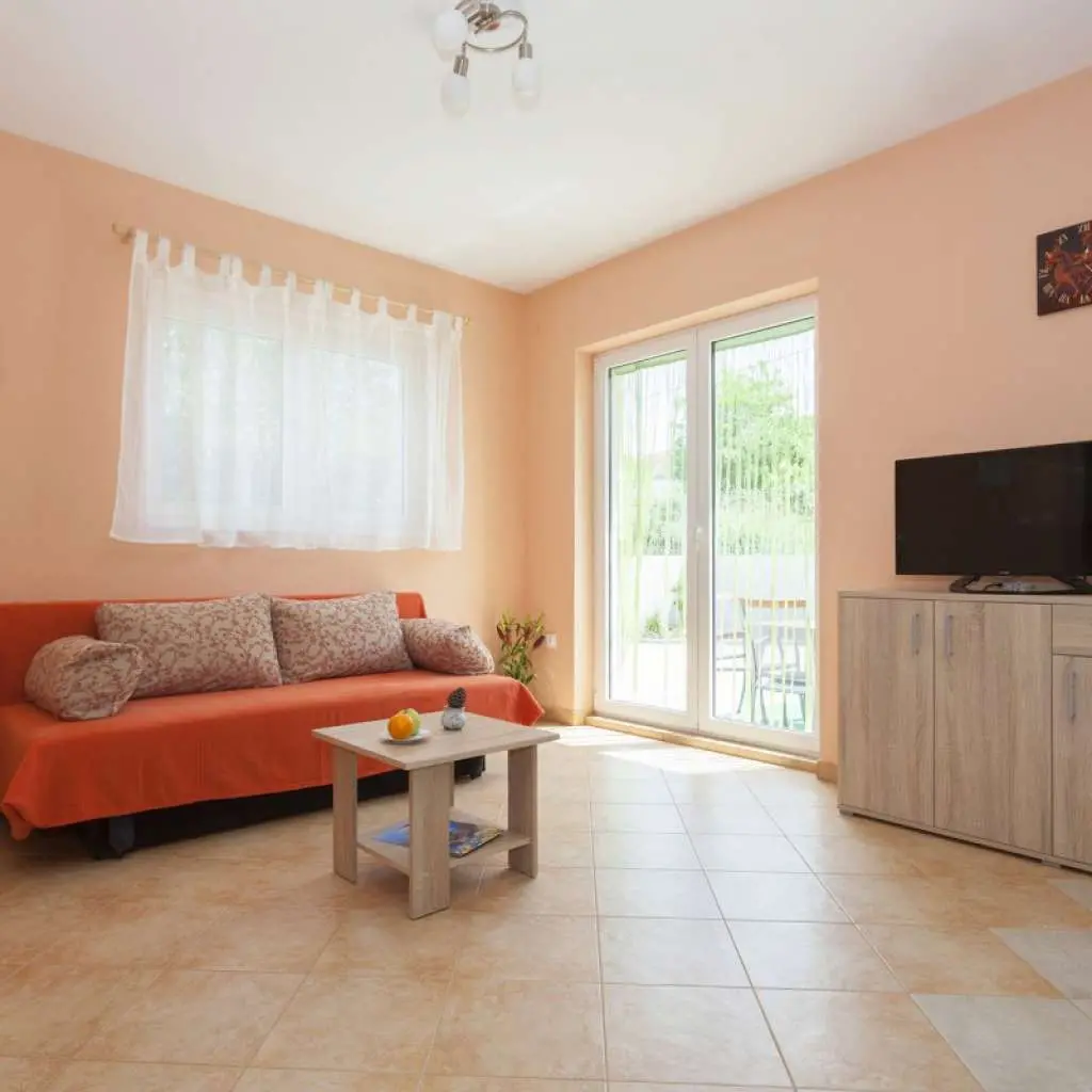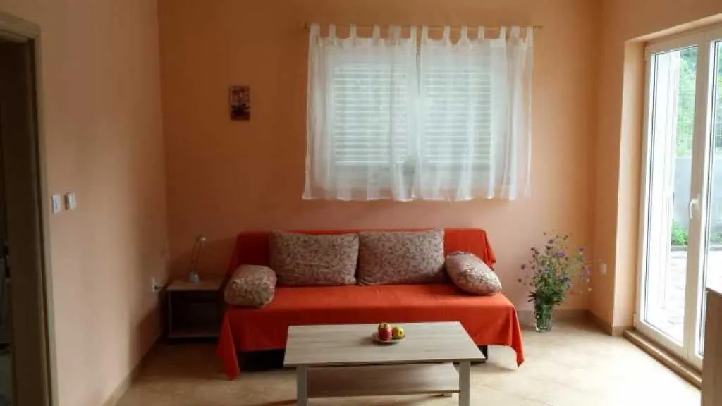 Nově postavený dům se nachází v klidné lokalitě, pouhých 5 minut chůze do centra a 10 minut na pláž Dražica. K dispozici je pouze jeden apartmán k pronájmu, v přízemí (50m2) až pro 4 osoby. Protože budete jedinými hosty a budete mít rádi, jako byste byli ve svém domově. V bytě je jedna ložnice s manželskou postelí. V obývacím pokoji je rozkládací pohovka pro dvě osoby (šířka 150 cm). Obě pokoje mají klimatizaci. V koupelně, pračce a fén je velký sprchový kout. Kuchyně je plně vybavena nádobím, příbory, troubou, sporákem, varnou konvicí a velkou lednicí s mrazákem. Venku je stůl s židlemi na terase ideální pro odpolední odpoledne.
