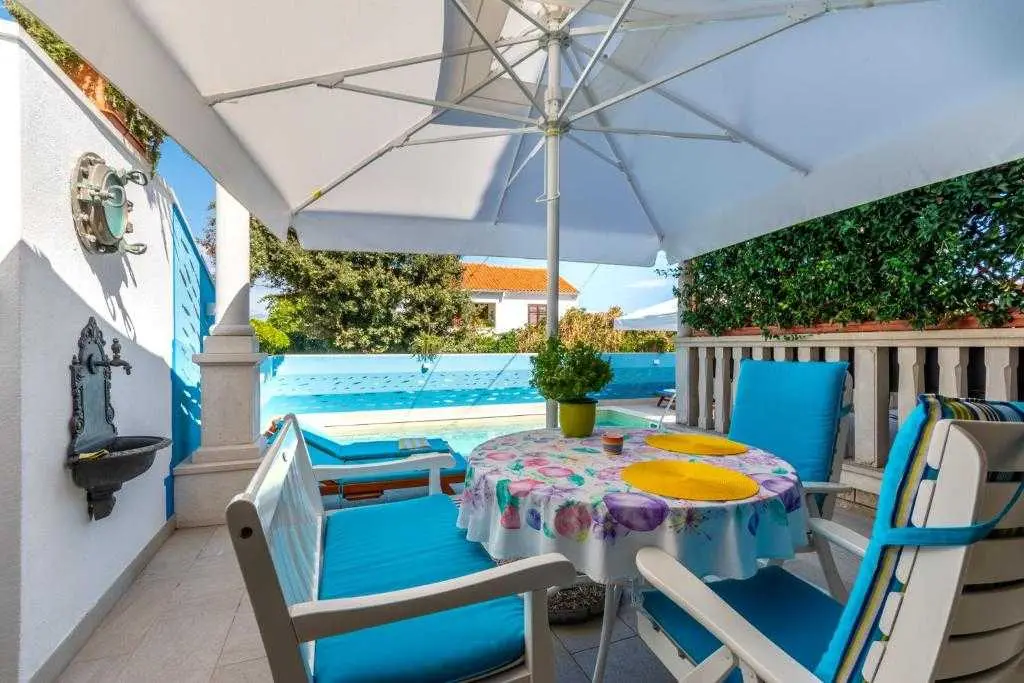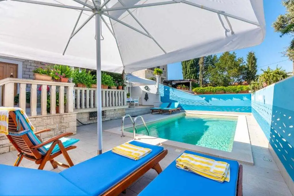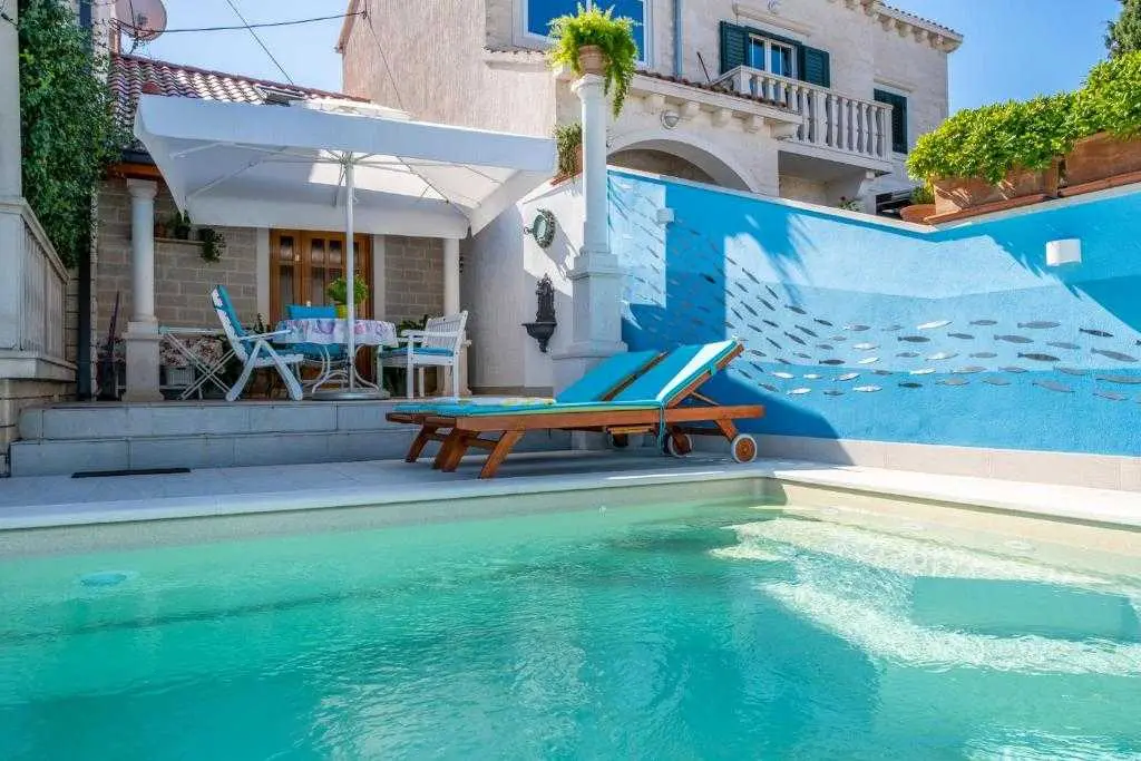 VILA CAMELLIA **** Villa Camellia je rodinný dům v Supetar na ostrově Brač. To se nachází v blízkosti centra města v klidném místě. Obklopen zelení a vysokými zdmi proslulé kamenné Brač vám poskytne klid a soukromí. 300 metrů od přístavu, 150 m od nemocnice, lékárny nebo policejní stanici, v blízkosti nákupních center Tommym a Lidl, rostlinné a rybí trhy, pár kroků od centra města jeho největší výhodou je blízkost moře (70 m ) a oblázková pláž s restaurací. Krásná zahrada zdobená pečlivě vybraných květin, palem a středomořskou vegetací bere dech, který se opírá o ocenění za nejkrásnější zahrady v roce 2000. Villa Camellia vás potěší svým vzhledem, oblečený v proslulé kamenné Brač a mnoho detailů, které nejdou bez povšimnutí našimi návštěvníky a kolemjdoucí. Villa Camellia otevřel své brány poprvé v sezóně 2013. oběť Studio (2 + 1). V sezóně 2014 jsme otevření nového 2 + kk v přízemí vily Camellia. Studio Byt je luxusně zařízen a uspokojí přání a potřeby každého zákazníka. Zahrnuje: plně vybavenou kuchyň, vysoce kvalitní kuchyňské zařízení (vestavěná mikrovlnná trouba, elektrická trouba, plynový / elektrický sporák, lednice a mrazák s velkou kapacitou (Plasmacluster), varná konvice, topinkovač, myčka nádobí, trezor, klimatizace, jídelna, dvoumístný, galerie s ložnicí, Smart TV 46, bezdrátové připojení na internet, satelit, CD / rádio, DVD přehrávač, koupelna, vysoušeč vlasů, ručníky, vysoce kvalitní ložní prádlo. byt je také luxusně zařízené a uspokojí přání a potřeby každého zákazníka je vybaven horní třídy italským nábytkem / spotřebiče Všechny lustrů, stěn, stropu a bočních postel svítidla jsou vyrobeny italské značky návrhářů Zahrnuje:... plně vybavenou Scavollini kuchyň a jídelní prostor, vysoce kvalitní vybavení kuchyně (myčka, plyn / elektrický sporák, elektrická trouba, velká extra široké Sharp mraznička / chladič (Plasmacluster), varná konvice, topinkovač, myčka nádobí, Gaggia kávovar, mikrovlnná trouba), jídelna, obývací pokoj (velký gauč a dvě hluboké židle, Smart TV-Phillips 46 palcový připojen do kabelové sítě a stereo tuner systému reproduktorů), koupelna (plně vybavená vysoce kvalitním vanou / sprchou, mytí umyvadlo, toaletní míse, bidet, praní prádla strojem (Bosch), vysoušeč vlasů, el. Ohřívač stojan na ručníky, tělesné hmotnosti měřítku, ručníky ...), dvě ložnice s manželskou postelí (oba pokoje jsou vybaveny 42 palců Phillips televizor připojen k kabelové sítě s řadou kvalitních kanálů, vysoká kvalita ložního prádla), elektrické bezpečnosti, svobody bezdrátové připojení k internetu , satelit, CD / rádio, DVD přehrávač, žehlička / žehlicí prkno, teplotu v celém bytě je řízen pokročilé Mitsubishi střídače chladicí jednotky. Mimo byt se nachází velká terasa s velkým stolem (dub obložený) a železné kované židle. Je obklopen krásnými květinami budete užívat každou minutu tam strávili. Naši hosté mají k dispozici zahradu s několika seatting míst a grilem, kde bude určitě strávit nezapomenutelné chvíle. V přední části Villa Camellia naši hosté mohou vychutnat nový plavecký bazén - kružítko, typ Brilliant. Ovládání bazénové vody je plně automatizován: dezinfekce vody je kontrola elektronickými sůl elektrolýzy jednotky, whirpool. Č chlór se přidává do vody !!! Vedle bazénu najdete prvotřídní relaxační lehátka, solární sprcha, ... Yard je zděný z přilehlé ulice, takže je zaručena intimita. Rodina Pancirov je službou, abychom mohli zařídit při příjezdu a odjezdu, a tak dále zájezdy, restaurace výhrady, transfery. V našich apartmánech naši hosté najdou info knihu s řadou doporučení, která doplní svou dovolenou. Po příjezdu na Villa Camellia svého hostitele přivítá vás a ve svém bytě se podává uvítací drink s autentického dalmatského deskou. Těšíme se na vás ubytovat! Studio: 2 + 1 (dětská postýlka na vyžádání). Apartmán: 2 + 2 (dětská postýlka na vyžádání). Domácí zvířata jsou povolena na požádání. Příjezd: od 14:00 Odjezd: do 11:00 Min. pobytu: 2 nocí