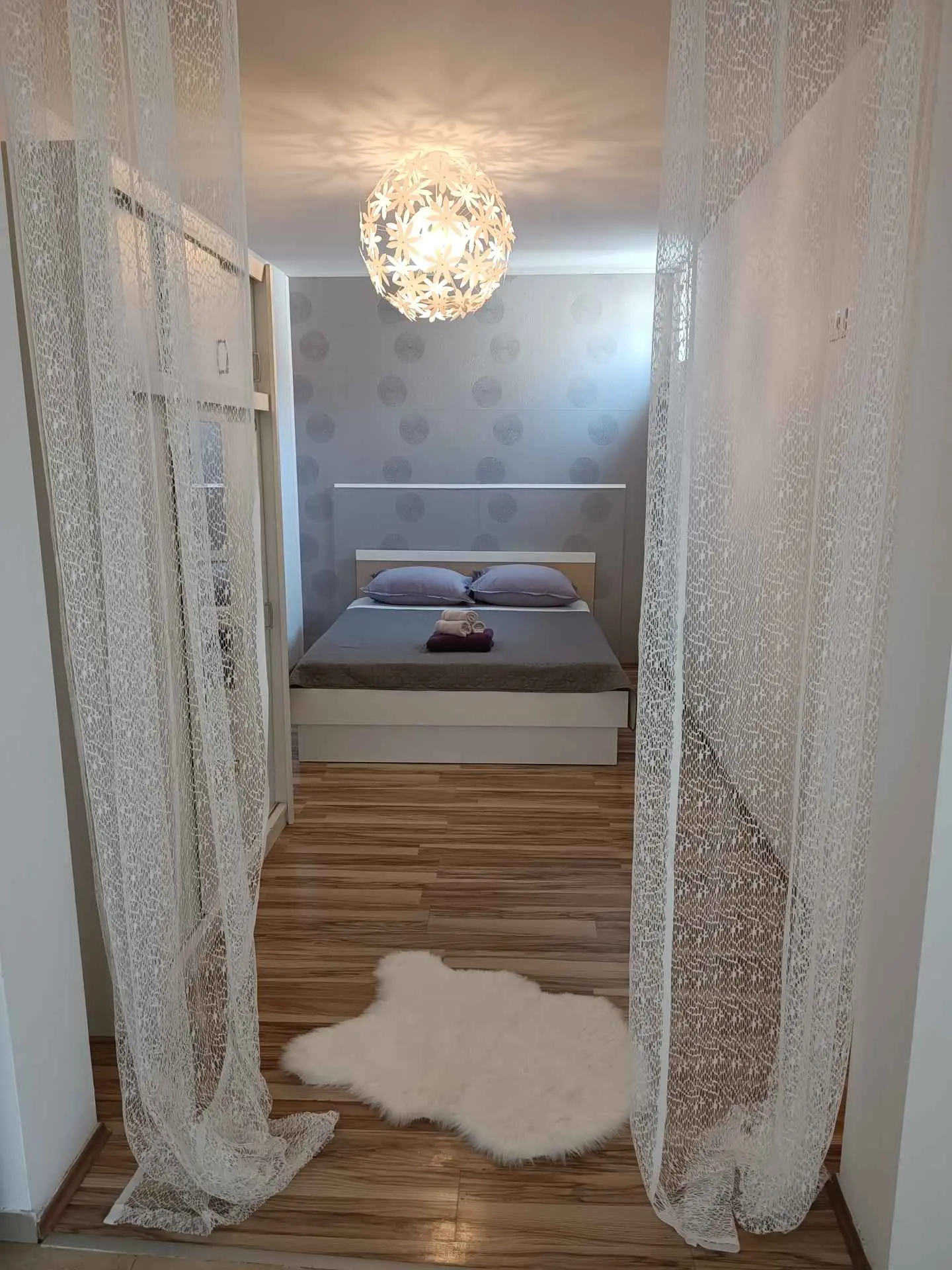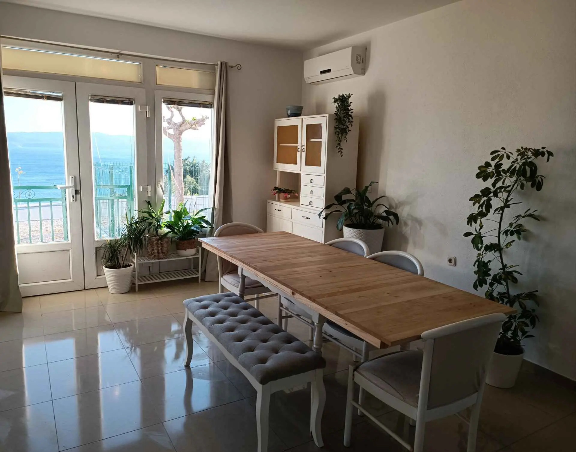 Dům se nachází v klidné části Brely (Jakiruša) 250 m od pláže Jakiruša. Skládá se ze dvou ložnic, dvou toalet, kuchyně, jídelny a obývacího pokoje a terasy s krásným výhledem na moře. Parkování před domem a další parkování u pláže Jakiruša je zahrnuto v ceně pobytu.