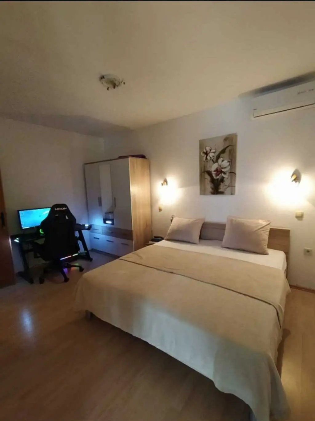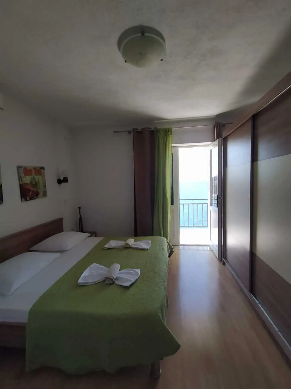Apartmán se nachází ve 2. patře, má 3 ložnice, 6 lůžek a 2 přistýlky, velký balkon s výhledem na moře a klimatizaci v každém pokoji. 1 velká kuchyně. Parkoviště je 100 metrů od apartmánu. Vítejte!