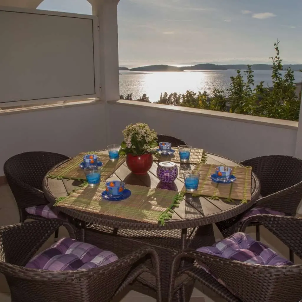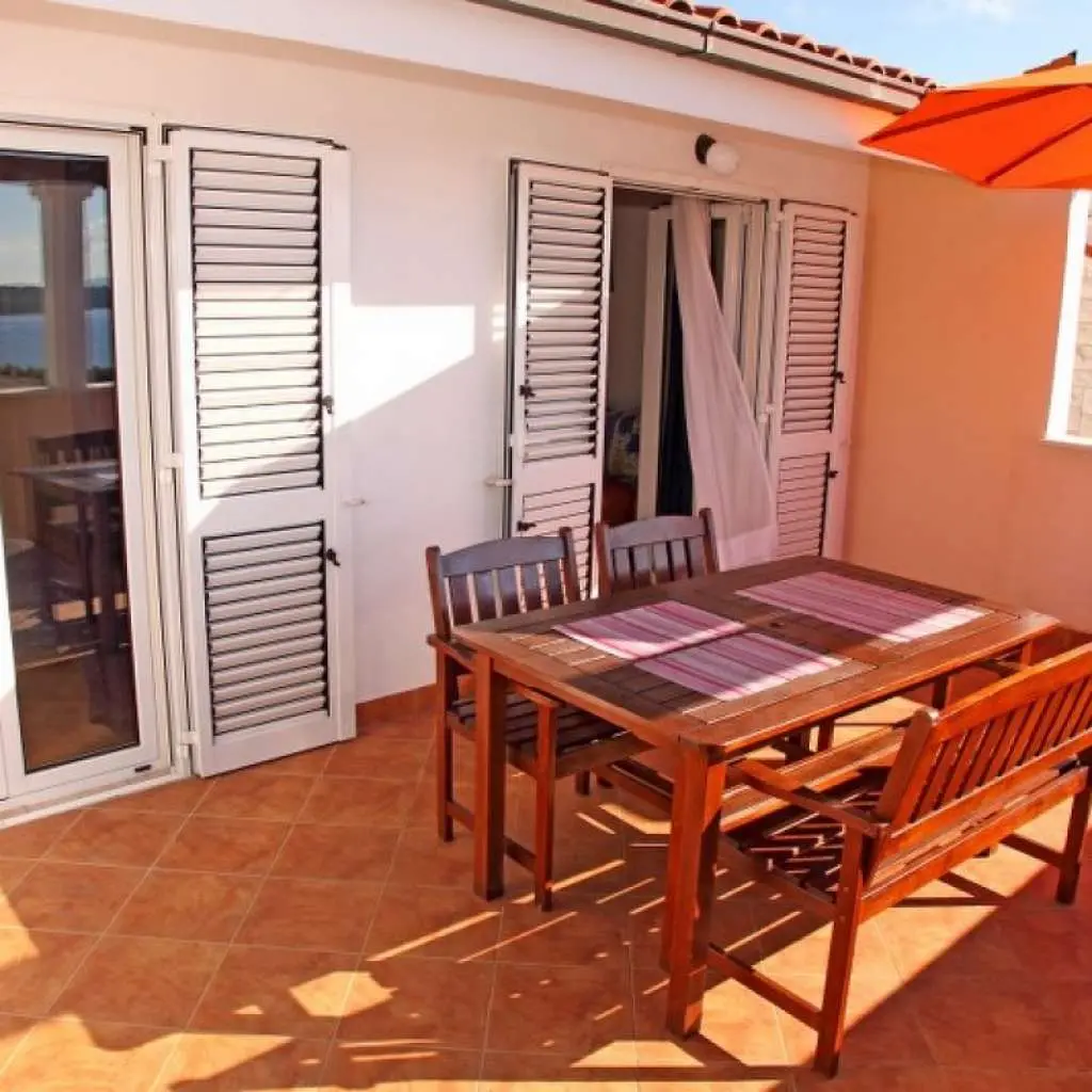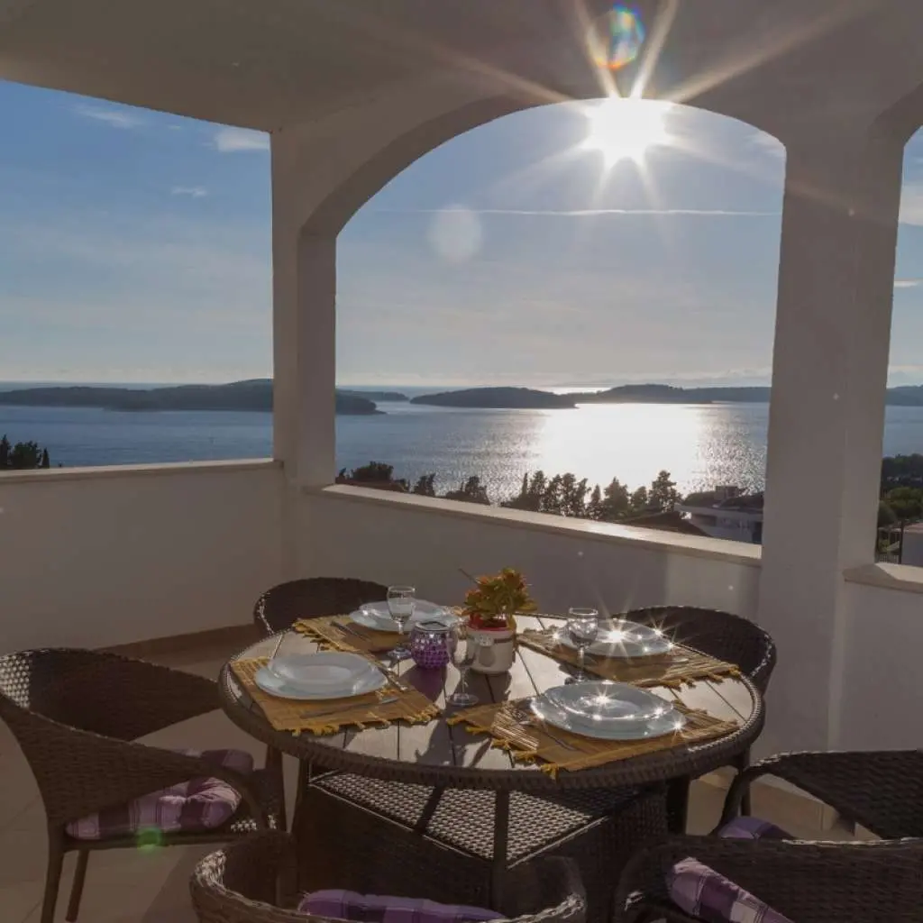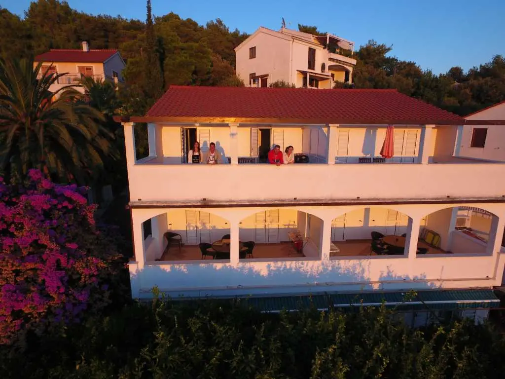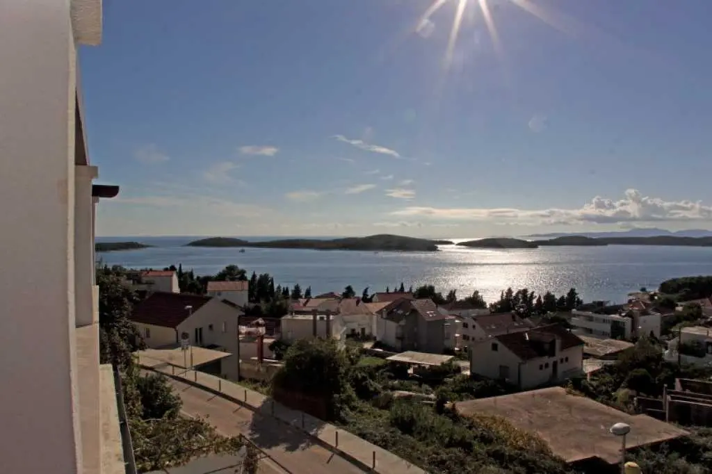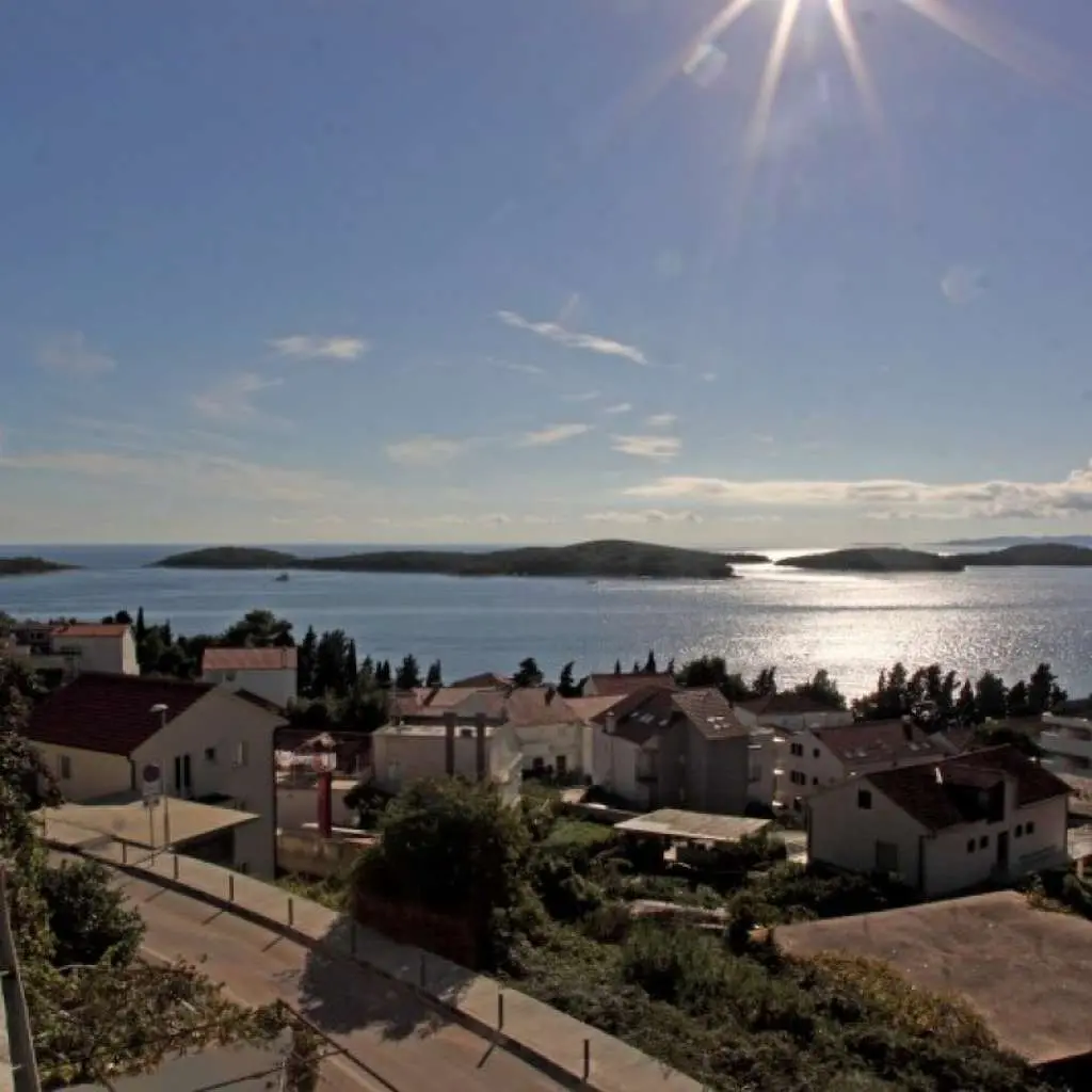Rodinný dům Zunkovic se nachází v západní, klidné a nejhezčí části města Hvar, kde budete mimo šílenství a hluk turistického centra Hvaru. Pronajímáme kompletně zařízené 4 lůžkové apartmány s velkou terasou s výhledem na moře a ostrovy Pakleni. Má: klimatizaci, 2 ložnice - každá s manželskou postelí, obývací pokoj s pohovkou, TV a SAT, plně vybavenou kuchyň a koupelnu se sprchou. Z ložnice a obývacího pokoje máte přístup na krytou terasu s vynikajícím výhledem na moře a ostrovy Pakleni. Na stejné terase je velký dřevěný stůl se židlemi. Celková plocha bytu je 50 m2 a dalších 25 m2 terasy. V těsné blízkosti apartmánů se nachází sportovní centrum s tenisovými kurty a supermarket. Pěknou procházkou po moři, ve stínu staletých borovic, se snadno dostanete do centra města pěšky za 10 - 15 minut. Četné městské pláže, kde si můžete pronajmout lehátka, slunečníky nebo si koupit studený nápoj nebo zmrzlinu, jsou 150 - 200 metrů od domu. Stejná vzdálenost je na nově vyzdobenou městskou pláž Bonj se spoustou nabídek a krásnou pláží. Stejná vzdálenost je k místům, kde se můžete dostat na taxi loď nebo si pronajmout loď, odkud můžete podniknout každodenní exkurzi na jeden z paklenských ostrovů. Vaši hostitelé, členové rodiny Zunkovicových, žijí v přízemí stejného domu. Doufají, že vám budou moci pomoci, abyste v jejich domě strávili nádhernou dovolenou.