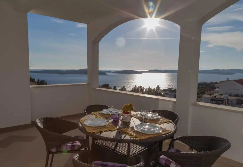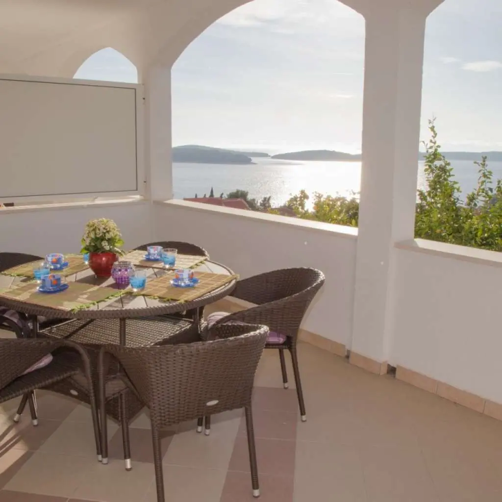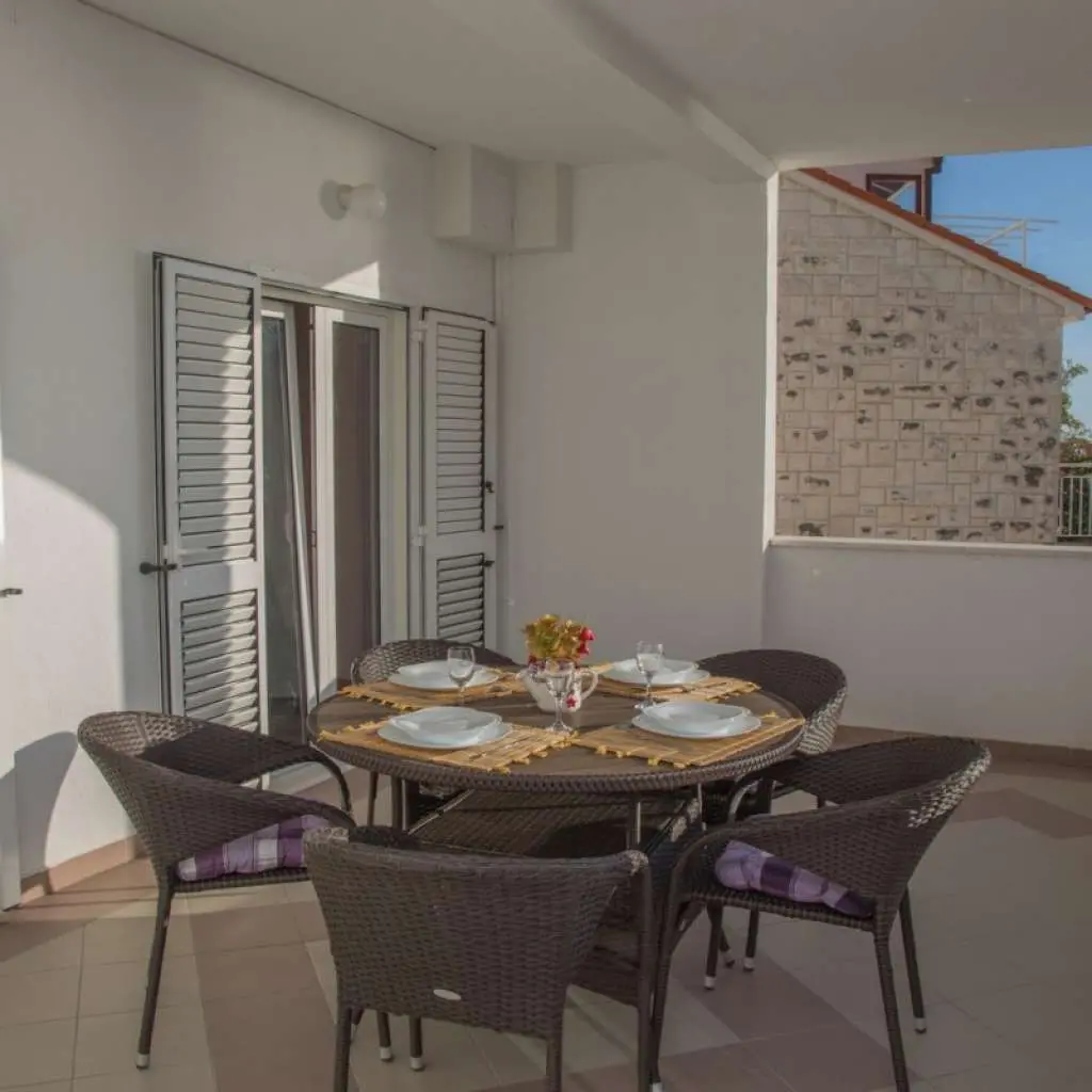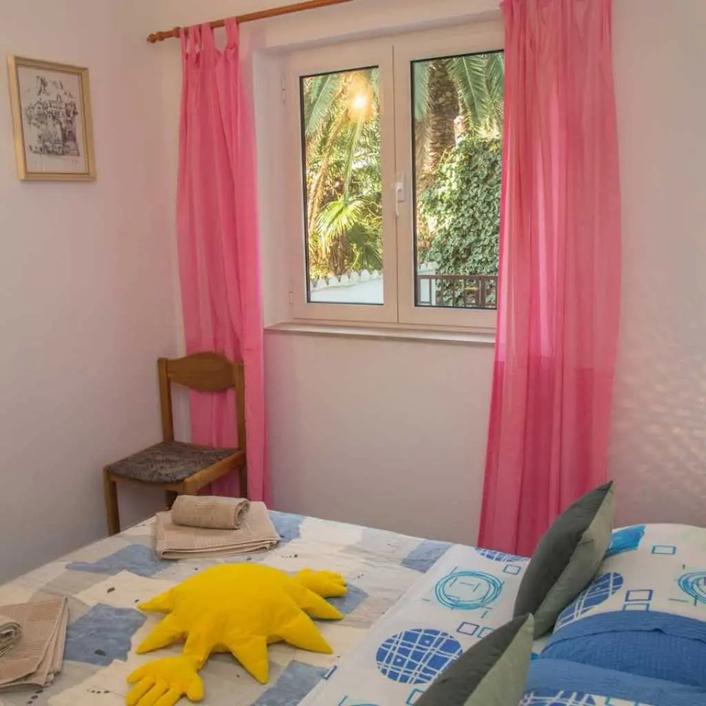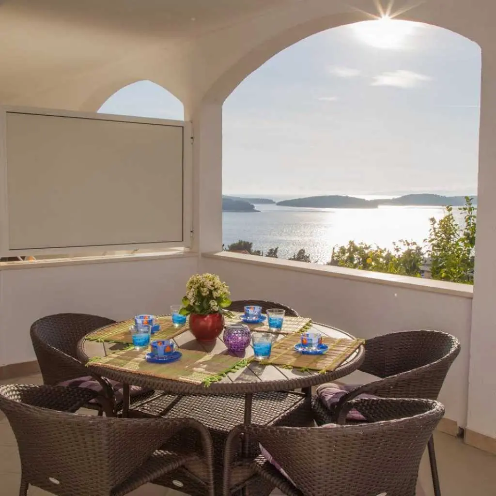 Rodinný dům Zunkovic se nachází v západní, klidné a nejhezčí části města Hvar, kde budete mimo šílenství a hluk turistického centra Hvaru. Pronajímáme kompletně zařízené 4 lůžkové apartmány s velkou terasou s výhledem na moře a ostrovy Pakleni. Má: klimatizaci, 2 ložnice - každá s manželskou postelí, obývací pokoj s pohovkou, TV a SAT, plně vybavenou kuchyň a koupelnu se sprchou. Z ložnice a obývacího pokoje máte přístup na krytou terasu s vynikajícím výhledem na moře a ostrovy Pakleni. Na stejné terase je velký dřevěný stůl se židlemi. Celková plocha bytu je 50 m2 a dalších 25 m2 terasy. V těsné blízkosti apartmánů se nachází sportovní centrum s tenisovými kurty a supermarket. Pěknou procházkou po moři, ve stínu staletých borovic, se snadno dostanete do centra města pěšky za 10 - 15 minut. Četné městské pláže, kde si můžete pronajmout lehátka, slunečníky nebo si koupit studený nápoj nebo zmrzlinu, jsou 150 - 200 metrů od domu. Stejná vzdálenost je na nově vyzdobenou městskou pláž Bonj se spoustou nabídek a krásnou pláží. Stejná vzdálenost je k místům, kde se můžete dostat na taxi loď nebo si pronajmout loď, odkud můžete podniknout každodenní exkurzi na jeden z paklenských ostrovů. Vaši hostitelé, členové rodiny Zunkovicových, žijí v přízemí stejného domu. Doufají, že vám budou moci pomoci, abyste v jejich domě strávili nádhernou dovolenou.