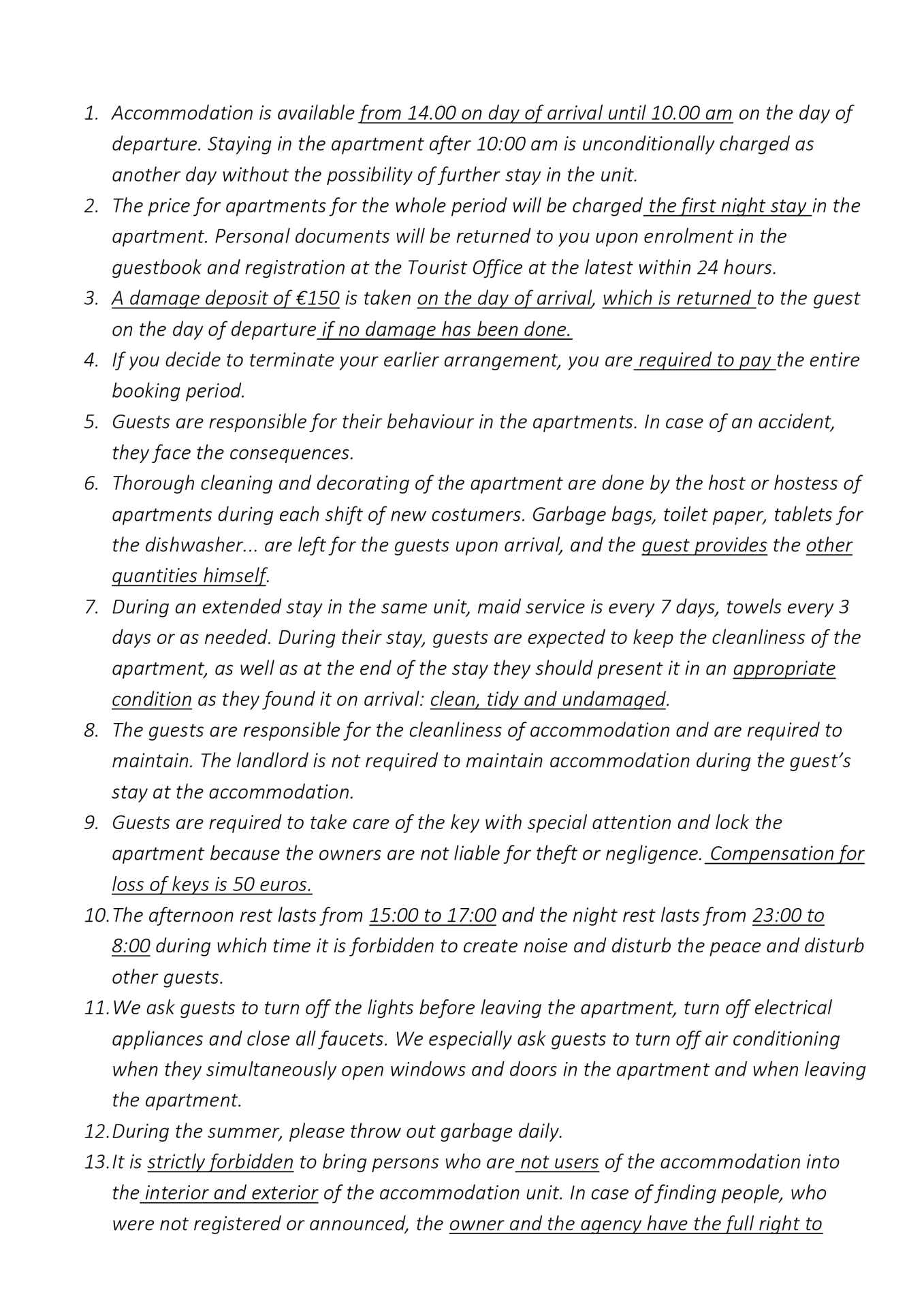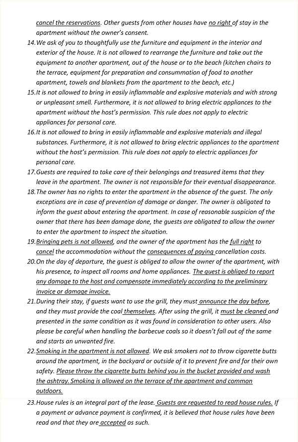 Apartmány Jadran jsou rodinný dům se dvěma malými apartmány v přízemí. Dům se nachází 300 m (5 minut chůze) od moře a hlavní pláže. Parkování je zajištěno ve dvoře domu, jedno parkovací místo pro každý apartmán. Pro milovníky outdoorových aktivit jsou v blízkosti turistické a cyklistické stezky. Stejně tak pro milovníky kulturního dědictví Baška oplývá archeologickými nalezišti, památkami, flórou a faunou... Apartmán Jadran 1 se nachází v přízemí a má rozlohu 30 m2 s terasou. Obsahuje: obývací pokoj a kuchyň v jednom, jednu ložnici, koupelnu a terasu. V obývacím pokoji je mini pohovka (přistýlka 85x200 cm, pro dítě do 12 let) se satelitní Smart TV a vybavená mini kuchyň (v kuchyni máte k dispozici lednici s mrazákem, elektrický sporák, varnou konvici, mikrovlnnou troubu, kávovar na filtrovanou kávu, toustovač, ruční mixér a veškeré nádobí potřebné k vaření). V ložnici je jedna manželská postel 160x200 cm. V koupelně je sprchový kout a fén. Apartmán je klimatizovaný a má bezplatné připojení k internetu (Wi-Fi). Apartmán Jadran 2 se nachází v přízemí a má rozlohu 37 m2 s terasou. Obsahuje: Obývací pokoj s kuchyní v jednom, koupelnu, jednu ložnici a terasu. V obývacím pokoji je pohovka (přistýlka 90x200 cm, pro osobu do 18 let) se satelitní Smart TV, vybavená mini kuchyňka (v kuchyni máte k dispozici lednici s mrazákem, elektrický sporák, myčku nádobí, varnou konvici, kávovar na filtrovanou kávu, toustovač, ruční mixér, mikrovlnnou troubu a veškeré nádobí potřebné k vaření). V ložnici je jedna manželská postel 160x200 cm a křeslo (přistýlka 80x200 cm, pro dítě do 10 let). V koupelně je sprcha a fén. Apartmán je klimatizovaný a má bezplatné připojení k internetu (Wi-Fi). Rodina s malým dítětem může na požádání získat dětskou postýlku a dětskou židličku. Žehlička a žehlicí prkno jsou k dispozici na požádání. Je povoleno používat gril (nutno předem nahlásit).