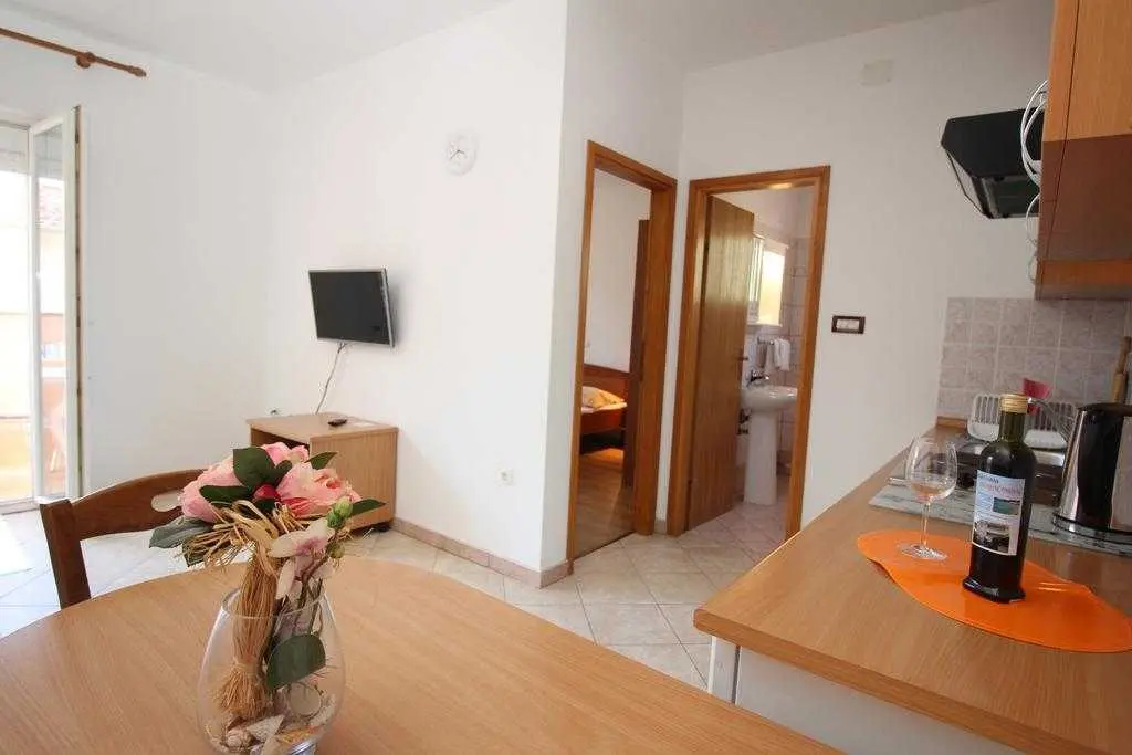 Dům s 9 byty v centru Bašky. Všechny apartmány mají klimatizaci. Parkování před domem nebo před domem. Wi-Fi zdarma. Přijímáme malá domácí zvířata do 10 kg. Do 3.7. a od 5,9. máme speciální nabídku 14 = 13 nocí.