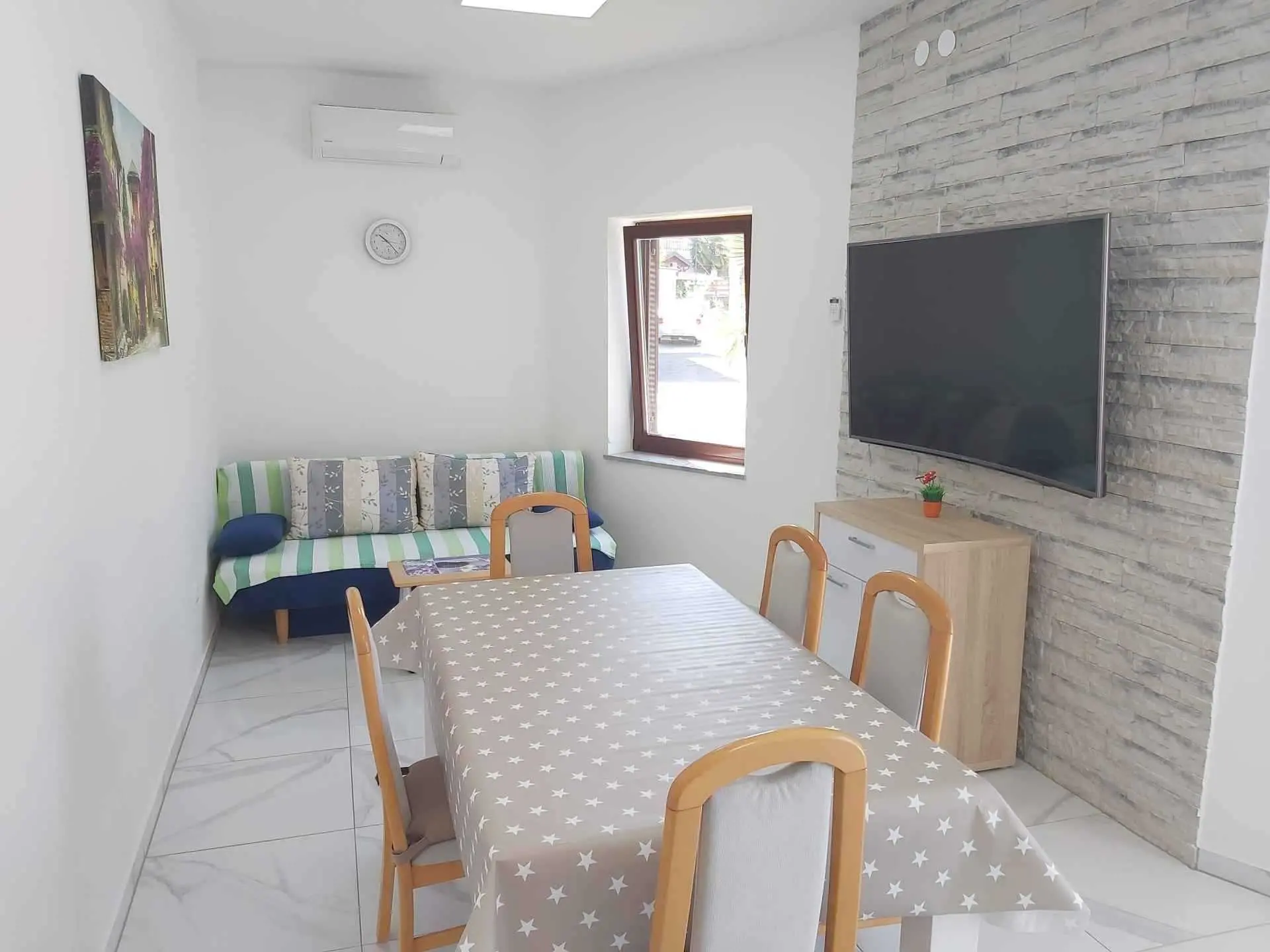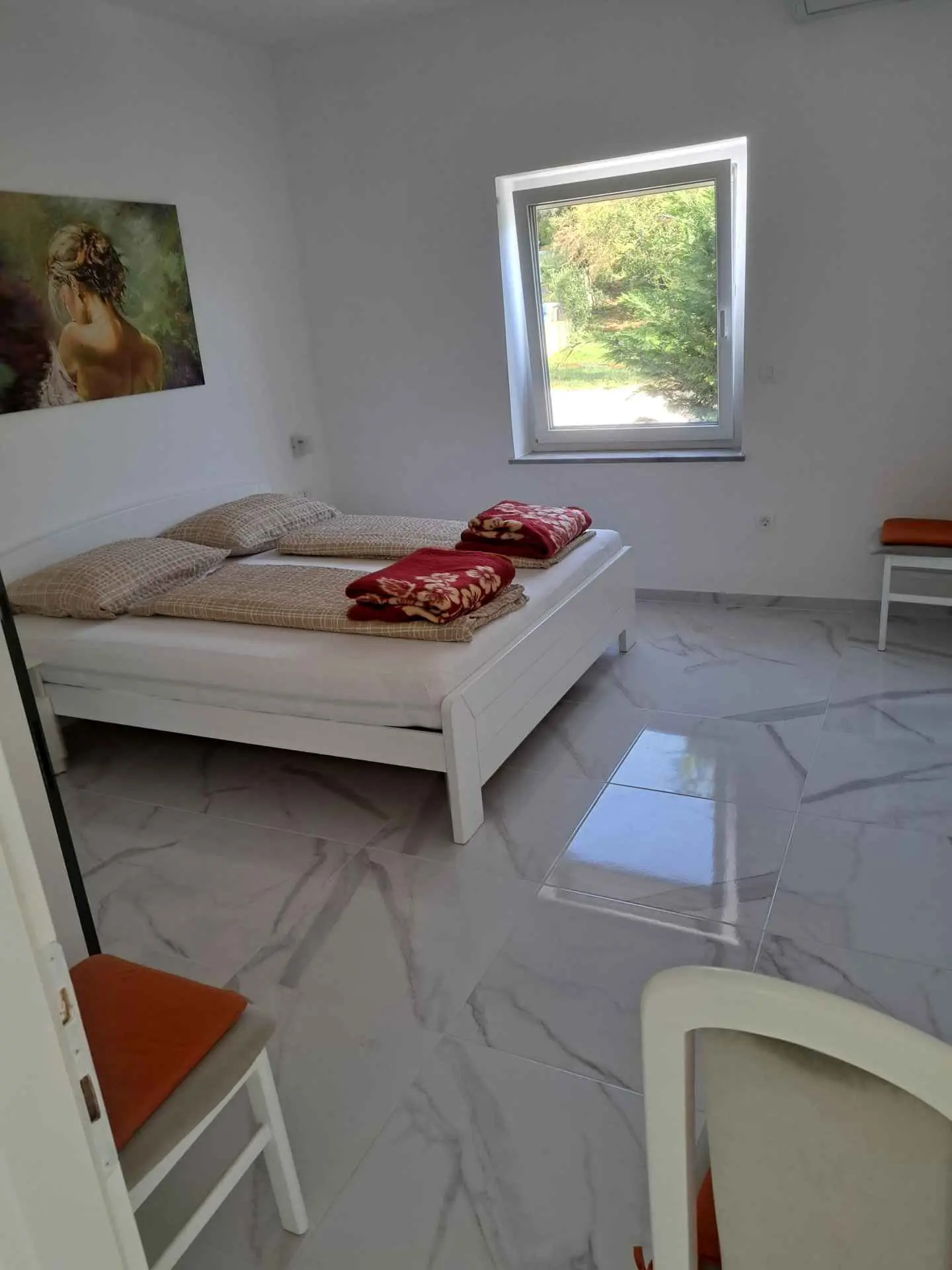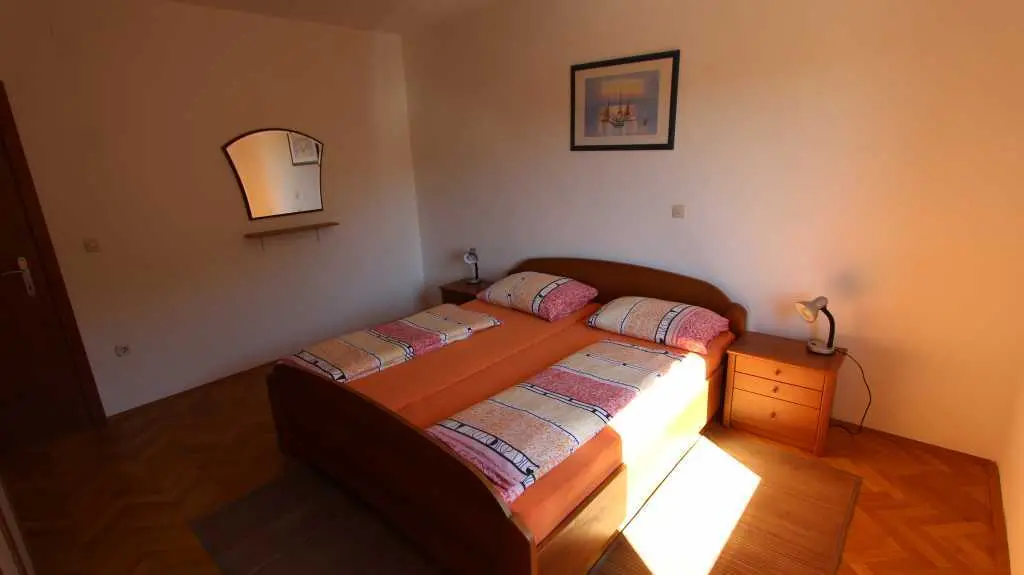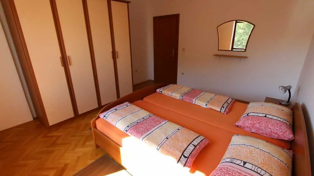 Naše apartmány se dvěma ložnicemi a obývacím pokojem působí v turistickém ruchu od roku 2002 a nacházejí se na ostrově Krk v Malinské. Mají balkon, terasu, gril a parkoviště. Obchody a restaurace jsou vzdáleny asi 200 metrů. Lékařská ordinace a lékárna se nacházejí v centru. Letiště Rijeka je od Malinské vzdálené 15 km. Ostrov Krk se vyznačuje mírným středomořským klimatem, čistým vzduchem, čistou vodou a rozmanitými přírodními a kulturními krásami. Oblíbené letovisko Malinska se nachází západně od ostrova Krk. Oblast Malinska je známá svými 260 slunečnými dny v roce. Na koupající se v Malinské čeká mnoho krásných pláží a zátok spolu s řadou sportovních zařízení, včetně půjčovny lodí. Téměř ve všech částech Malinské se nacházejí kavárny a malé obchody, které poskytují příjemnou atmosféru a osvěžení. Pláž v centru Malinské "Rupa" je díky svému vybavení a čistotě nositelem modré vlajky. Rezervujte si krásnou a nezapomenutelnou dovolenou s pohodlným ubytováním a středomořským klimatem. Těšíme se na váš příjezd!