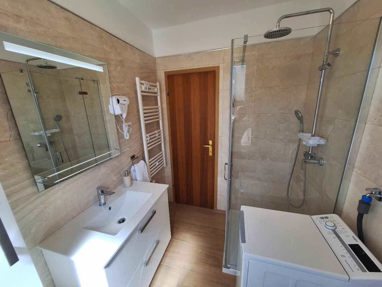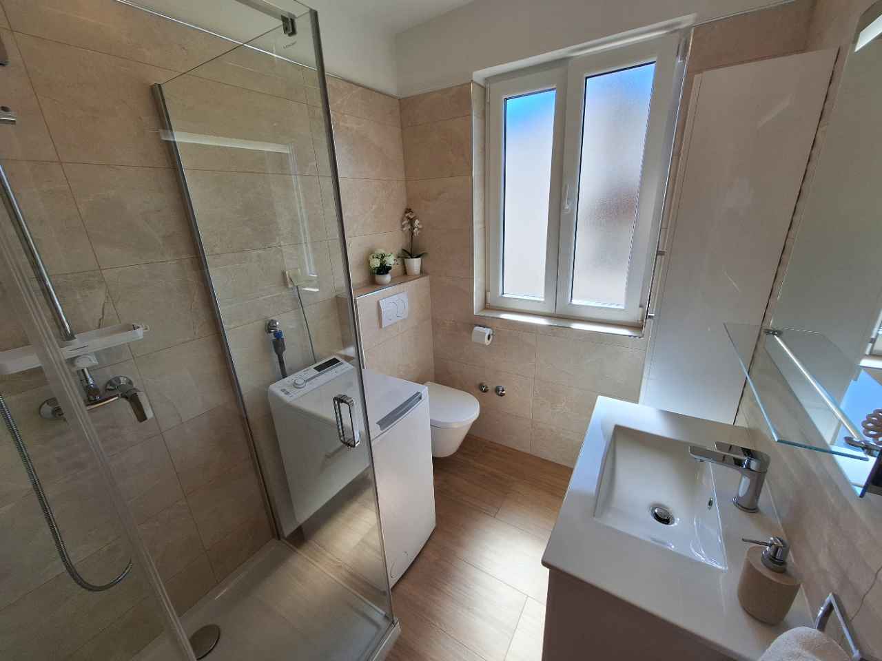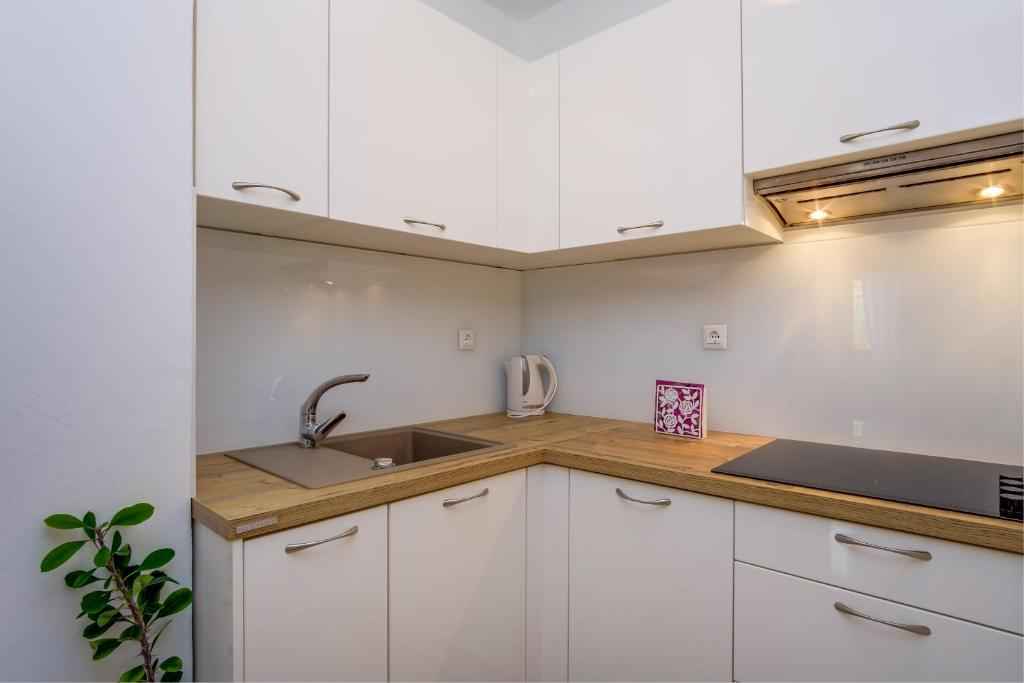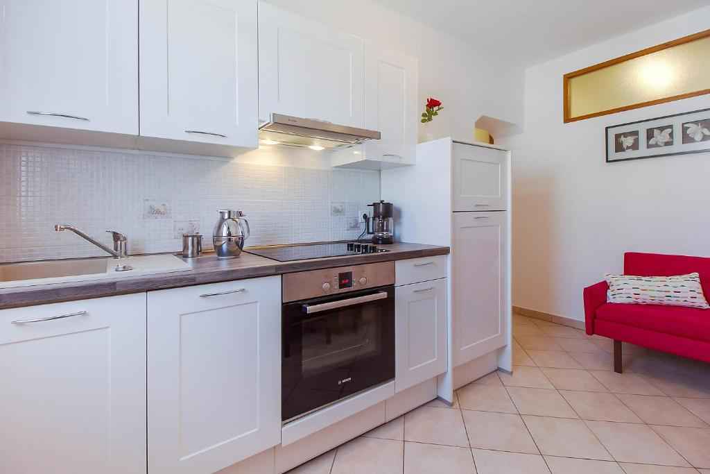 Byt se nachází v blízkosti pláže, jen pár minut chůze. Nabízí parkování před domem a pohodlný pobyt v blízkosti veškeré občanské vybavenosti. Apartmán má jednu ložnici s manželskou postelí, kuchyň s jídelním koutem, koupelnu a balkon. Kuchyň je plně vybavená. Hosté mají možnost využívat společný gril.