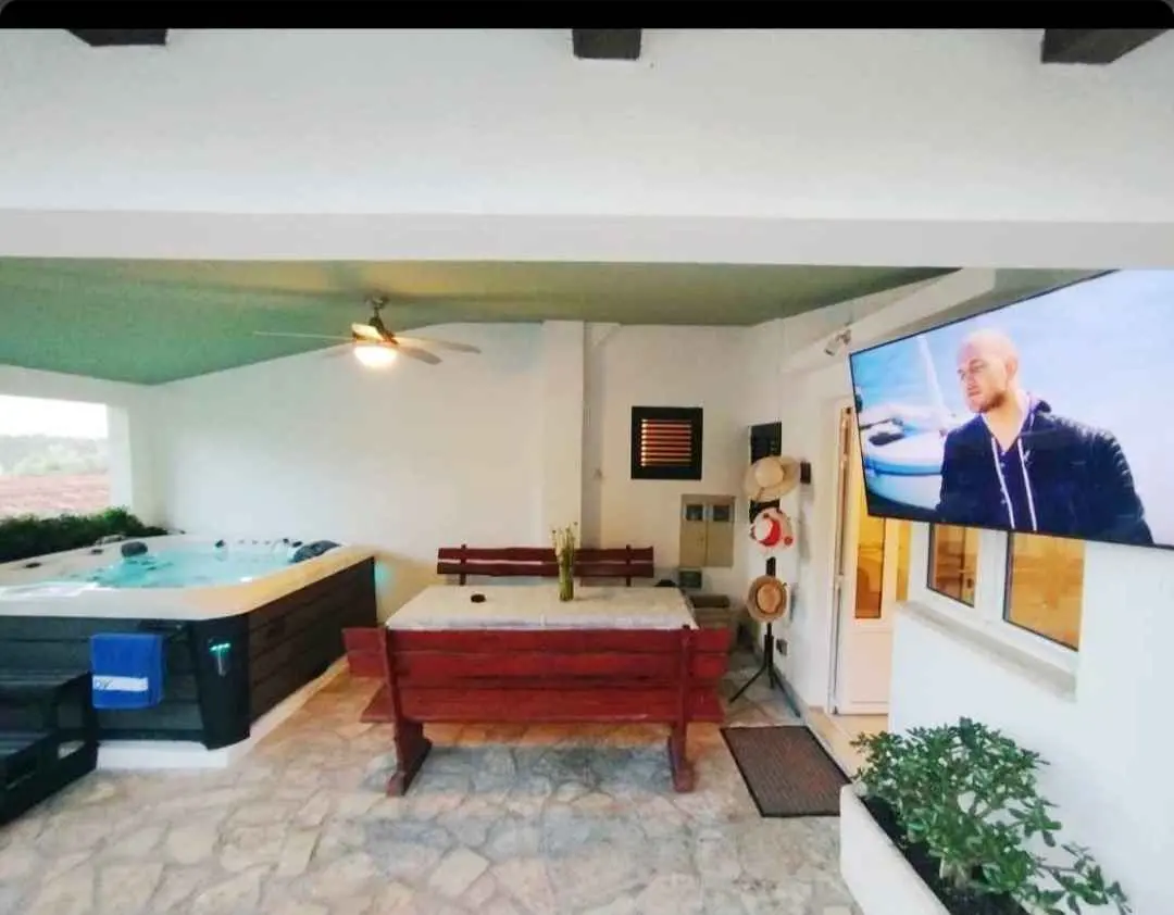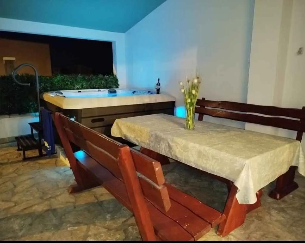 Apartman Robert se nachází 400 m nad starou částí centra města. Plocha 100 m2 se skládá ze dvou ložnic, dvou koupelen, obývacího pokoje a kuchyně. V přední části bytu je 300 m2 s krytou terasou s kompletním zahradním nábytkem, TV a grilem. Bazén s osluněnou částí a parkovištěm. Další možností je použití jacuzzi! Vítejte!!