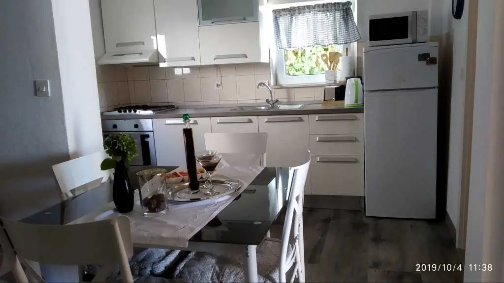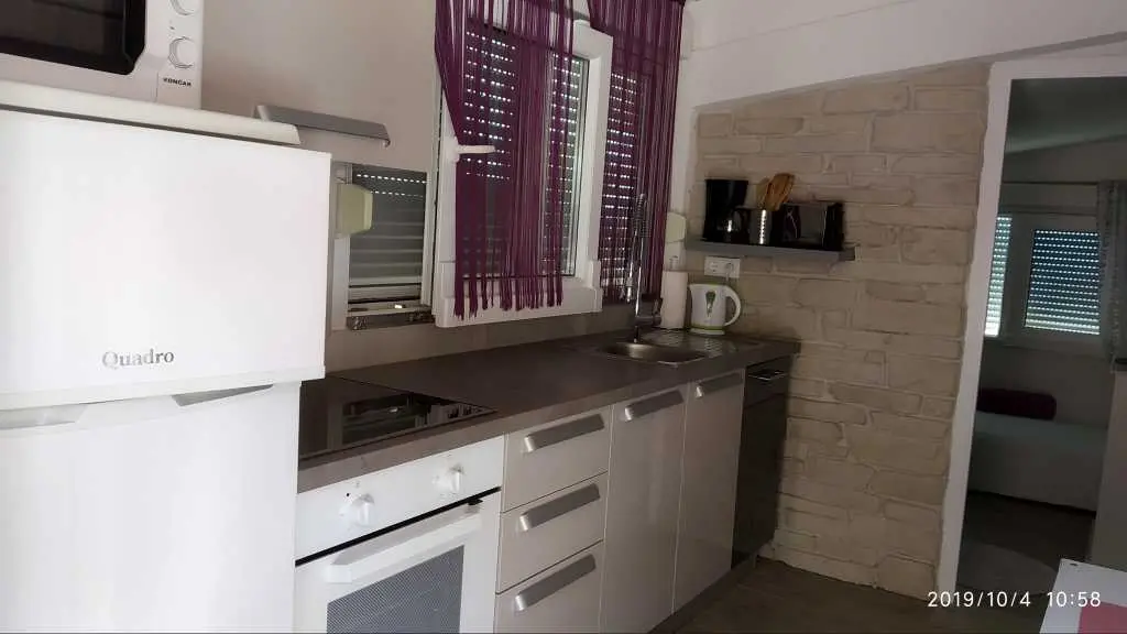 V obci Marušići - Riviéra Omiš - přes kterou prochází hlavní silnice SPLIT - OMIS - MAKARSKA - DUBROVNIK u moře leží rekreační dům. Pod domem je pláž. Dům má 5 apartmánů: 2 apartmány (4 + 1) cca. 45 m2 - 1 apartmán pro 5 + 1 osobu, 1 apartmán pro 6 osob, 1 apartmán (přízemí) pro 8 osob. Od 01,06 do 20,06. dovolená pro čtyřčlennou rodinu 40 Euro / noc