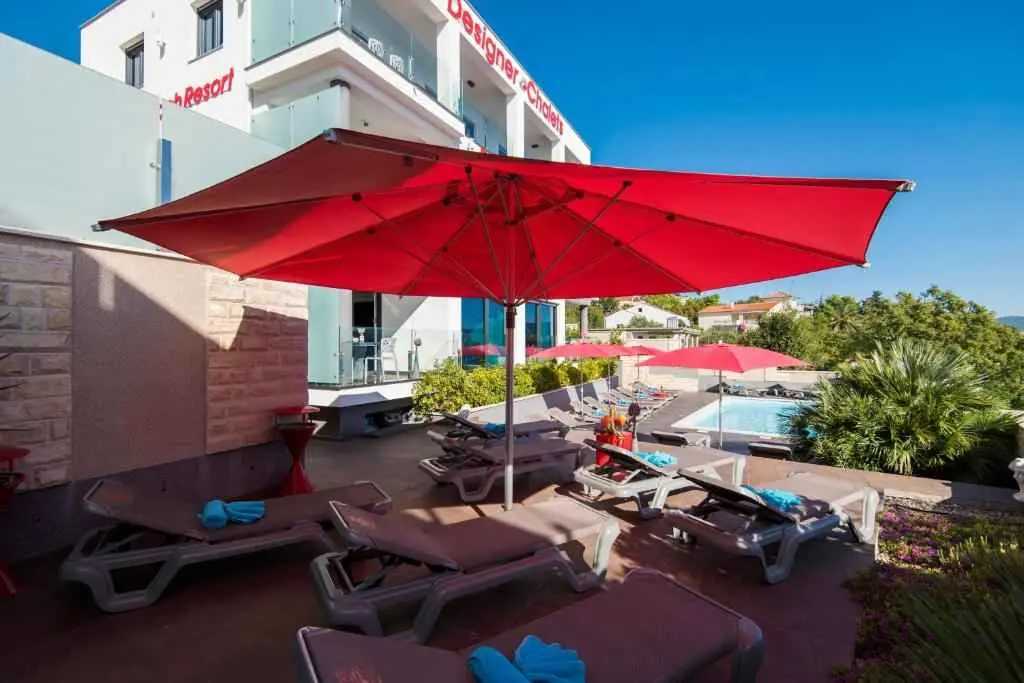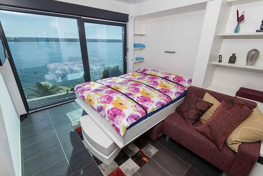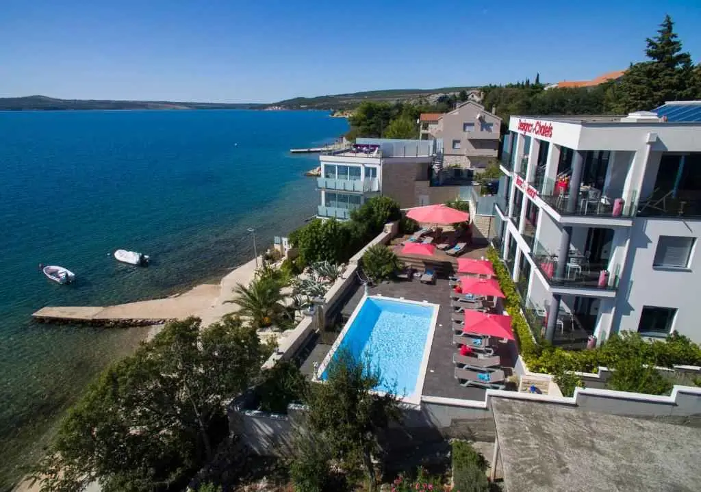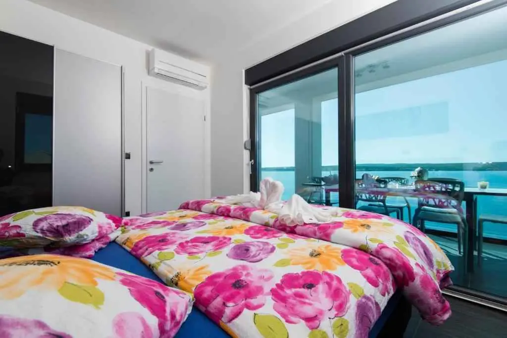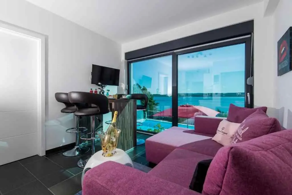 V Design Beach Resort v Maslenica nedaleko Zadaru v Chorvatsku čekají čtyři fantastické designové prázdninové apartmány a penthouse, které vás potěší svou polohou přímo u moře. Kromě nejlepšího vybavení je bezkonkurenční především krásná pláž přímo před domem. Designové prázdninové apartmány, každý s 58 m² obytné plochy, vám nabízí dostatek prostoru pro plné pohodlí; penthouse je ještě velkoryse vybaven 122 m². Víme: toto místo si zamilujete! S prázdninovými apartmány v Maslenica Chorvatsko se sen stává skutečností. Designer Chalets Makro navrhl tyto prázdninové apartmány na špičkovém místě přímo u moře s vysoce kvalitním ladensteinským nábytkem. K plnému vybavení patří kromě plně klimatizovaného designového obývacího pokoje a ložnic také luxusní kuchyně včetně kompletního vybavení nádobím, příbory a veškerým kuchyňským náčiním a také designové koupelny. Všechny apartmány mají bezplatné Wi-Fi, prostorný balkon (terasu) s venkovním nábytkem, přímý výhled na moře a bazén s mnoha lehátky. Po rozsáhlém opalování můžete zdarma využít plně vybavené fitness centrum s TV s plochou obrazovkou a infračervenou kabinu v suterénu.