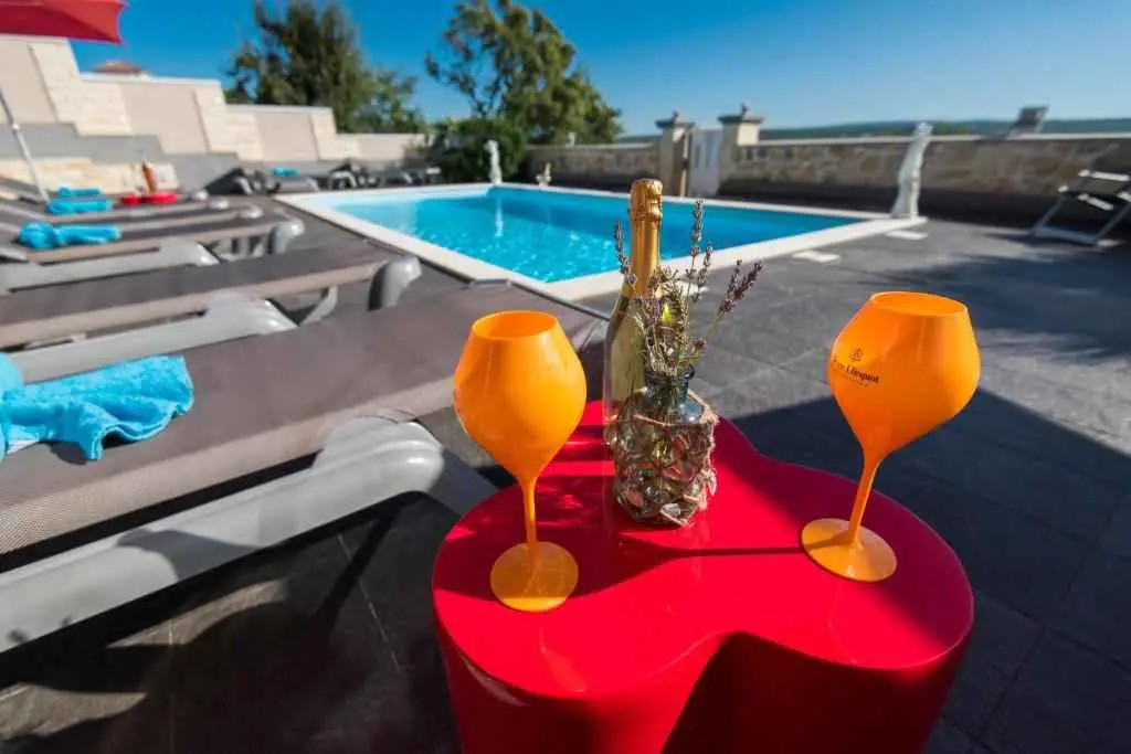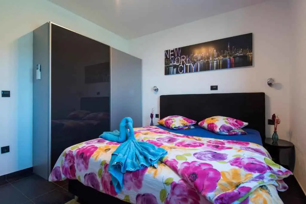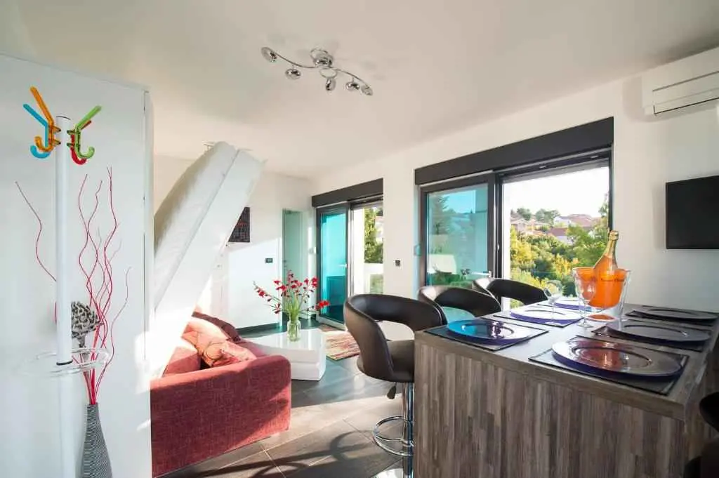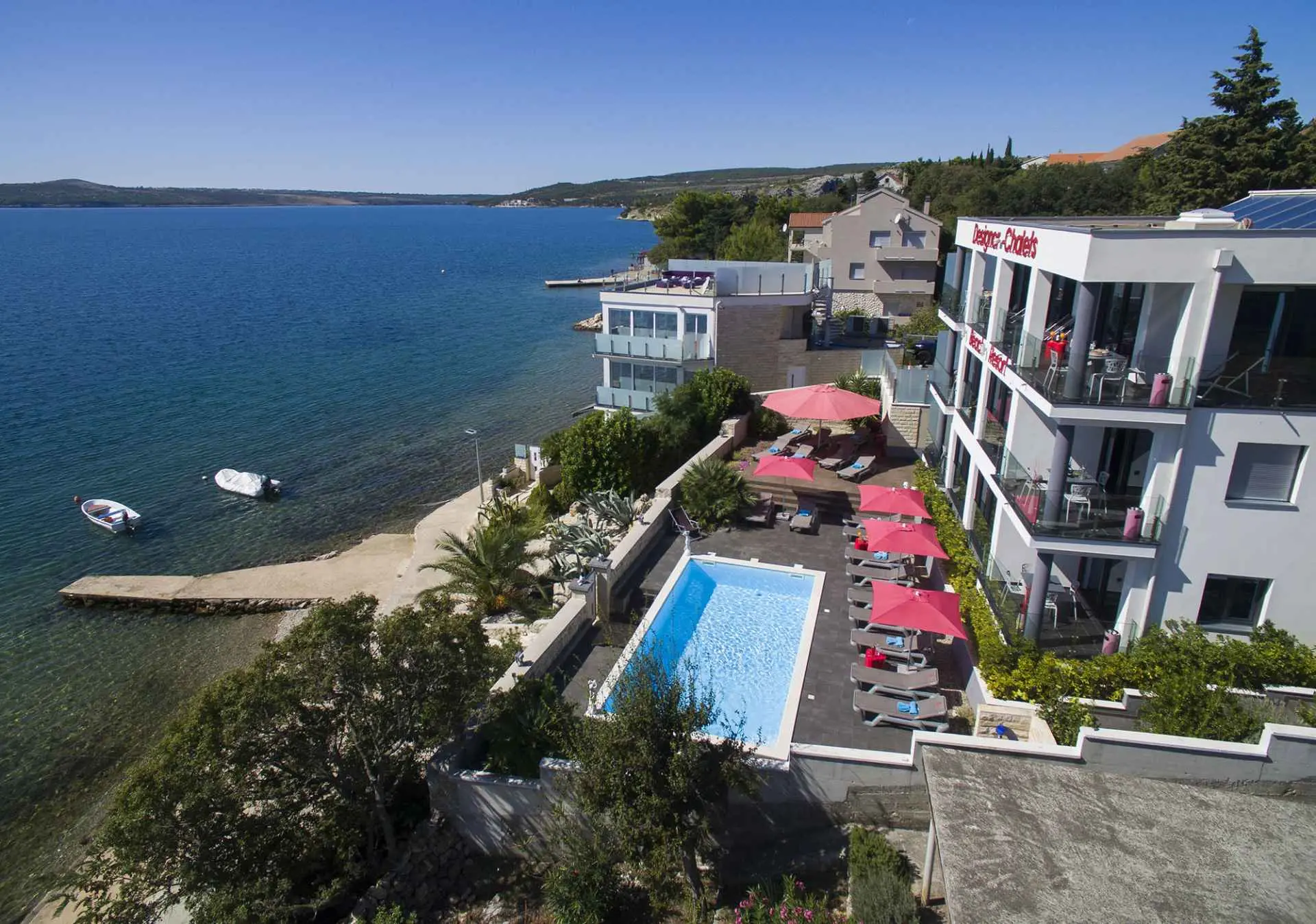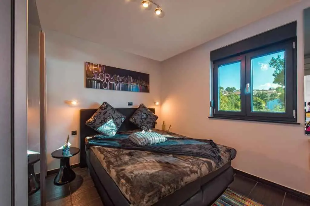 V Design Beach Resort v Maslenica nedaleko Zadaru v Chorvatsku čekají čtyři fantastické designové prázdninové apartmány a penthouse, které vás potěší svou polohou přímo u moře. Kromě nejlepšího vybavení je bezkonkurenční především krásná pláž přímo před domem. Designové prázdninové apartmány, každý s 58 m² obytné plochy, vám nabízí dostatek prostoru pro plné pohodlí; penthouse je ještě velkoryse vybaven 122 m². Víme: toto místo si zamilujete! S prázdninovými apartmány v Maslenica Chorvatsko se sen stává skutečností. Designer Chalets Makro navrhl tyto prázdninové apartmány na špičkovém místě přímo u moře s vysoce kvalitním ladensteinským nábytkem. K plnému vybavení patří kromě plně klimatizovaného designového obývacího pokoje a ložnic také luxusní kuchyně včetně kompletního vybavení nádobím, příbory a veškerým kuchyňským náčiním a také designové koupelny. Všechny apartmány mají bezplatné Wi-Fi, prostorný balkon (terasu) s venkovním nábytkem, přímý výhled na moře a bazén s mnoha lehátky. Po rozsáhlém opalování můžete zdarma využít plně vybavené fitness centrum s TV s plochou obrazovkou a infračervenou kabinu v suterénu.