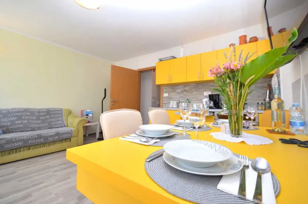 Apartmán MONIUM se nachází v prvním patře se samostatným vchodem, pouhých 300 m od pláže. Má dvě malé terasy s částečným výhledem na moře. Apartmán na 40 m2 pro 2-4 osoby má jednu ložnici s manželskou postelí, plně vybavenou kuchyň s troubou, kávovarem, lednicí s mrazákem, klimatizací, utěrky a pračkou. Obývací pokoj s chytrou televizí, wi-fi zdarma, sedací souprava s možností spaní pro 2 osoby. Pekárna jen 20 m od hotelu, také ovocný trh, kavárna a gril. Restaurace a obchod s potravinami jen 250 m od hotelu. Byt se nachází v blízkosti AC Mareda**** s obrovskou možností dětské zábavy a večerní zábavy pro všechny. V nedaleké vesnici si můžete koupit místní produkty (istrianská vinná réva, olivový olej, vejce, sezónní zelenina a ovoce) Centrum města Novigrad je vzdáleno asi 4 km a aquapark Istralandia asi 4 km. Bezplatné parkoviště v blízkosti objektu.