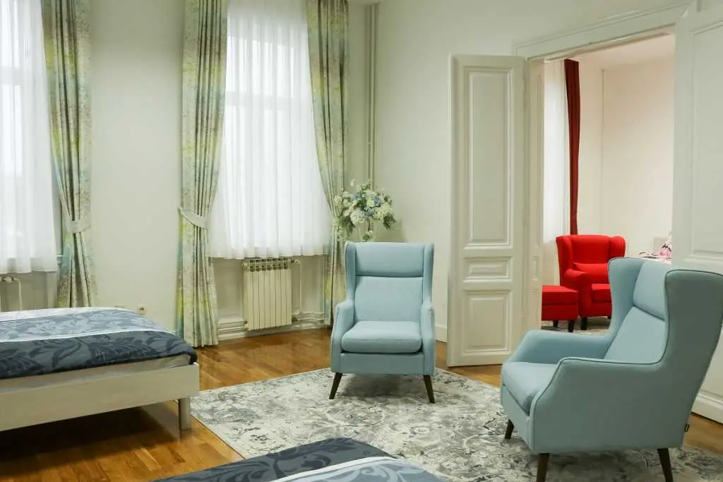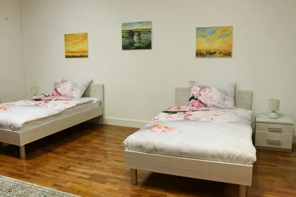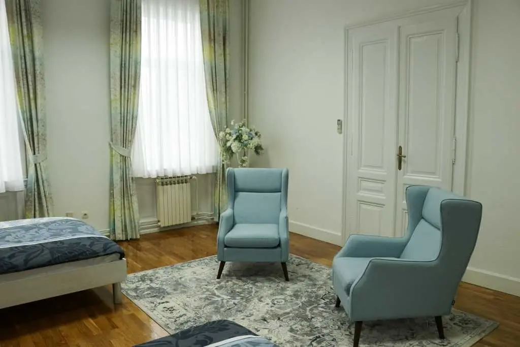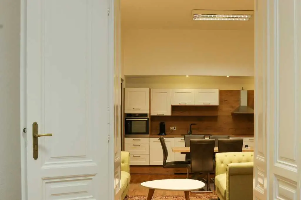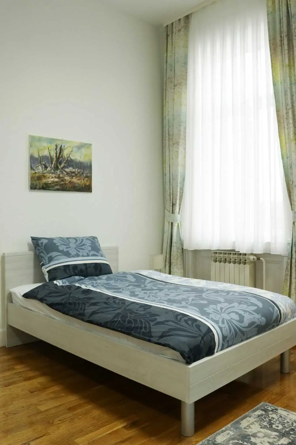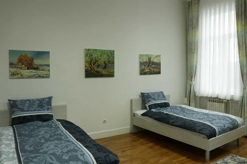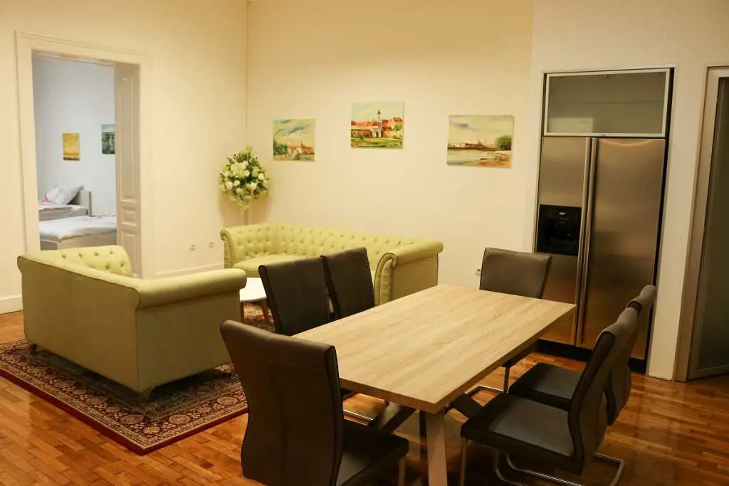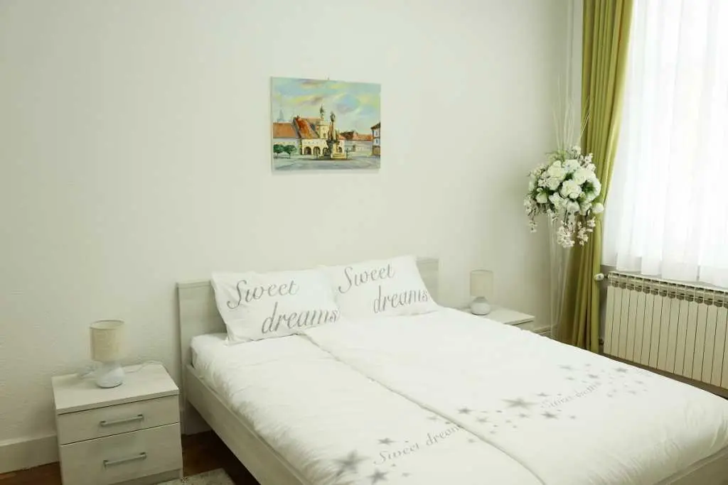 Nově zrekonstruovaný byt (3 *) v samém centru Osijeku. Úzká blízkost kulturních a vzdělávacích institucí, městských památek, parků a množství zábavního obsahu zaručují, že zažijete slyšení Slavonie v plné slávě. Byt má 146 m2 a je vhodný pro 4 až 6 osob. Sastoji se od kuhinje, blagavaonice i dnevnog boravka spojenih na jednom prostoru, 3 spavace sobe, 2 kupaonice, hodnika, spremišta, balkona and ostakljene terase (prostora za pusenje). Celý prostor je klimatizovaný. V budově nejsou žádní stálí obyvatelé, takže budete moci spát v klidu a tichu, i když existuje několik barů, hospod, klubů a restaurací, což znamená, že nebudete muset daleko cestovat daleko. Kuchyň, jídelna a obývací pokoj jsou spojeny. Celý prostor je klimatizovaný. Kuhinja je opremljena perilicom posuđa, posuđem, mikrovalnom pećnicom, pećnicom, elektricnim štednjakom, hladnjakom i aparatom za kavu. V obývacím pokoji je TV, která má satelitní TV. Jedna z koupelen je vybavena sprchou a druhá s vanou. Host bude mít k dispozici vysavač, žehličku, vysoušeč vlasů, ručníky, prostěradla, mýdlo, sprchový gel a šampon. WI-FI je k dispozici v celém bytě.