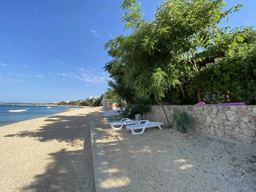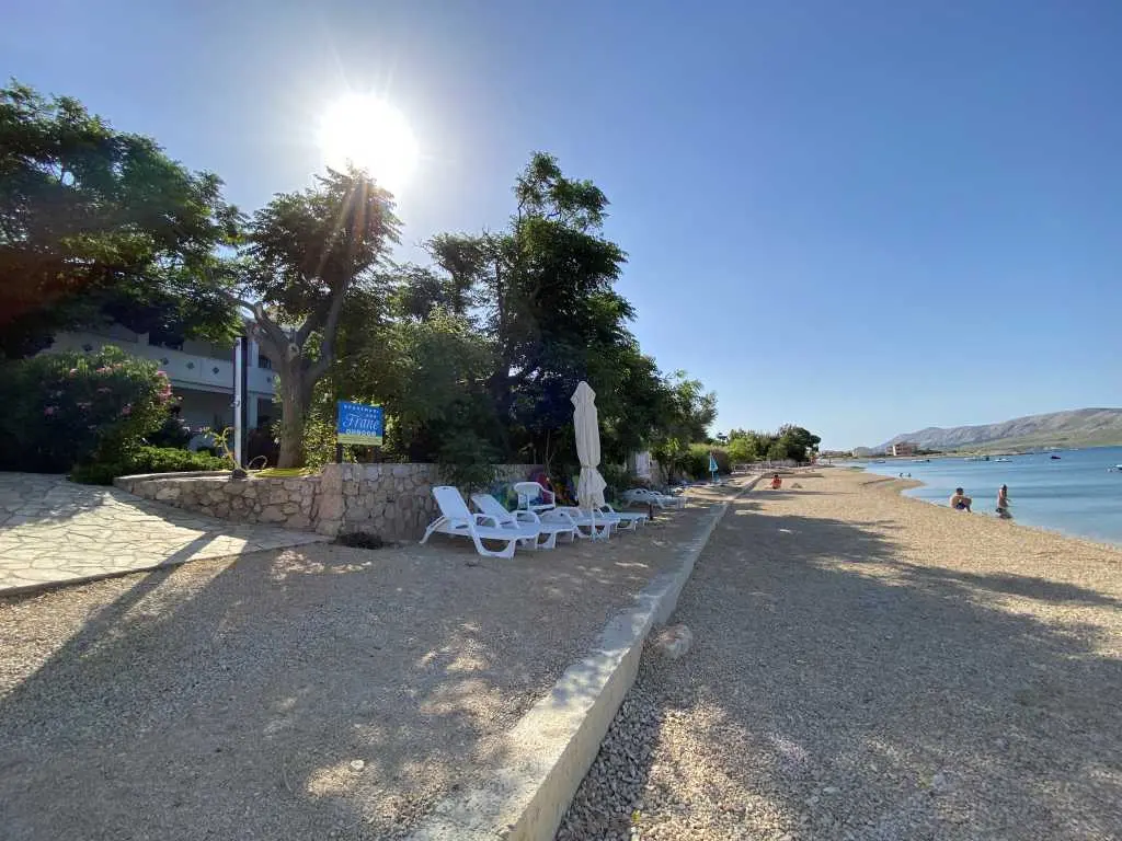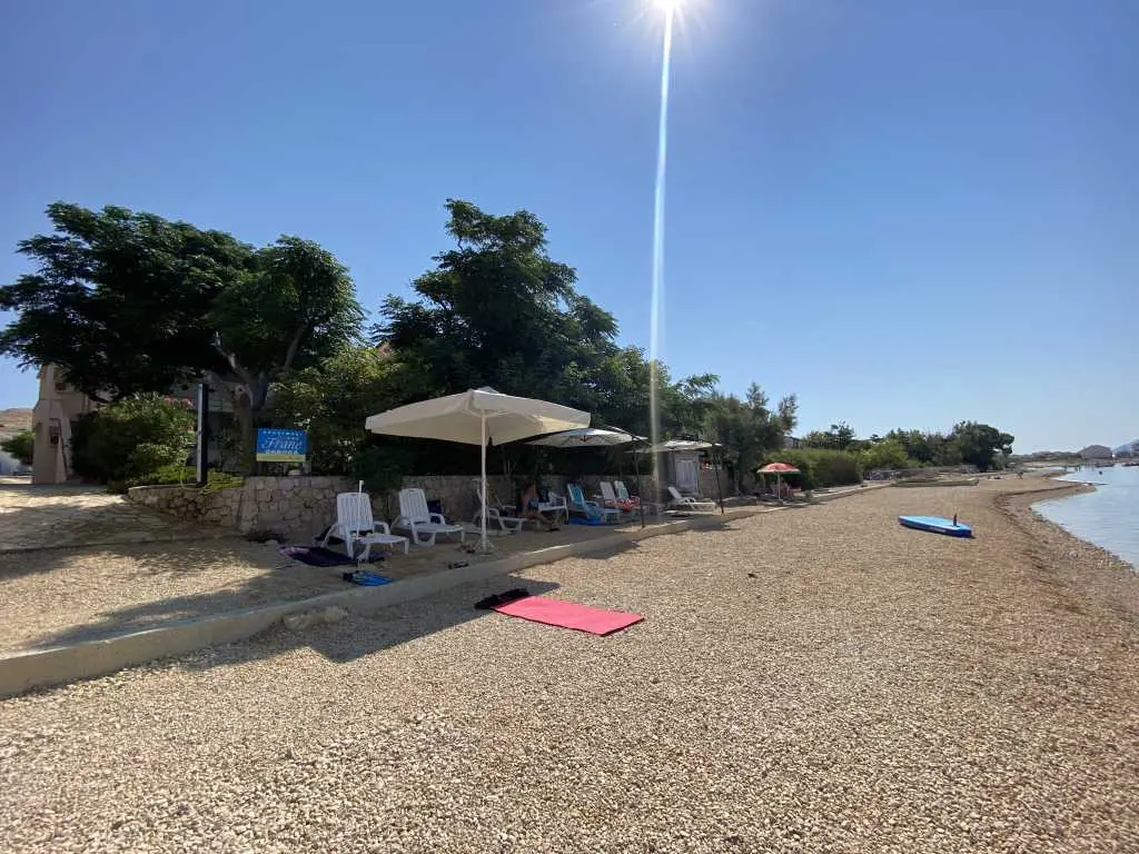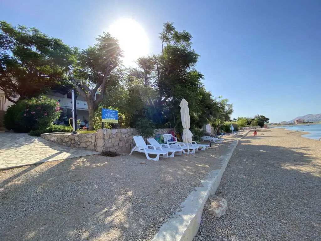 Apartmány Frane se nacházejí v malé vesničce Vidalići na ostrově Pag v Chorvatsku. Apartmány mají ideální polohu jen pár kroků od naší písečné pláže, která se nachází pouhých 10 metrů před domem. Nad pláží se táhne přírodní stín, jak můžete vidět na obrázcích. Nabízíme apartmány umístěné ve dvou domech. Apartmány jsou vhodné pro rodinnou dovolenou, zatímco pláž a zahrada s grilem jsou jen pár kroků odtud.