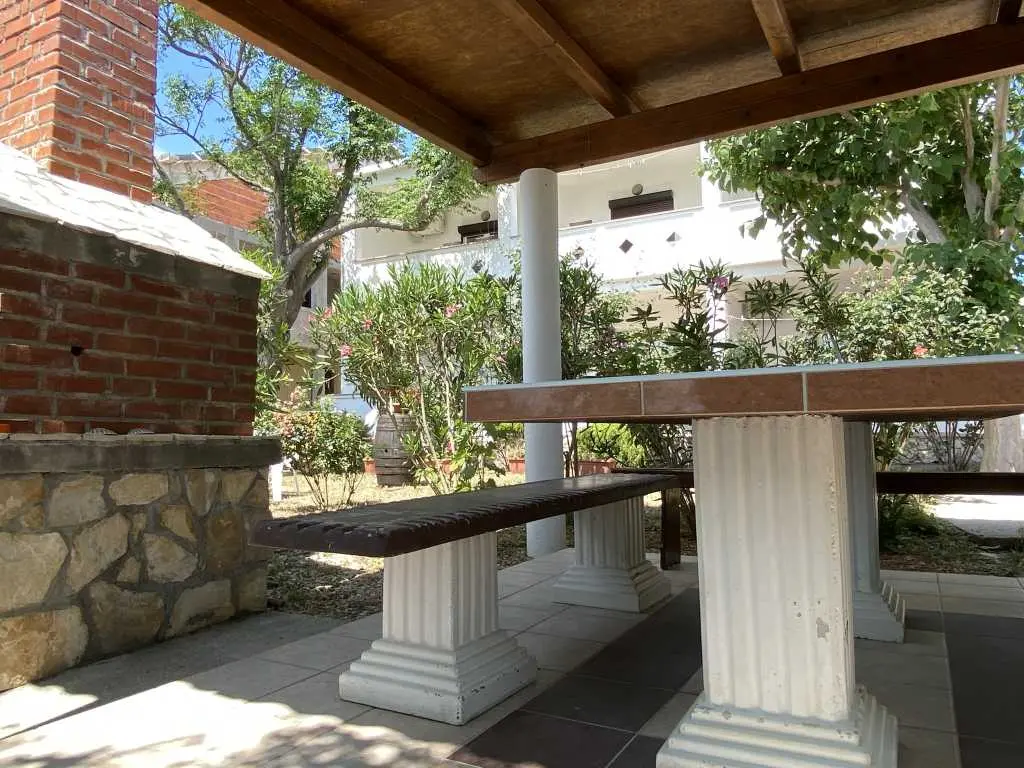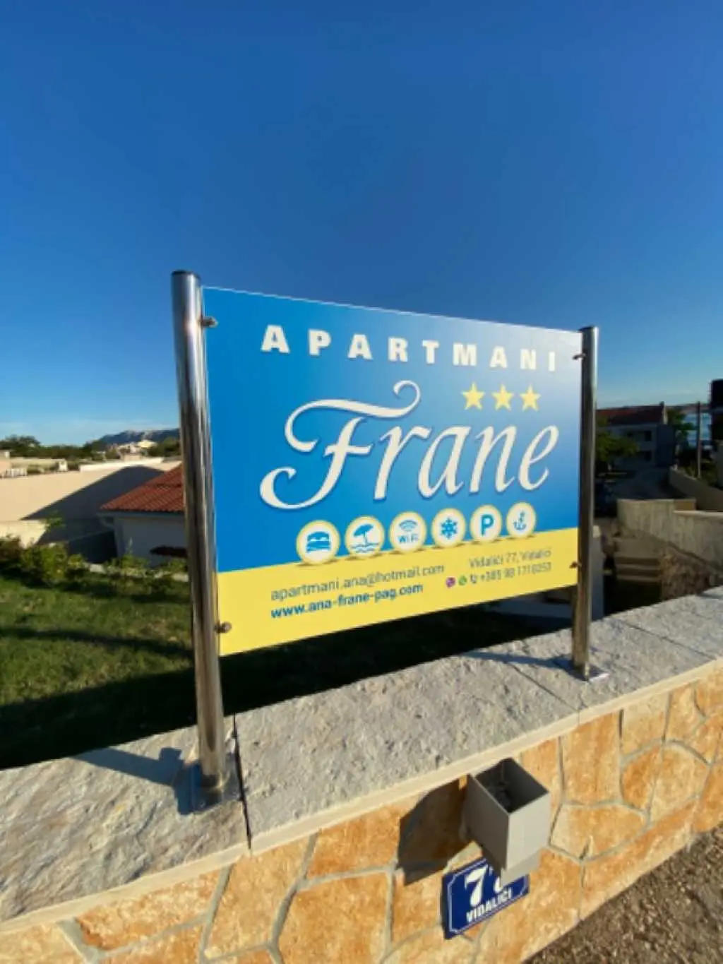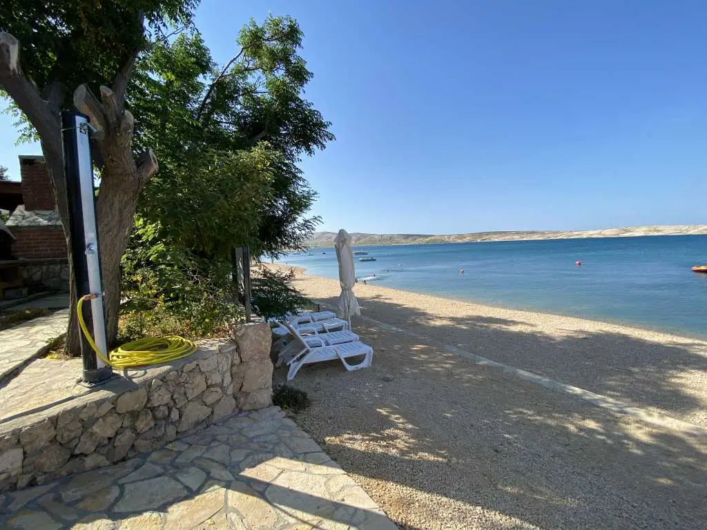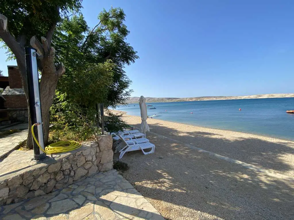 Apartmány Frane se nacházejí v malé vesničce Vidalići na ostrově Pag v Chorvatsku. Apartmány mají ideální polohu jen pár kroků od naší písečné pláže, která se nachází pouhých 10 metrů před domem. Nad pláží se táhne přírodní stín, jak můžete vidět na obrázcích. Nabízíme apartmány umístěné ve dvou domech. Apartmány jsou vhodné pro rodinnou dovolenou, zatímco pláž a zahrada s grilem jsou jen pár kroků odtud.