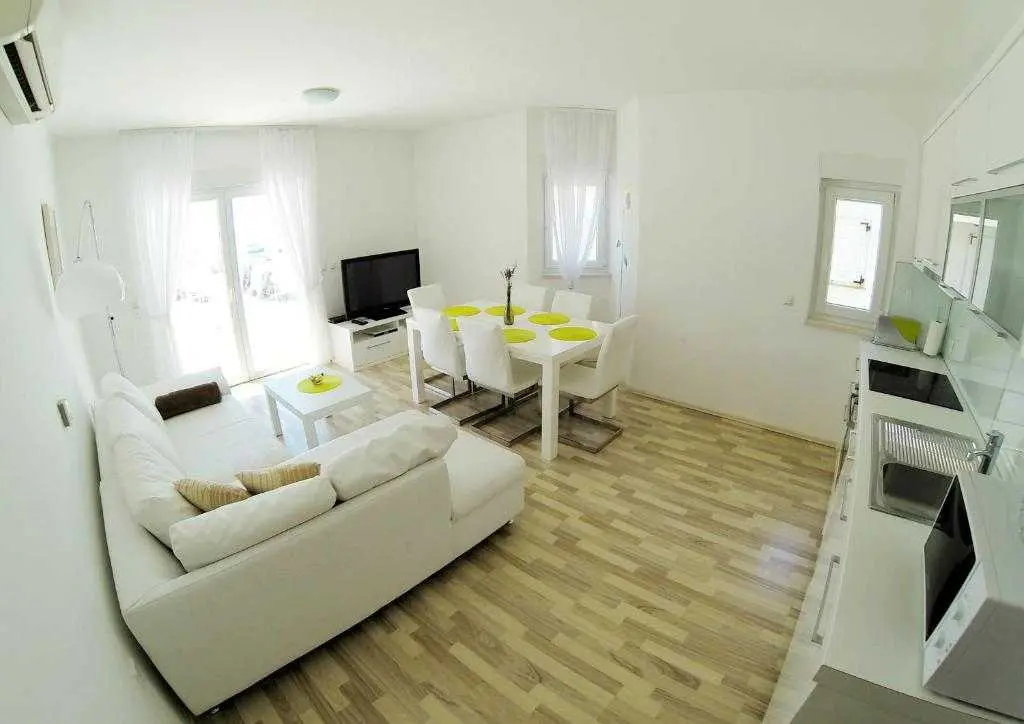 Apartmány jsou vhodné pro děti, skvělý rodinný prázdninový dům s bazénem, pláží a dětským hřištěm jen pár kroků. Apartmány Barbati se nacházejí ve vesnici Vidalici, jen 5 km od města Novalja a během několika minut od nádherných pláží Pagu včetně světoznámé pláže Zrce. Apartmány mají ideální polohu jen pár kroků od veřejné oblázkové pláže. Pokud jste pro společnost nebo chcete jen odpočívat na slunci, můžete jít na naši krásnou terasu na opalování u bazénu nebo do oblasti vedle pláže s plážovými lehátky a slunečníky a mnoha dalšími vymoženostmi, které vám zajistí báječný čas tady. Plavecký bazén má zatahovací průhledný kryt, který zakrývá bazén v noci nebo za špatného počasí, takže si můžete odpočinout. Užijte si pohodový životní styl Pagu a pláž od pozdního jara do začátku podzimu. Pokud si chcete během dovolené plně odpočinout bez vaření, vlastní restaurace Barbati čeká na objevení naší vynikající kontinentální / středomořské kuchyně. Kromě rybích a masových pokrmů z našeho a la carte menu můžete ochutnat pizzu pečenou v kamenné peci nebo si pochutnat na vegetariánských pokrmech. Vítejte!!