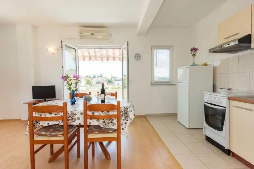 Petrčane má jednu z nejkrásnějších pláží v oblasti Zadaru. Dvoukilometrová pláž s pískem a skalami obklopená borovicemi a průzračnou vodou, kde si můžete vyzkoušet různé sporty. Petrčane malebná vesnice mezi Zadarem a Ninem, starými chorvatskými městy. Zeměpisná poloha vhodná pro návštěvu ostrovů souostroví a národního parku Kornati. Pokud chcete aktivní dovolenou, Petrčane nabízí řadu sportovních a rekreačních aktivit. Apartmány se nachází pouhých 60 metrů od moře. Klimatizovaný apartmán se 2 ložnicemi a balkonem. V klidné čtvrti. Může ubytovat až 5 osob (4+1). Dvě manželské postele a rozkládací pohovka v obývacím pokoji. Krásný výhled. Koupelna s vanou. Free Wi-Fi a soukromé parkoviště. Satelitní televize.