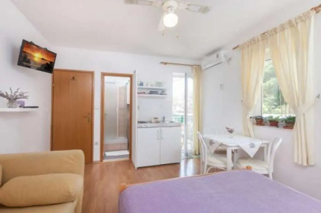 Naše apartmány jsou umístěny u vchodu do Podgory, v ne tak hlučné oblasti, a je vhodný pro rodinnou dovolenou. Nový byt v novostavbě, který je vybaven moderním nábytkem s cílem zajistit příjemný pobyt pro naše návštěvníky. Kamenná fasáda a přirozený stín na dvoře dát typickou dalmatskou atmosféru. V areálu se nachází kousek od moře, pláže, centra a obchodů. Bezprostřední blízkost lesa a olivovníky zaručit svěží a čistý vzduch, a turistické stezky mohou vychutnat krásný výhled na moře, ostrovů a hor.