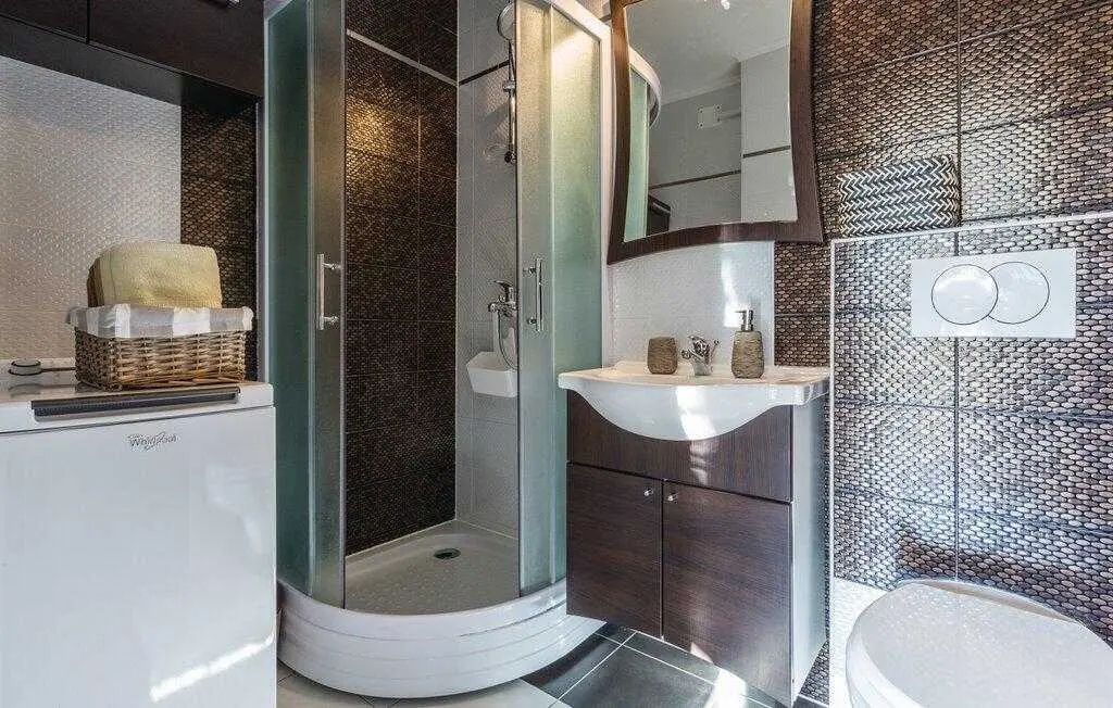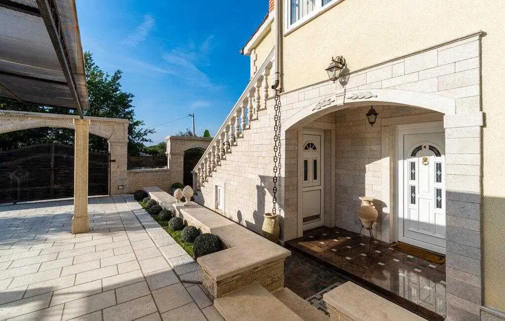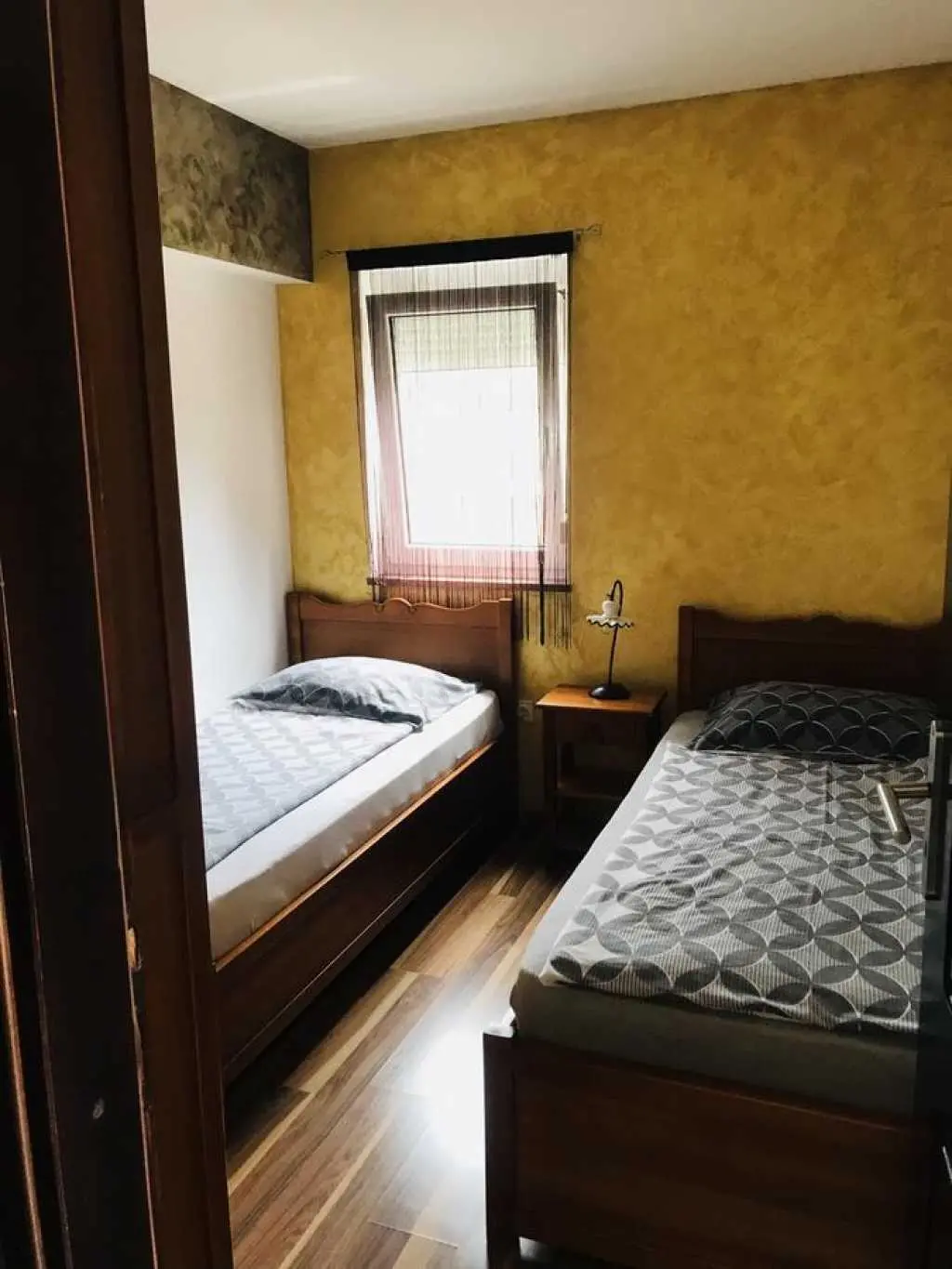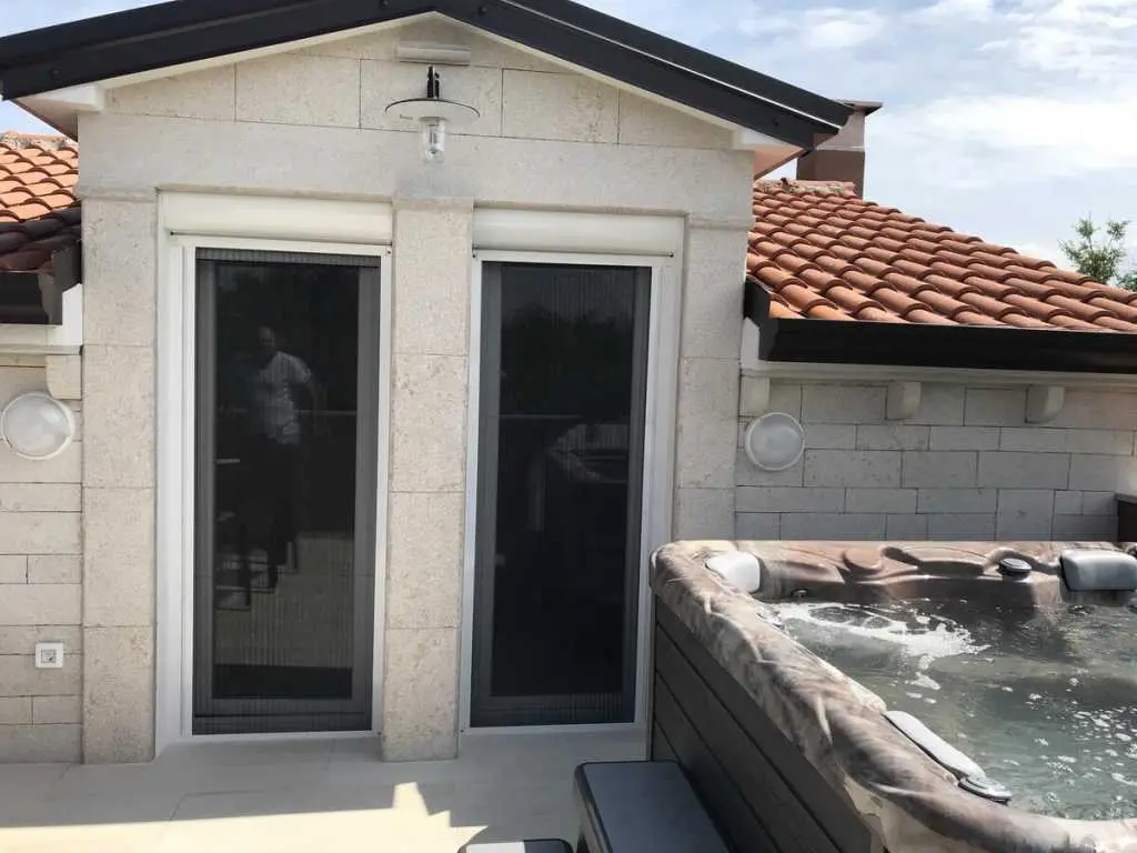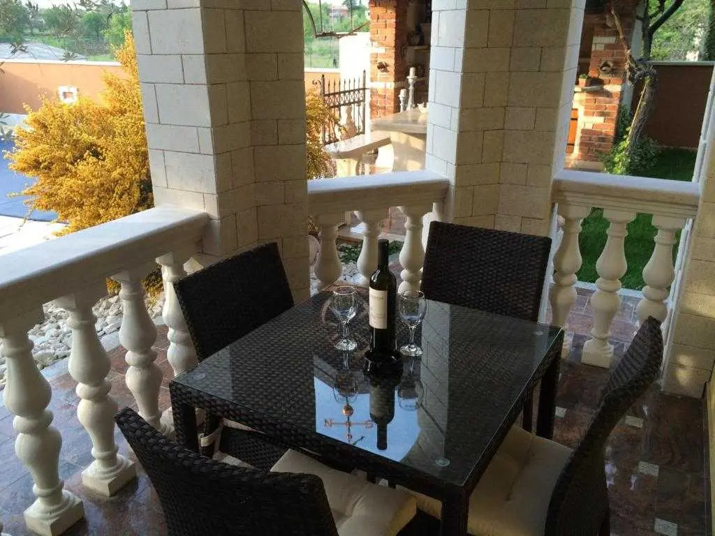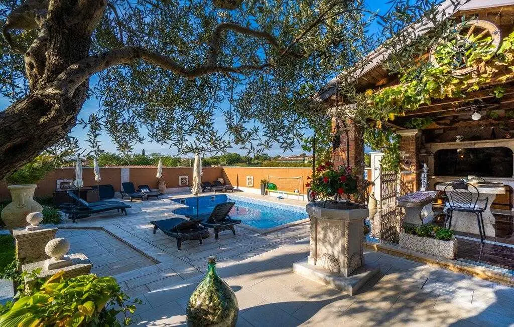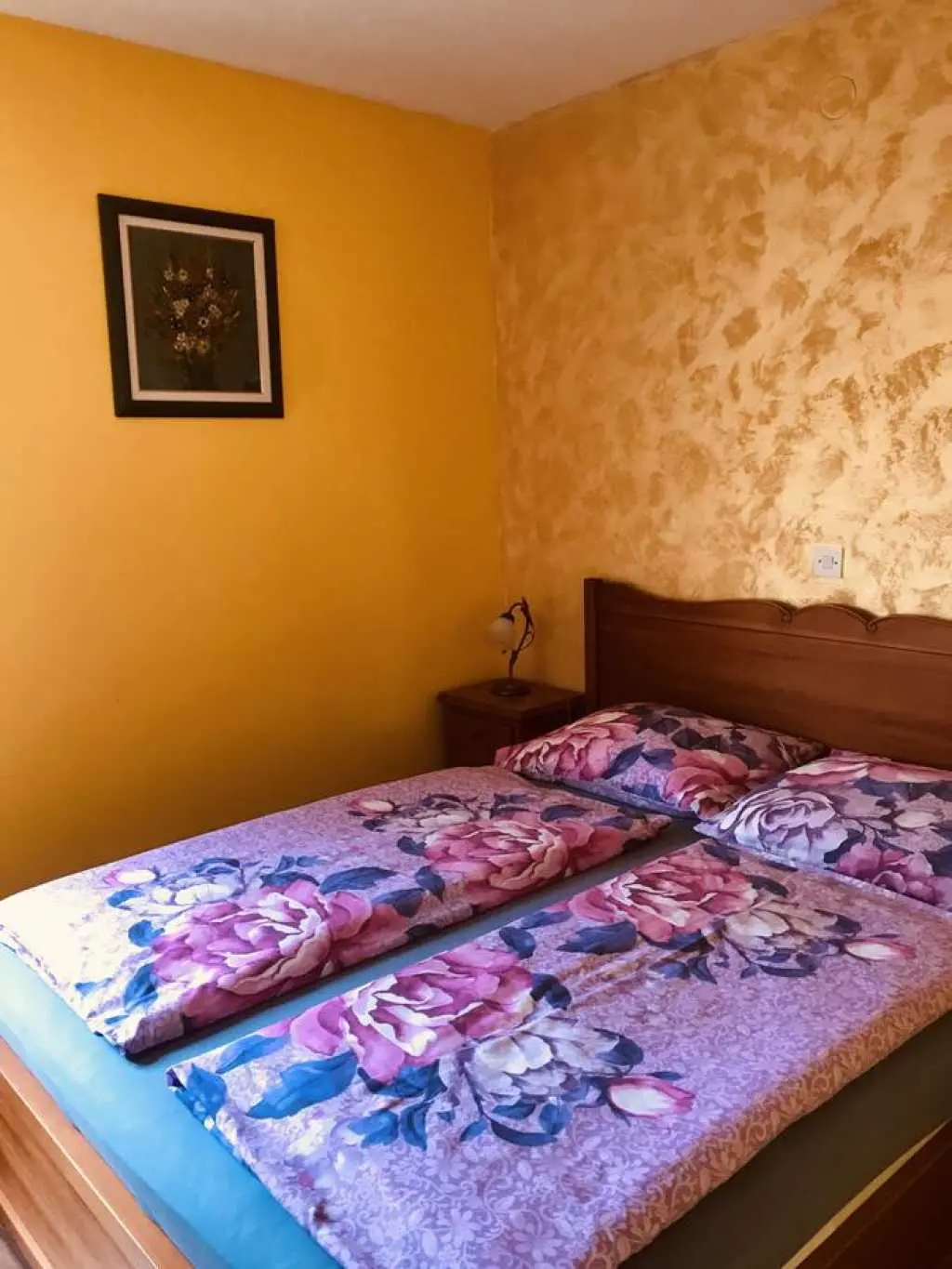 V bytě je kuchyň s jídelním koutem, obývací pokoj, jedna ložnice, koupelna a terasa. Nedaleko je velký gril a bazén o velikosti 7x3, 5 m2 s pláží, lehátky a obklopený zelení. Apartmán v ceně klimatizace, wifi, parkovací místo, kulečníkový stůl, stolní fotbal.