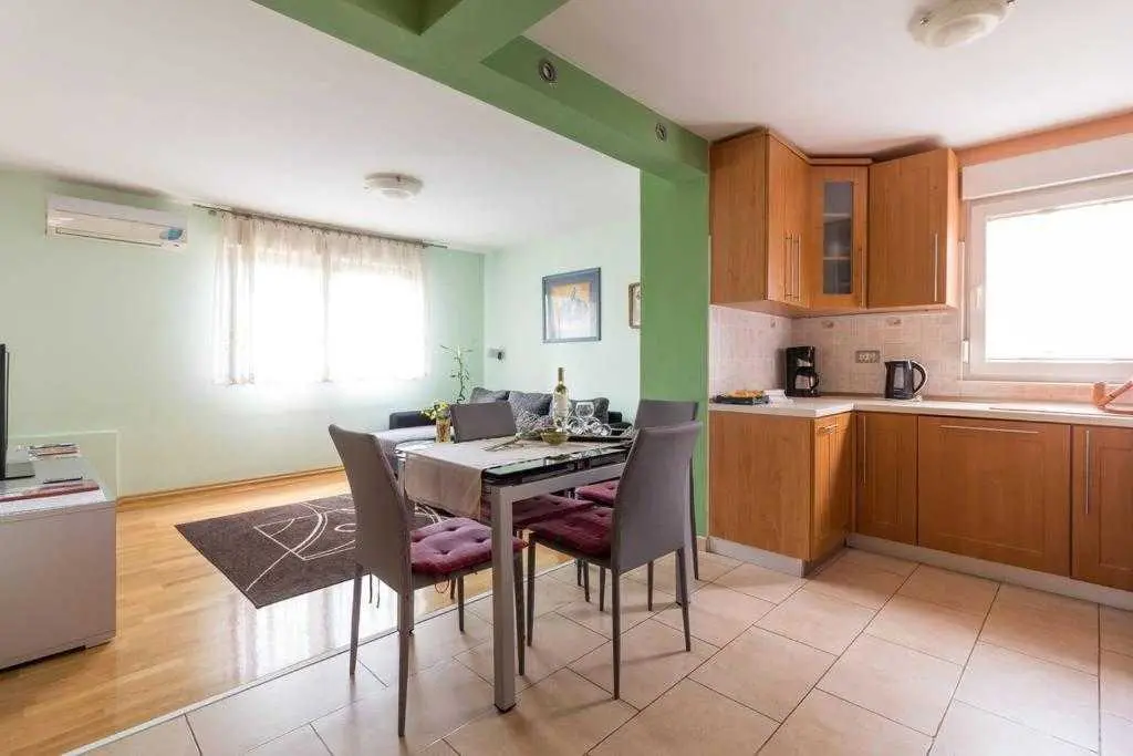 Nově zrekonstruovaný byt v přízemí v klidné části města 10 minut chůze do centra a 10 minut jízdy na krásné pláže. Apartmán se skládá ze dvou dvoulůžkových pokojů, kuchyně, koupelny a obývacího pokoje s rozkládací pohovkou pro dvě osoby. Před apartmánem je terasa a hosté mohou využít venkovní krb. K dispozici je klimatizace, wi-fi a kabelová televize. K dispozici je parkovací místo u nás ve dvoře a také před domem, na silnici.
