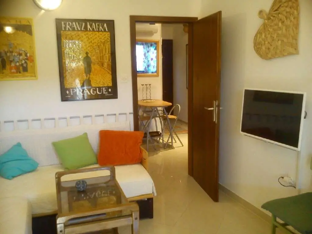 Byt se nachází v přízemí jednopatrového domu obklopeného zahradou. Skládá se z obývacího pokoje se 2 lůžky, ložnice s manželskou postelí, kuchyně, koupelny s pračkou, toalety, předsíně, terasy, gril pouze pro hosty, parkoviště. Kuchyně je vybavena všemi nádobami. Byt je útulný a zvlášť bezpečný pro děti.