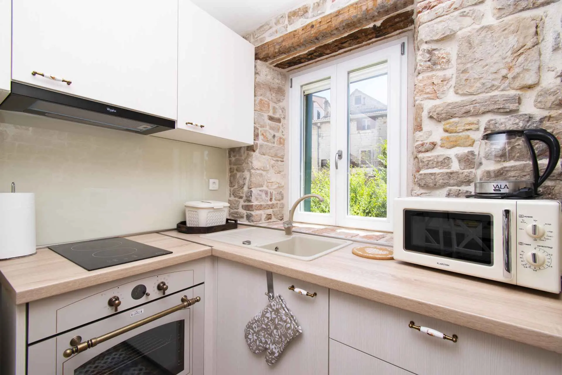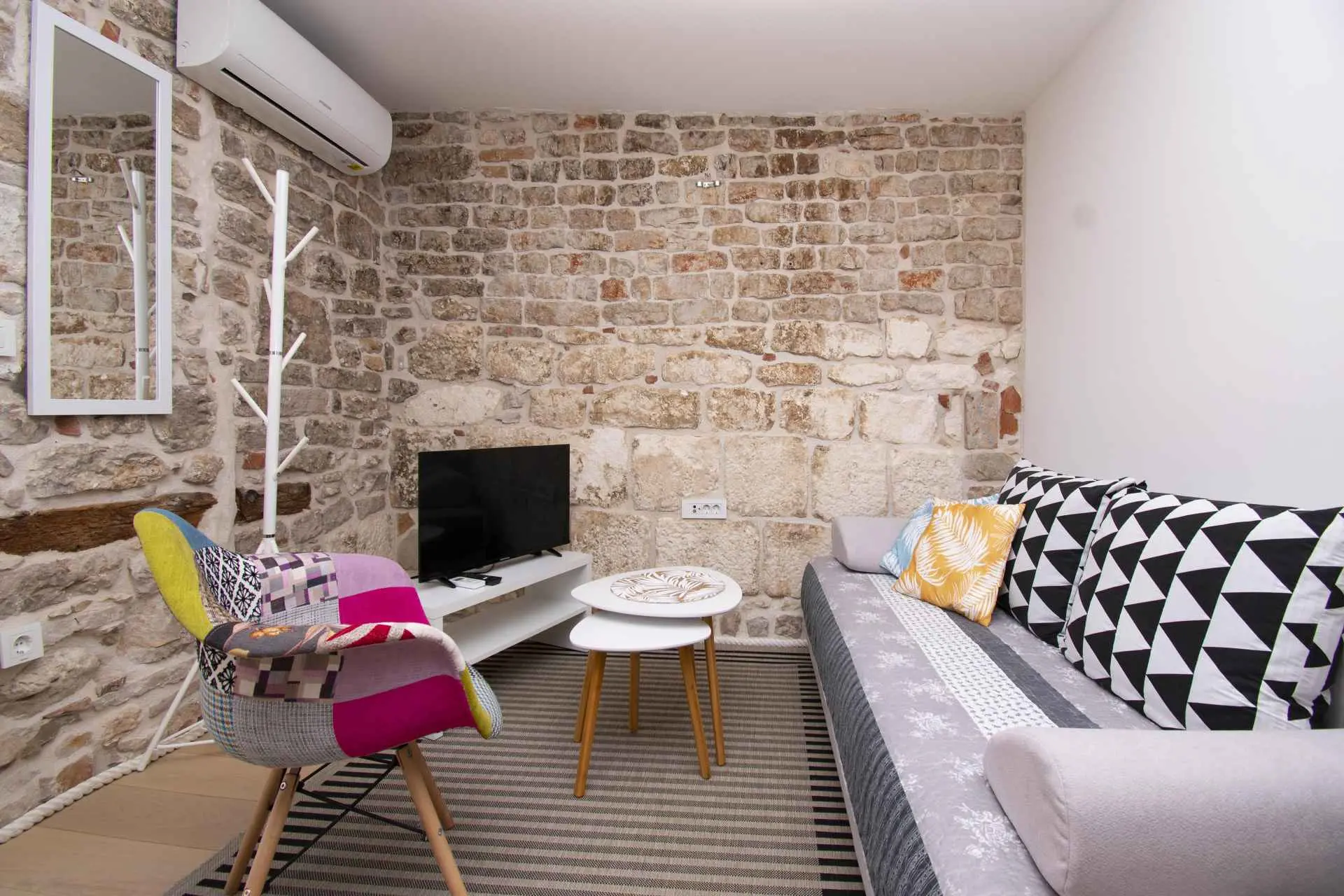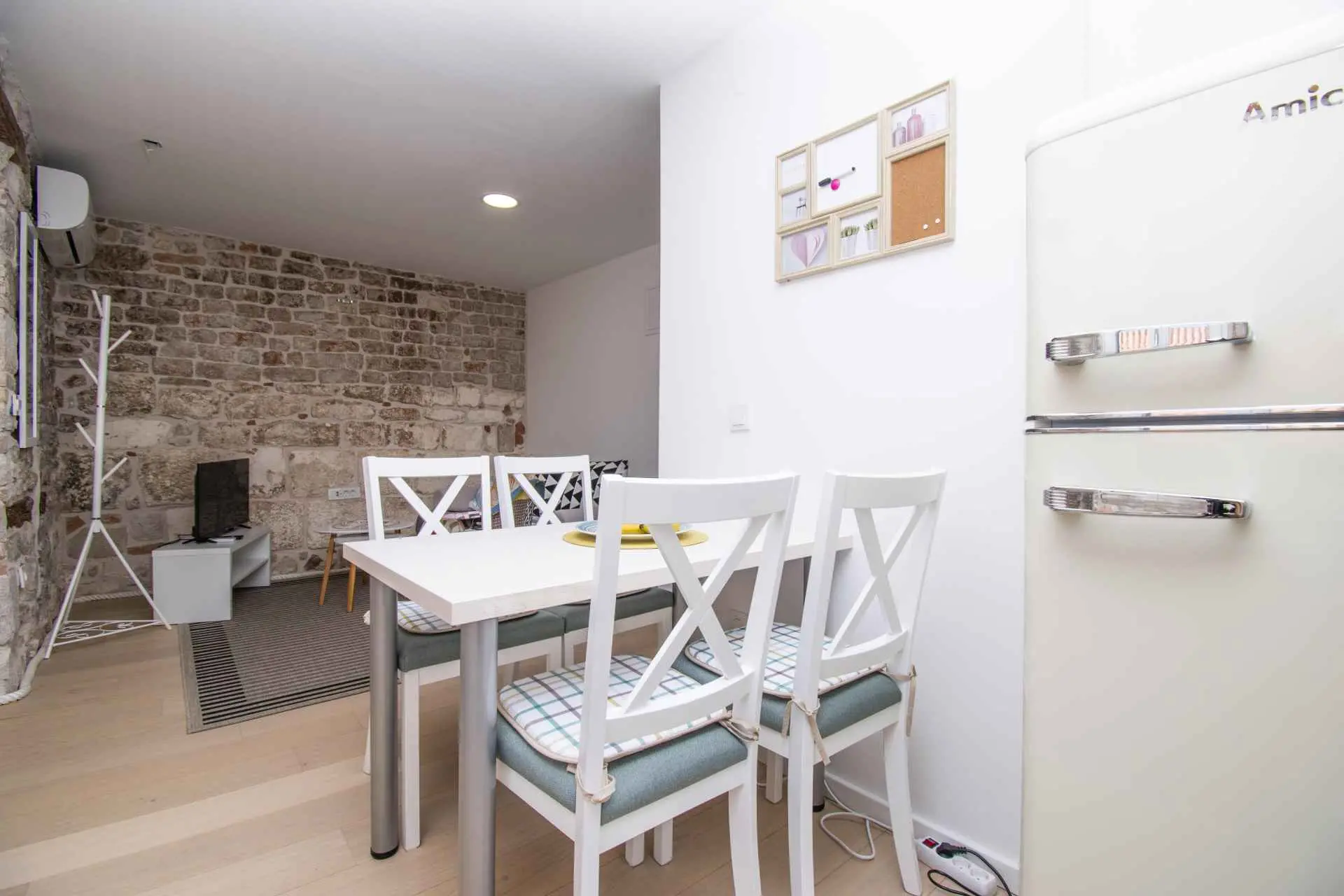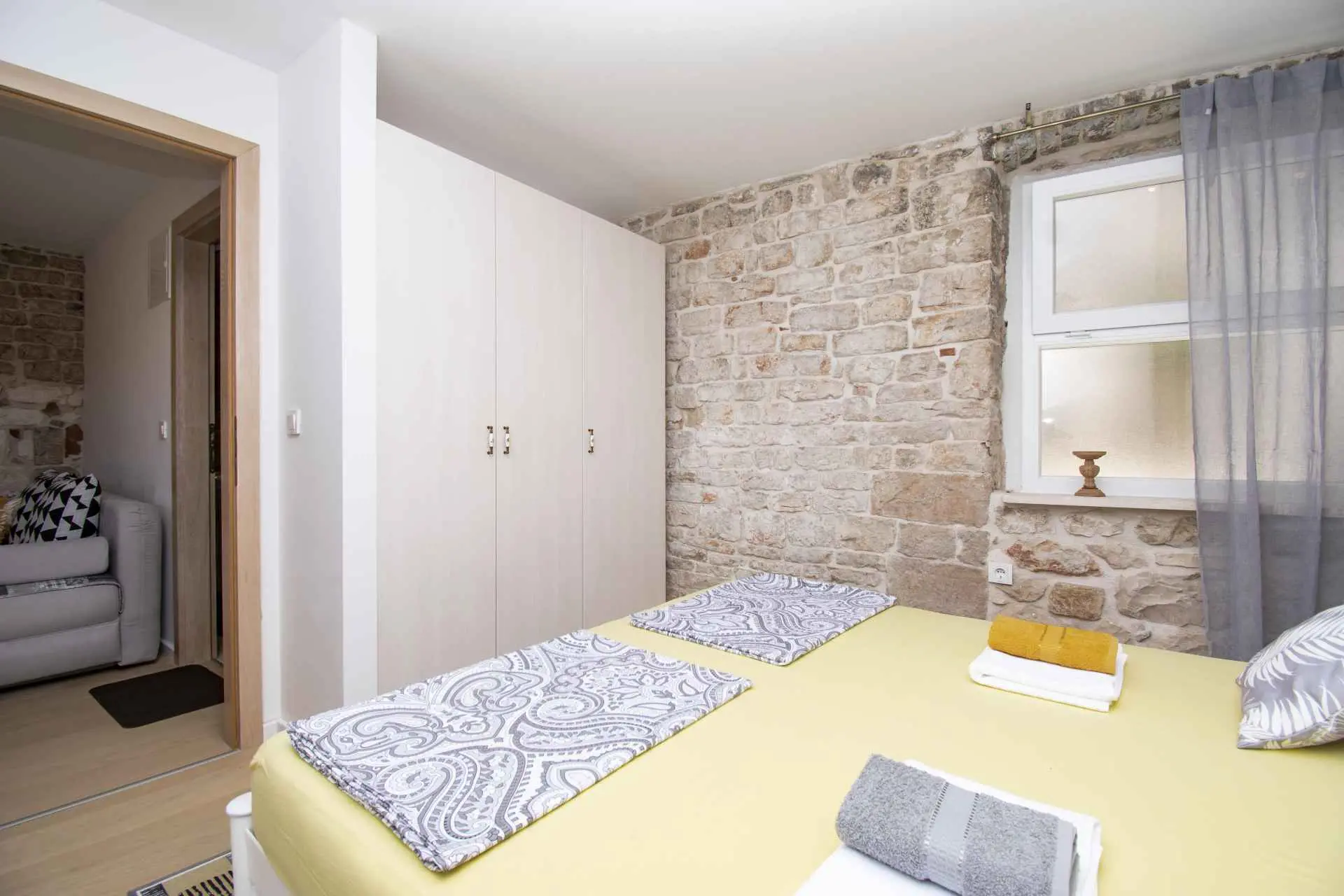 Apartmán Oli&Zaki se nachází v Šibeniku ve velké zátoce, kde se řeka Krka vlévá do moře. Vyrostlo ze staré chorvatské pevnosti poblíž pevnosti sv. Michala, která dodnes shlíží na město. Kromě kostela svatého Michala je město obklopeno dalšími třemi pevnostmi. Jeho úzké křivolaké uličky, kamenné domy, mnoho schodišť a zbytky městských hradeb dodávají Šibeniku romantickou středomořskou atmosféru. Apartment Oli&Zaki nabízí Wi-Fi, klimatizaci a satelitní TV s plochou obrazovkou. Kuchyň je vybavena sporákem, troubou, kuchyňským náčiním, varnou konvicí, mikrovlnnou troubou, toustovačem, kávovarem, lednicí a jídelním stolem. V obývacím pokoji je manželská pohovka a satelitní TV s plochou obrazovkou. Ložnice má jednu velkou manželskou postel. V koupelně je sprchový kout, toaleta, pračka, fén a toaletní potřeby. Před vchodem je také malá terasa s venkovním nábytkem a výhledem na staré město. Samostatné přihlášení se zámkem na klíč. WiFi a klimatizace jsou zdarma. Žádné soukromé parkoviště. Nejbližší veřejné parkoviště je vzdálené 180 metrů na adrese ''Ulica Kralja Zvonimira 14'' a cena je 1,4 eura za hodinu. Městské parkoviště je 2,6 eur na den, je vzdálené 1 km od apartmánu. Souřadnice: 43.743487, 15.886149 K dispozici je také ''Parkoviště Poljana'', které je vzdálené 260 metrů, je v garáži a cena je 1,4 EUR za hodinu. K dispozici je další parkoviště na adrese ''Obala Hrvatske Mornarice 1'' a to je také 1,4 eur na hodinu, asi 650 metrů od apartmánu. Domácí mazlíčci nejsou povoleni. Kouření není povoleno. Byt se nachází ve starém městě Šibenik. Pláž je 2 km daleko. Trh je vzdálen 500 m. Restaurace je vzdálena 350 m. Caffe bar je 350 m daleko. Nákupní centrum Dalmare je vzdálené 6 km. Vranské jezero je 41 km daleko. Národní park Krka je 12 km daleko. Letiště Split je 59 km daleko.