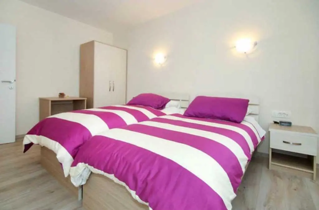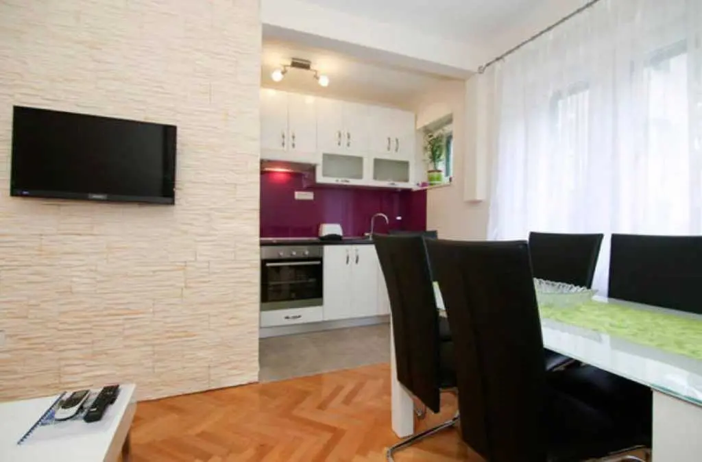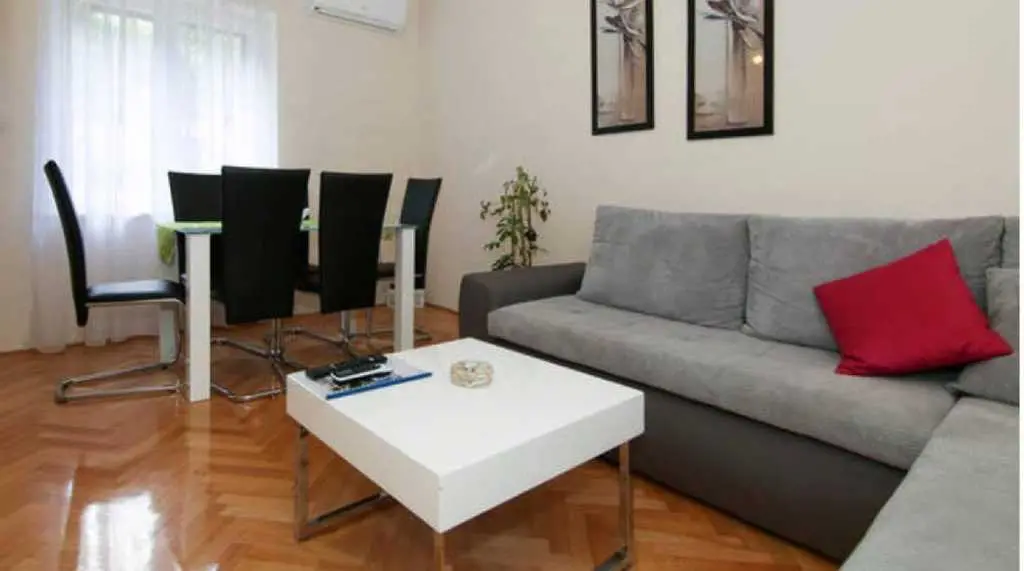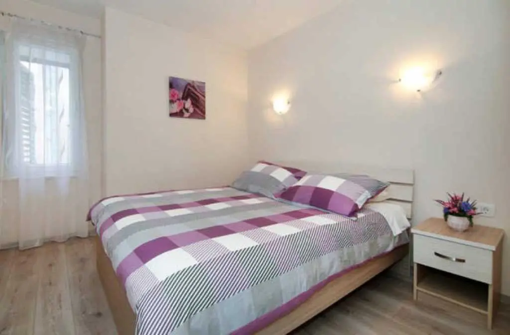 Apartmán Andelina je nově zrekonstruovaný byt 3+1 ve zvýšeném přízemí budovy. V jednom pokoji je manželská postel a v druhém pokoji jsou dvě samostatná lůžka. Dřevěné postele na zakázku s pevnými marresami. Velmi pohodlné. Všechny pokoje jsou klimatizované. Rozkládací pohovka pro dvě osoby se nachází v obývacím pokoji. Kuchyň, jídelna jsou propojeny s obývacím pokojem. Velká koupelna se sprchovým koutem a velká chodba. Pračka, bide, vysoušeč vlasů, žehlička v koupelně. Parkování před budovou. 10 minut chůze na promenádu riva a Diokleciánův palác. Bezplatný wi-fi internet a klimatizace a daň jsou zahrnuty v ceně.