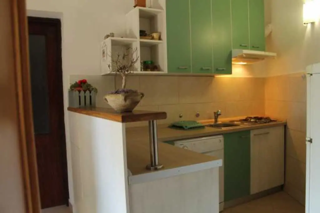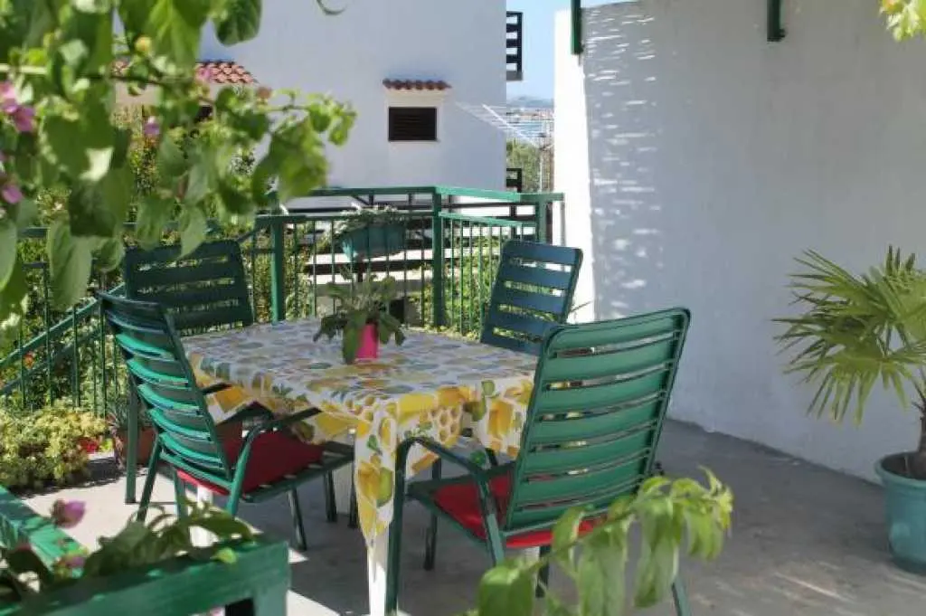 V rodinném domě v prvním patře jsou k pronájmu dva byty. Každý apartmán má samostatný vchod a vlastní terasu. Dům se nachází v srdci Srima, 60 m od obchodu a 80 m od moře. Pláž s modrou vlajkou je vzdálená 150 metrů. Restaurace je vzdálena 250 m. Apartmán 1, 2+ 2. Skládá se z: ložnice, obývacího pokoje s rozkládací pohovkou, koupelny s vanou a pračkou, kuchyně s myčkou, terasy. Má klimatizaci. Byt 2, 2+1. Skládá se z: ložnice, kuchyně-obývací pokoj, WC se sprchou a velká terasa. Možnost dvou přistýlek, první lůžko je sedací souprava v obývacím pokoji a druhou přistýlku lze dát do ložnice. Má klimatizaci.