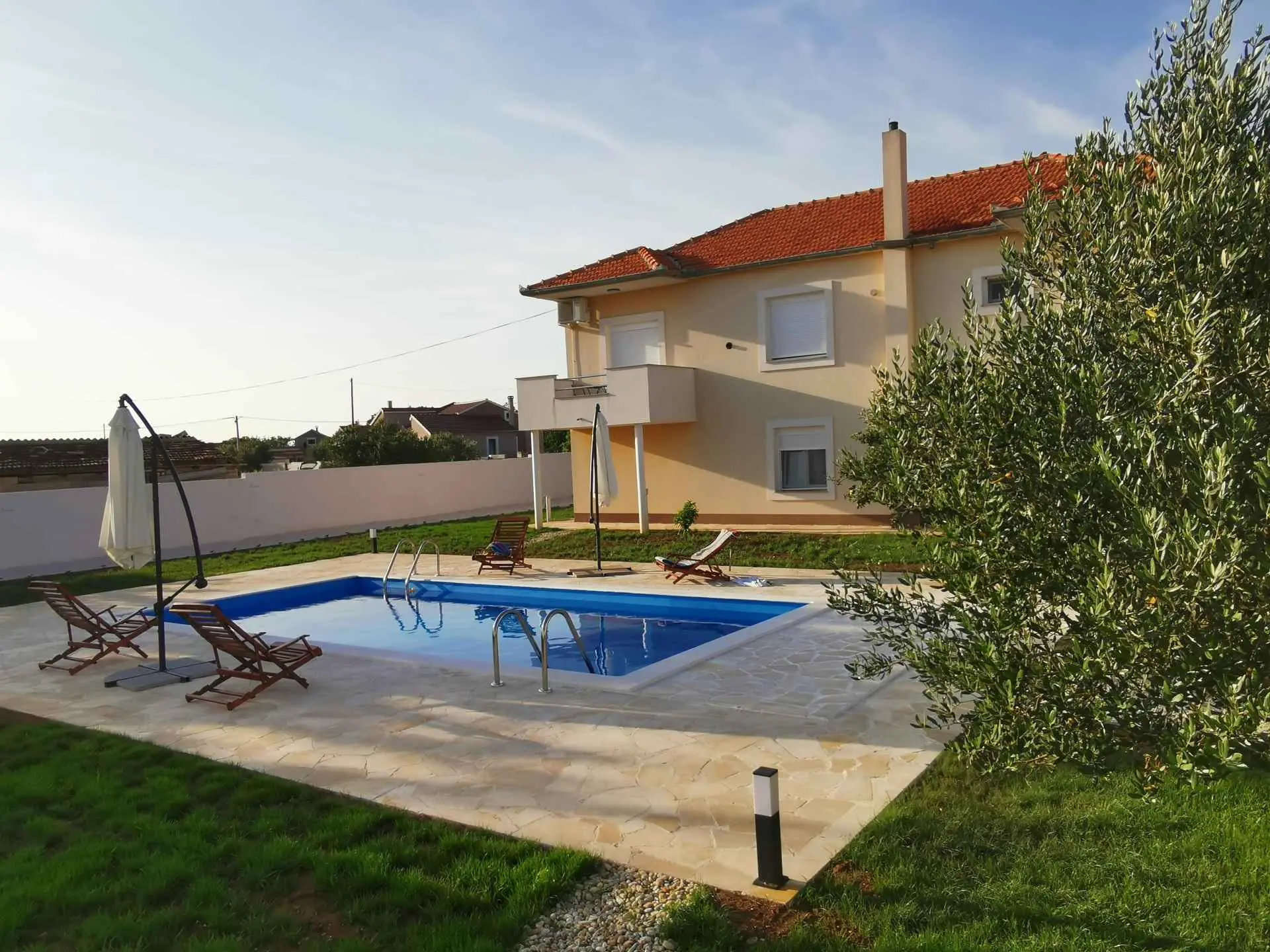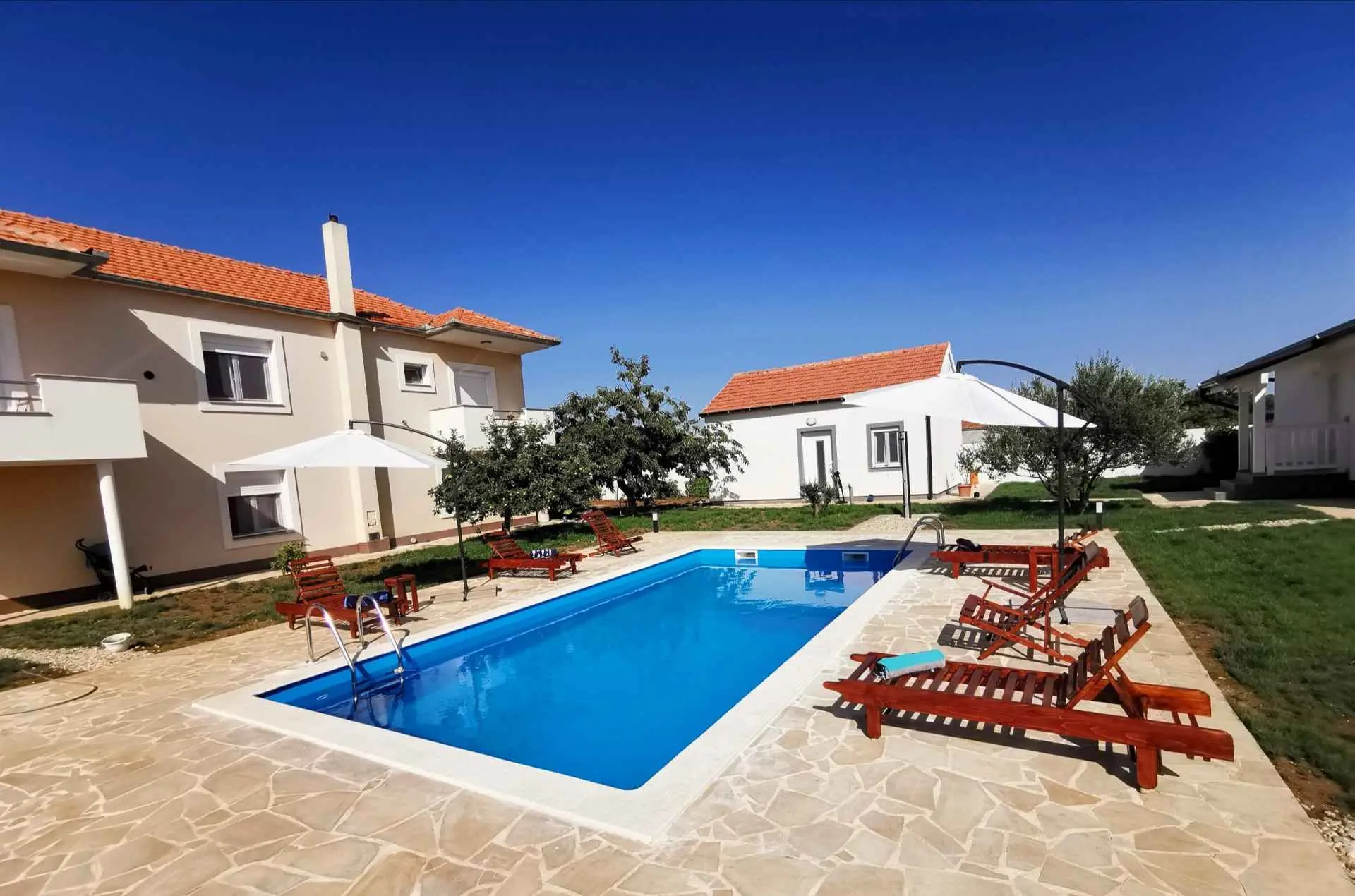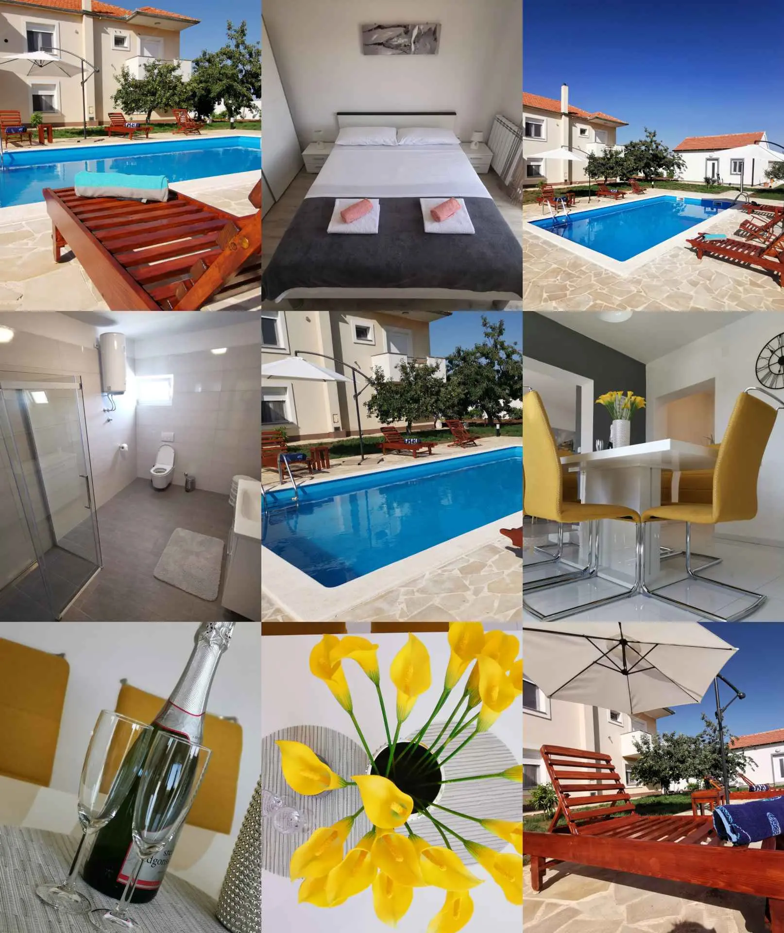 Apartment Amelie s výhledem na bazén nabízí ubytování se sezónním venkovním bazénem, sdíleným loungem a terasou, asi 19 km od přístavu Kornati. Tento apartmán nabízí soukromý bazén, zahradu, gril, bezplatné Wi-Fi a neplacené soukromé parkoviště. Klimatizovaný apartmán se skládá ze 3 ložnic, obývacího pokoje, plně vybavené kuchyně s lednicí a kávovarem a 2 koupelen se sprchou a toaletními potřebami zdarma. V apartmánu jsou k dispozici ručníky a ložní prádlo. Apartmán nabízí 3hvězdičkové ubytování se saunou a dětským hřištěm. Nejbližší letiště je letiště Zadar, 8 km od ubytování.