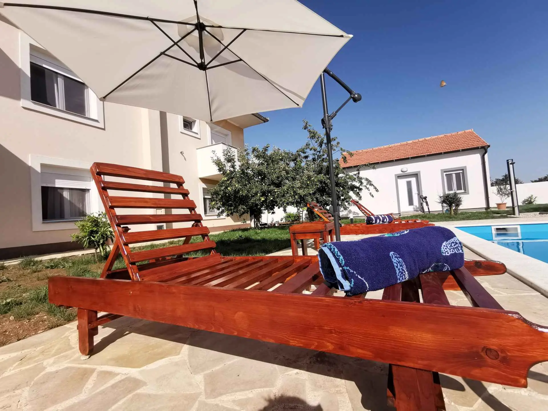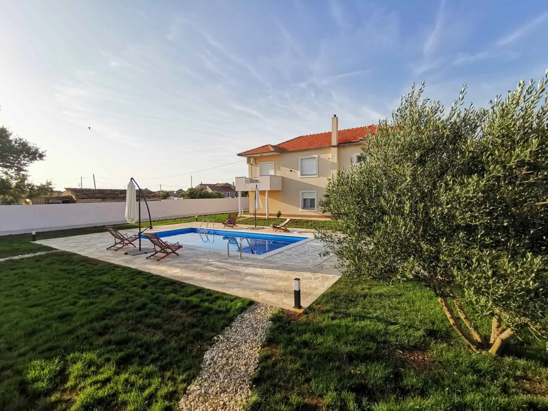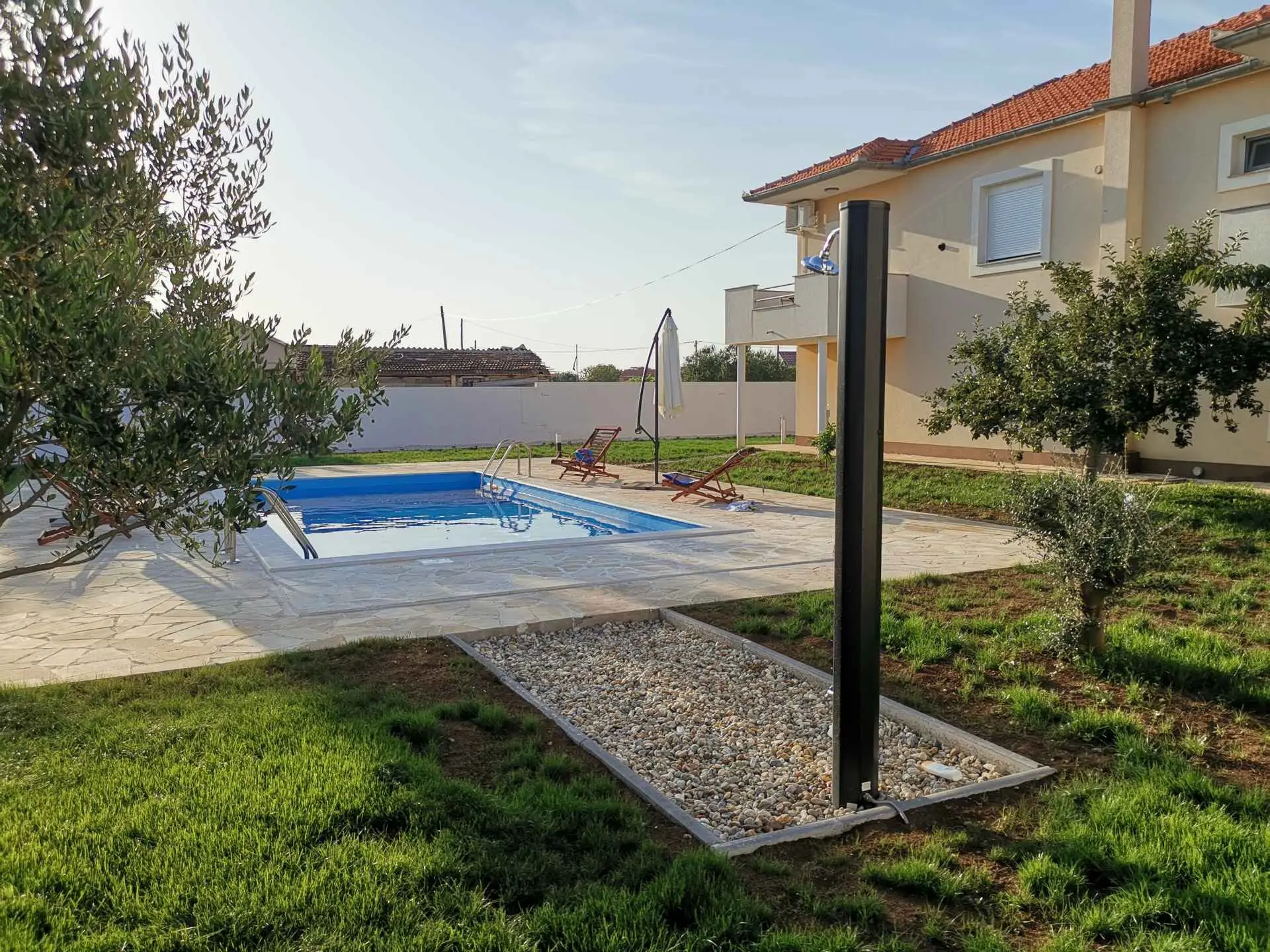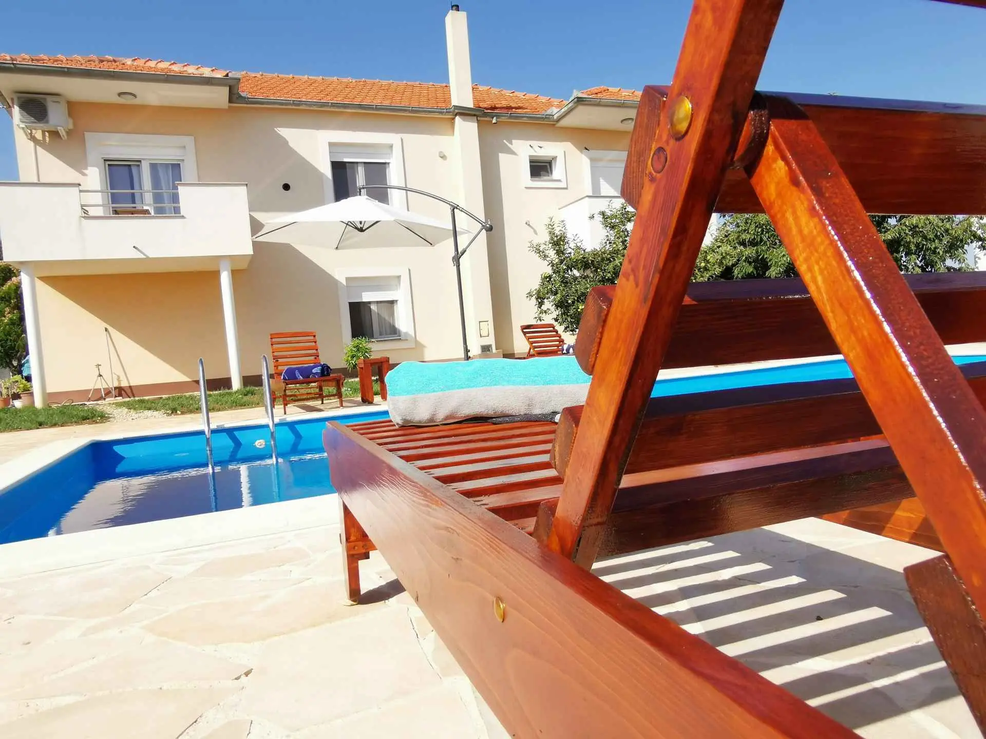 Apartment Amelie s výhledem na bazén nabízí ubytování se sezónním venkovním bazénem, sdíleným loungem a terasou, asi 19 km od přístavu Kornati. Tento apartmán nabízí soukromý bazén, zahradu, gril, bezplatné Wi-Fi a neplacené soukromé parkoviště. Klimatizovaný apartmán se skládá ze 3 ložnic, obývacího pokoje, plně vybavené kuchyně s lednicí a kávovarem a 2 koupelen se sprchou a toaletními potřebami zdarma. V apartmánu jsou k dispozici ručníky a ložní prádlo. Apartmán nabízí 3hvězdičkové ubytování se saunou a dětským hřištěm. Nejbližší letiště je letiště Zadar, 8 km od ubytování.