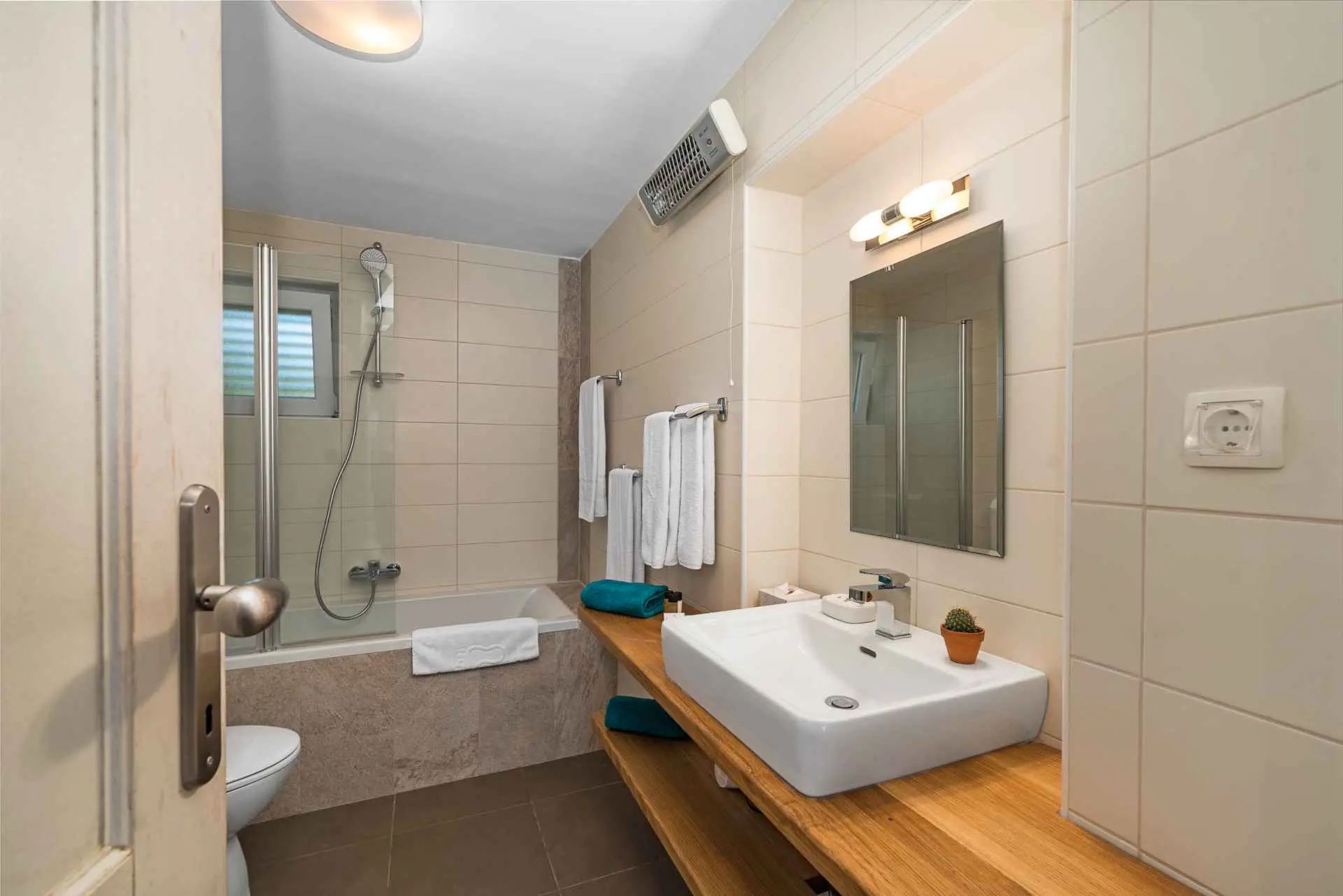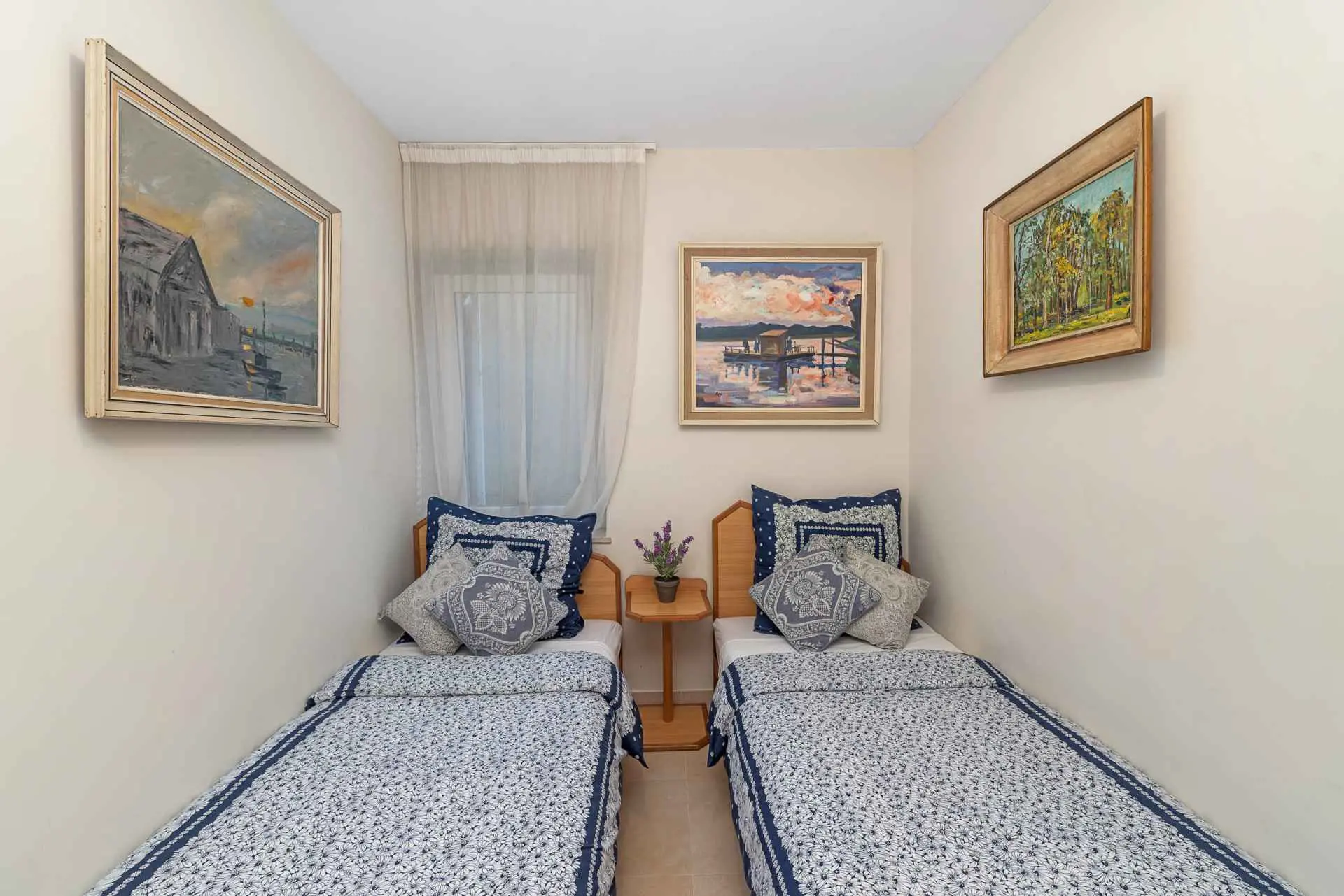 Plážový apartmán Villa Carmen se nachází na pláži, pouhých 10 metrů od moře. S celkem 3 ložnicemi se může ubytovat až 6 dospělých a dvě děti. Plně vybavená kuchyň je propojena s obývacím pokojem a jídelnou. Prostorná terasa se zahradou nabízí výhled na moře, ideální pro užívání si teplých letních dnů ve stínu. Plážový apartmán Villa Carmen nabízí Wi-Fi, klimatizaci a TV s plochou obrazovkou. Kuchyň je vybavena sporákem, troubou, kuchyňským nádobím, rychlovarnou konvicí, myčkou nádobí, lednicí, kávovarem, jídelním stolem a jídelním koutem. Obývací pokoj má TV s plochou obrazovkou a pohovku. K dispozici jsou tři ložnice. První ložnice má jednu velkou manželskou postel, druhá má extra velkou manželskou postel a třetí má dvě samostatné postele. K dispozici jsou dvě koupelny se sprchou, toaletou, fénem a toaletními potřebami. K dispozici je ještě jedna toaleta. K dispozici je pračka a sušička. K dispozici je terasa s venkovním nábytkem a výhledem na moře. V obývacím pokoji a jedné ložnici je TV s plochou obrazovkou. Parkování je zdarma a k dispozici je na místě. Soukromý vchod. Apartmán se nachází v přízemí. Wi-Fi a klimatizace jsou zdarma. Gril je k dispozici a lze jej používat zdarma. Domácí mazlíčci nejsou povoleni. Kouření je povoleno venku. Dětská postýlka a dětská židlička jsou na vyžádání.