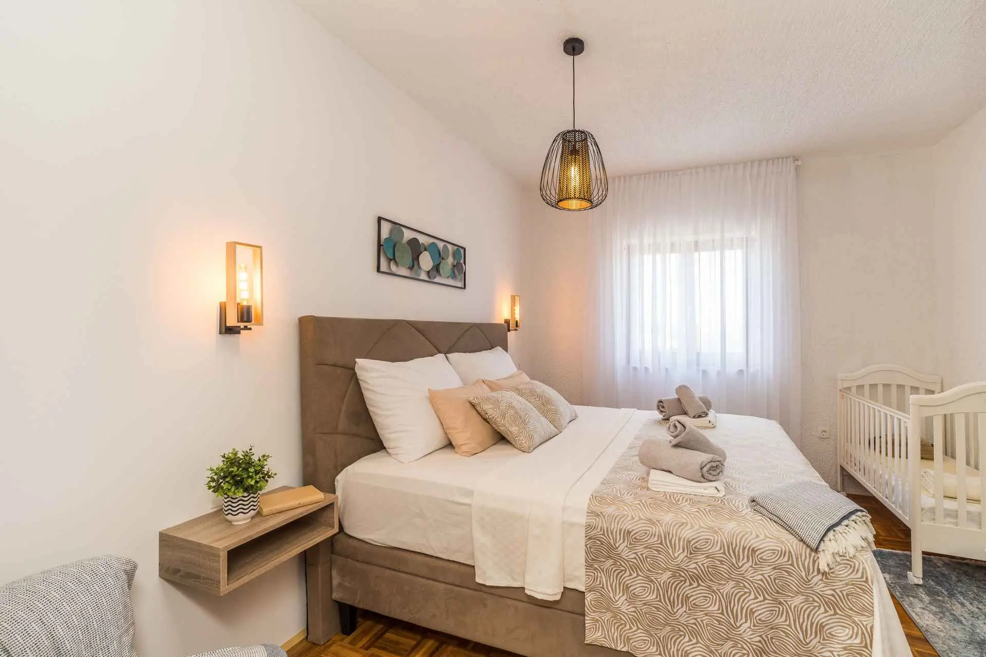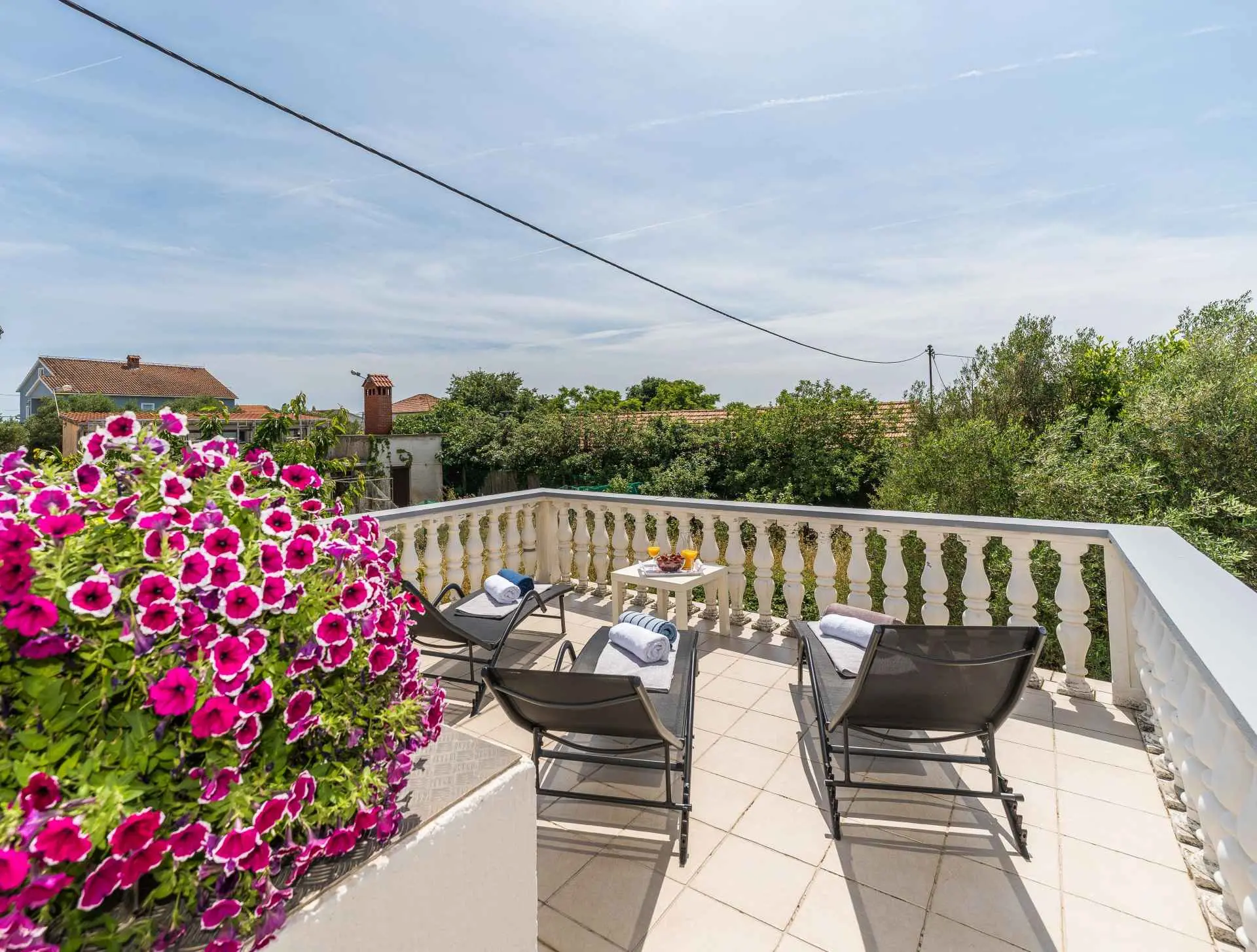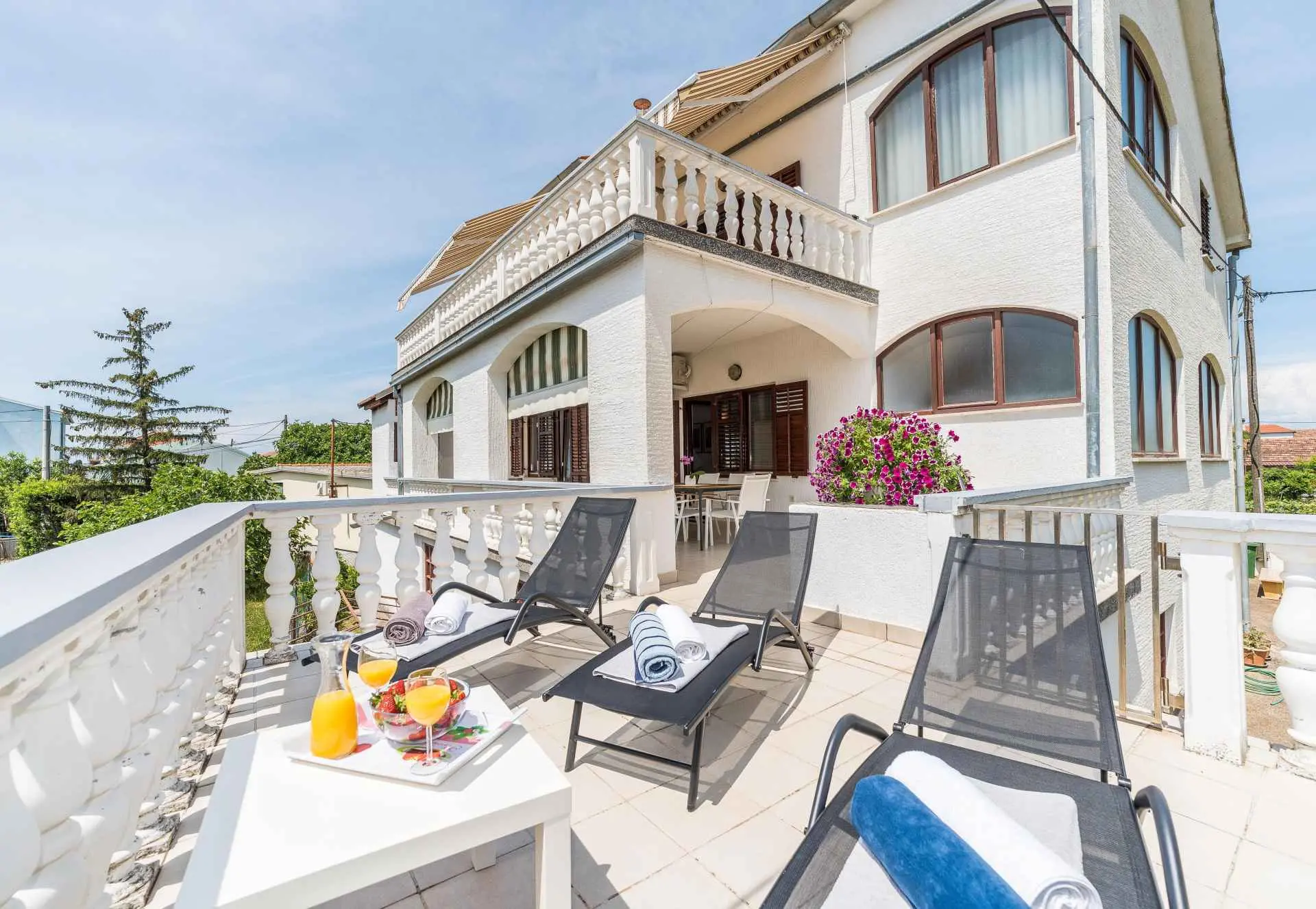 Pouze 7 km od města Zadar a 500 m od hlavní písečné pláže Dječji raj, prostorný 75 m2 + 60 m2 terasa pohodlný a útulný Apartmán Tinel se nachází v klidném prostředí v jedné z hlavních ulic Sukošanu. Skládá se z chodby, obývacího pokoje se 2 rozkládacími pohovkami, kuchyně a jídelny, jedné ložnice, koupelny, prostorné částečně zastřešené terasy, plně vybavené udírny a venkovního nábytku pro pohodlné venkovní posezení a slunění. Terasa je skrytá pohledům a nabízí naprosté soukromí a jedinečný výhled na hvězdnou noční oblohu. Ložnice s luxusní velkou postelí byla vyzdobena a zařízena na vysoké úrovni. K bytu náleží jedno soukromé parkovací místo, smart TV, ambientní osvětlení, bezplatné Wi-Fi a klimatizace. Zdarma poskytujeme dětskou postýlku, vysokou židličku a kočárek.
