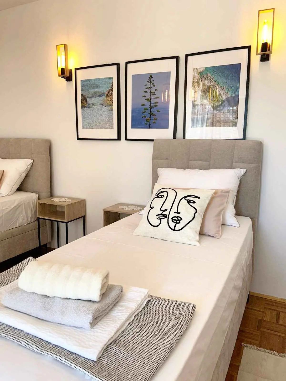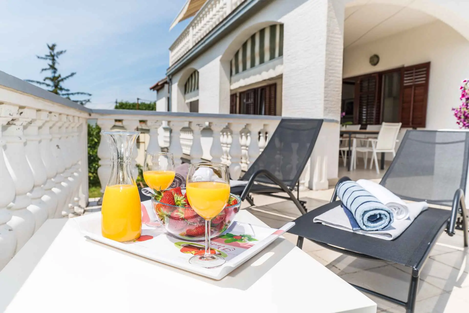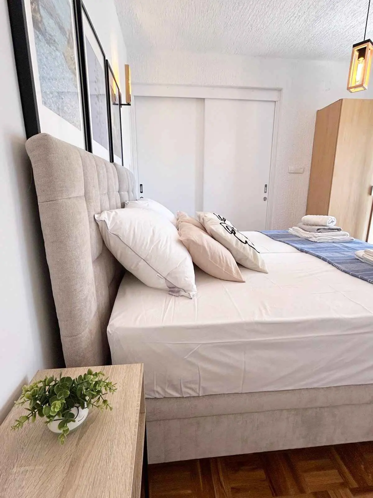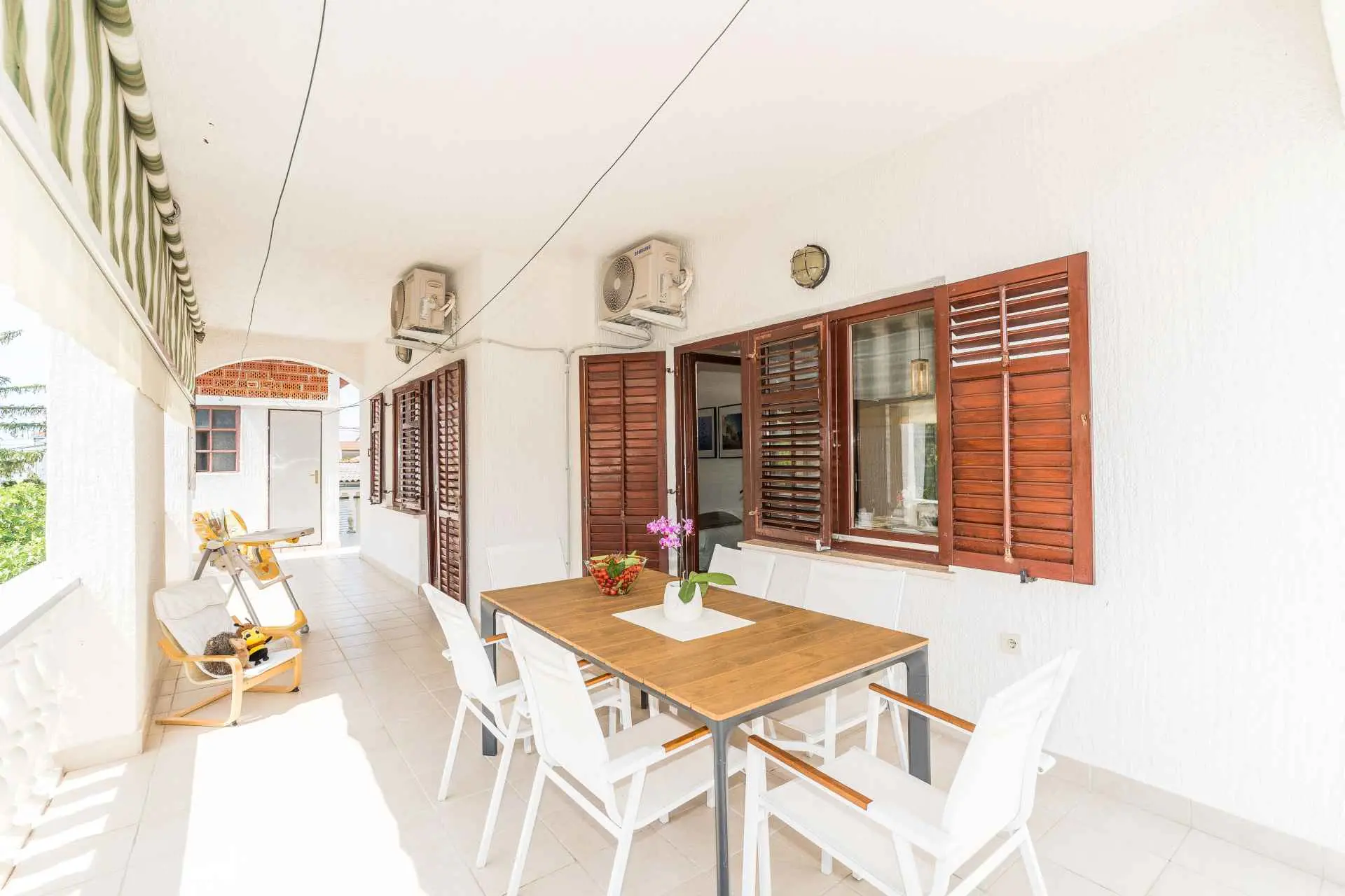 Pouze 7 km od města Zadar a 500 m od hlavní písečné pláže Dječji raj, prostorný 75 m2 + 60 m2 terasa pohodlný a útulný Apartmán Tinel se nachází v klidném prostředí v jedné z hlavních ulic Sukošanu. Skládá se z chodby, obývacího pokoje se 2 rozkládacími pohovkami, kuchyně a jídelny, jedné ložnice, koupelny, prostorné částečně zastřešené terasy, plně vybavené udírny a venkovního nábytku pro pohodlné venkovní posezení a slunění. Terasa je skrytá pohledům a nabízí naprosté soukromí a jedinečný výhled na hvězdnou noční oblohu. Ložnice s luxusní velkou postelí byla vyzdobena a zařízena na vysoké úrovni. K bytu náleží jedno soukromé parkovací místo, smart TV, ambientní osvětlení, bezplatné Wi-Fi a klimatizace. Zdarma poskytujeme dětskou postýlku, vysokou židličku a kočárek.