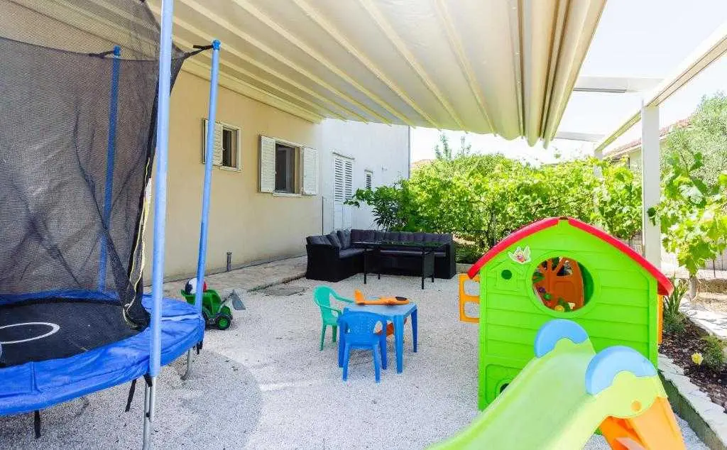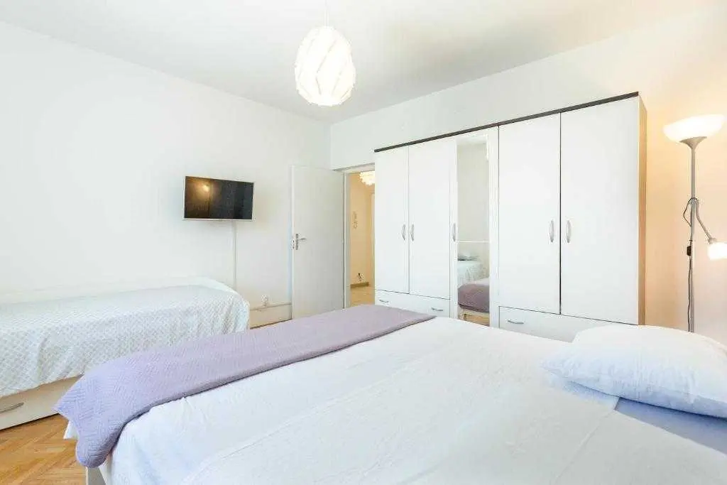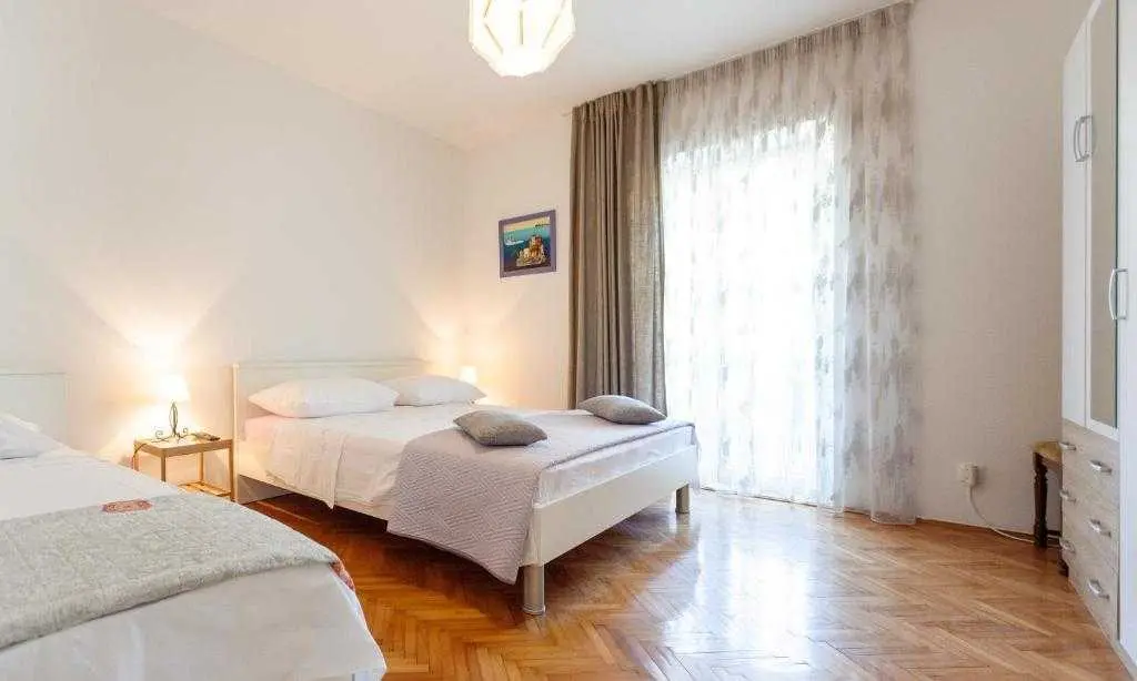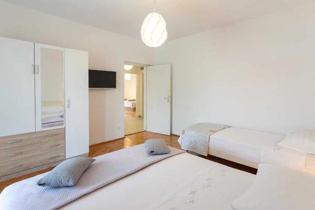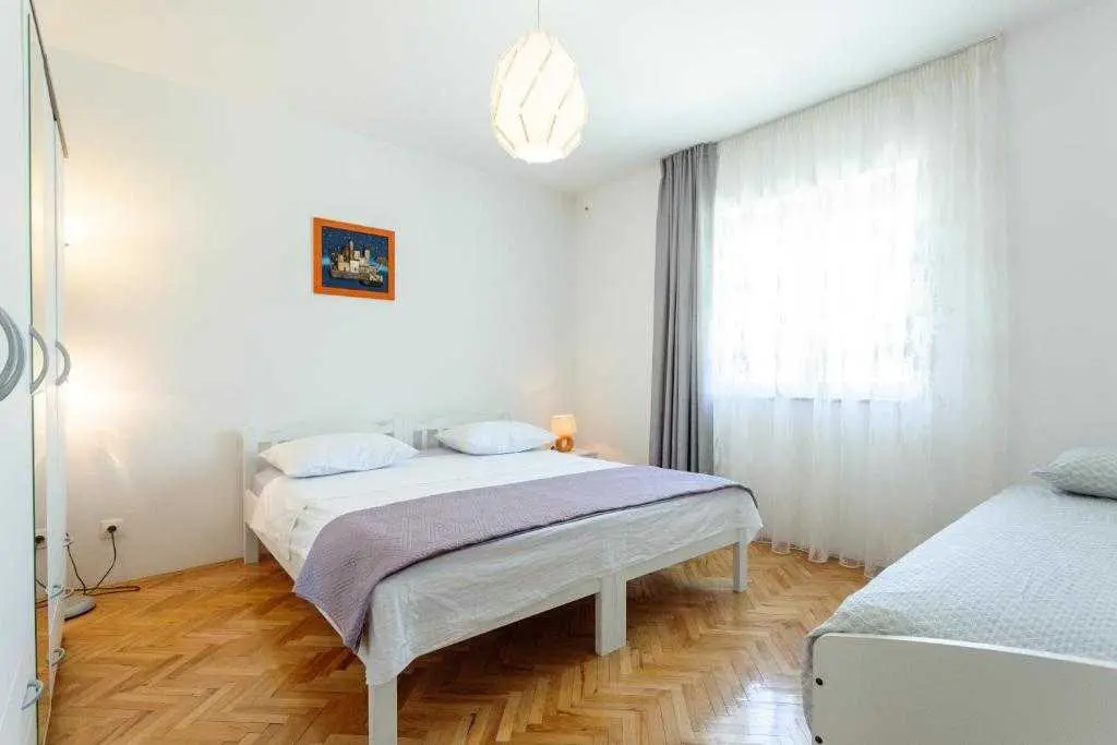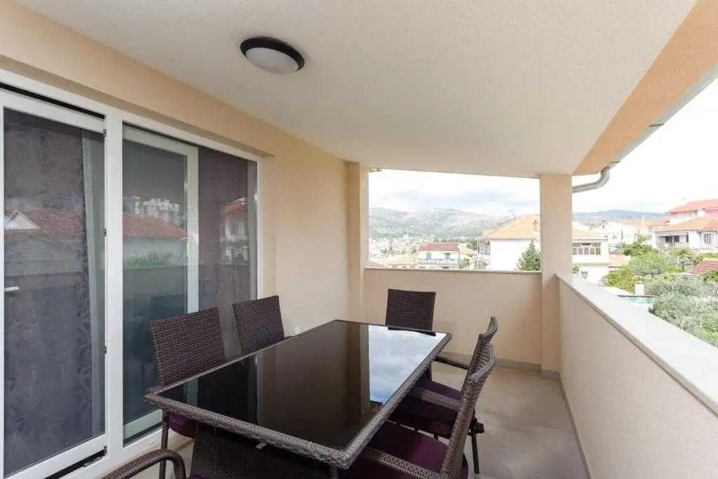 Nově zrekonstruovaný byt 3 ložnice, 2 koupelny, novou kuchyňskou linkou a spotřebiči, dva balkony s sedacího nábytku pro 10 osob. Ubytovací kapacitou 6-10 osob. V areálu se nachází 5 minut chůze od centra Trogiru s krásným výhledem na Trogir. Nový, jen postavený objekt, izolace v budově 8 cm, nová plastová okna. V blízkosti pláže, diskotéka Monaco, pekárny, restaurace - 3 minuty pěšky. Skladovat v blízkosti 50 metrů. Bezplatné parkování.