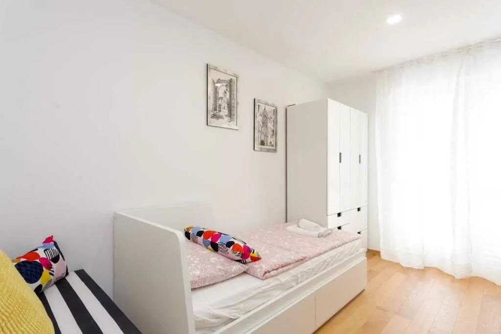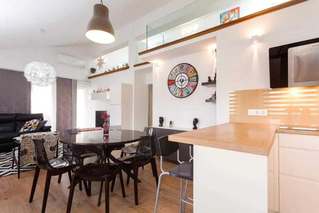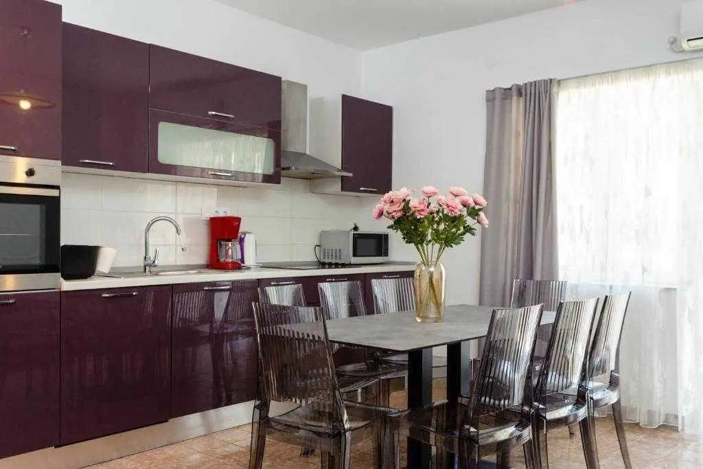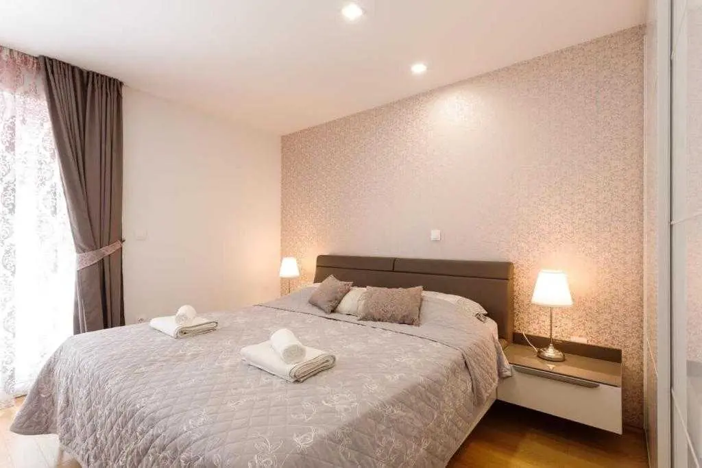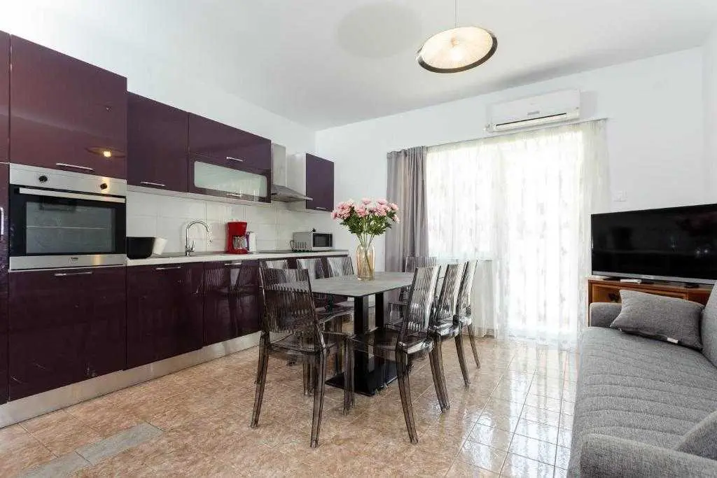 Nově zrekonstruovaný byt 3 ložnice, 2 koupelny, novou kuchyňskou linkou a spotřebiči, dva balkony s sedacího nábytku pro 10 osob. Ubytovací kapacitou 6-10 osob. V areálu se nachází 5 minut chůze od centra Trogiru s krásným výhledem na Trogir. Nový, jen postavený objekt, izolace v budově 8 cm, nová plastová okna. V blízkosti pláže, diskotéka Monaco, pekárny, restaurace - 3 minuty pěšky. Skladovat v blízkosti 50 metrů. Bezplatné parkování.
