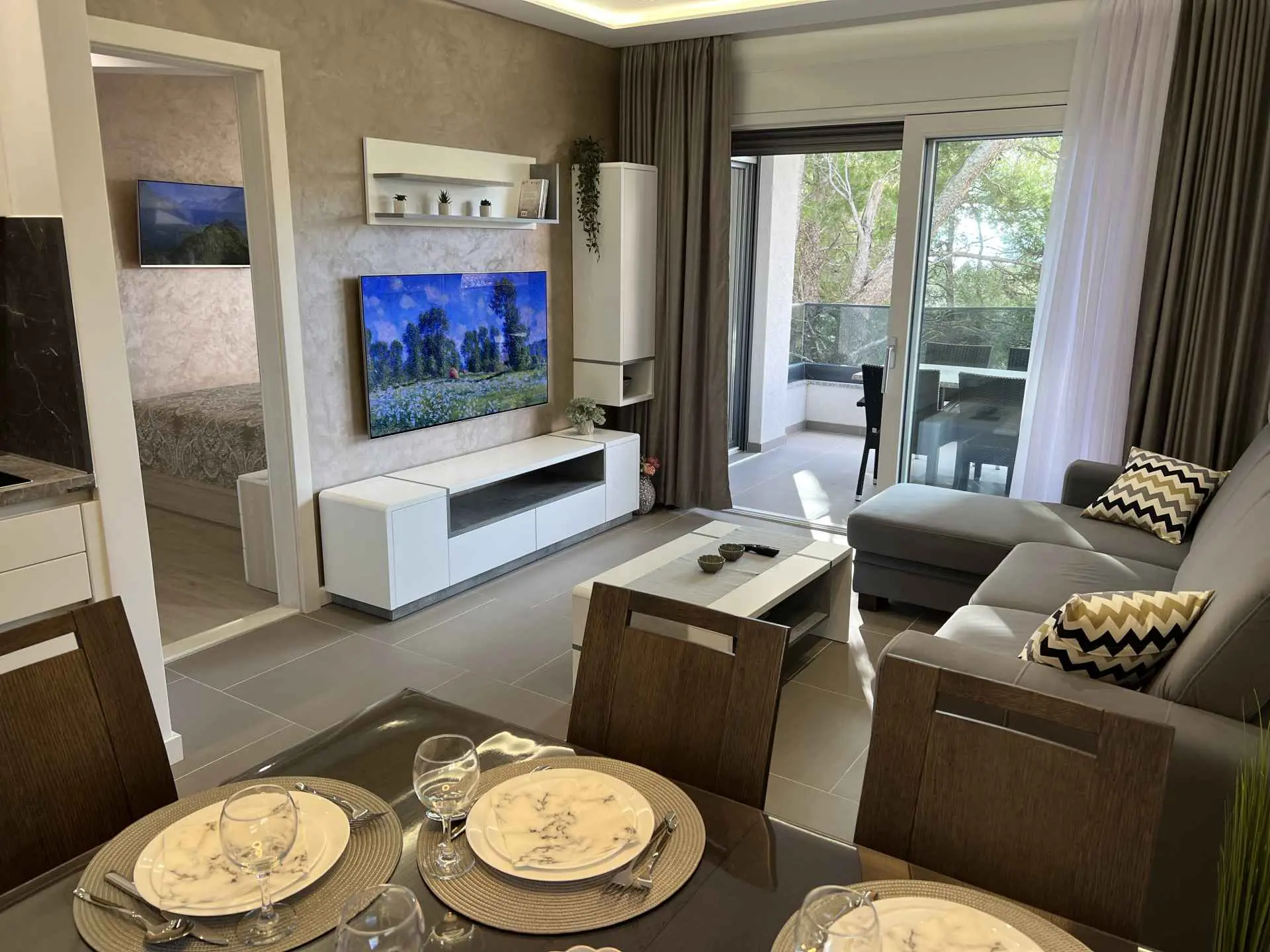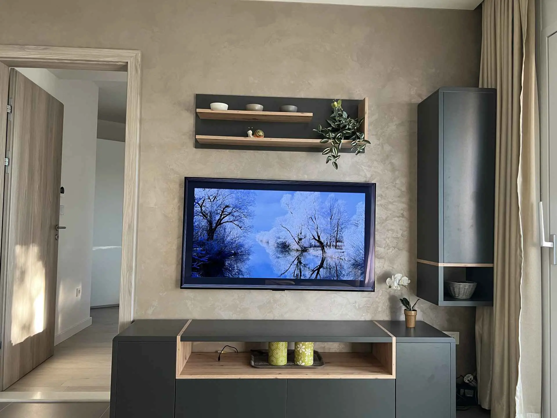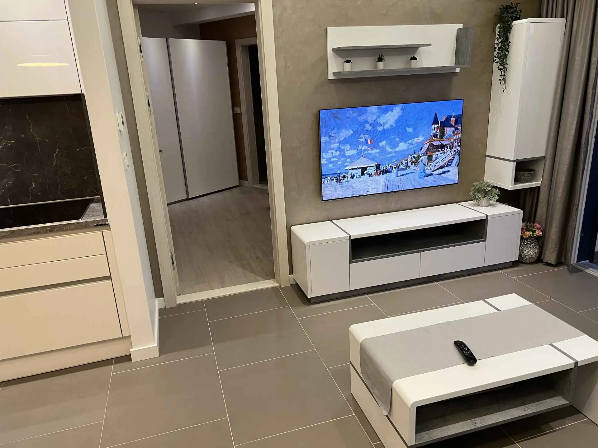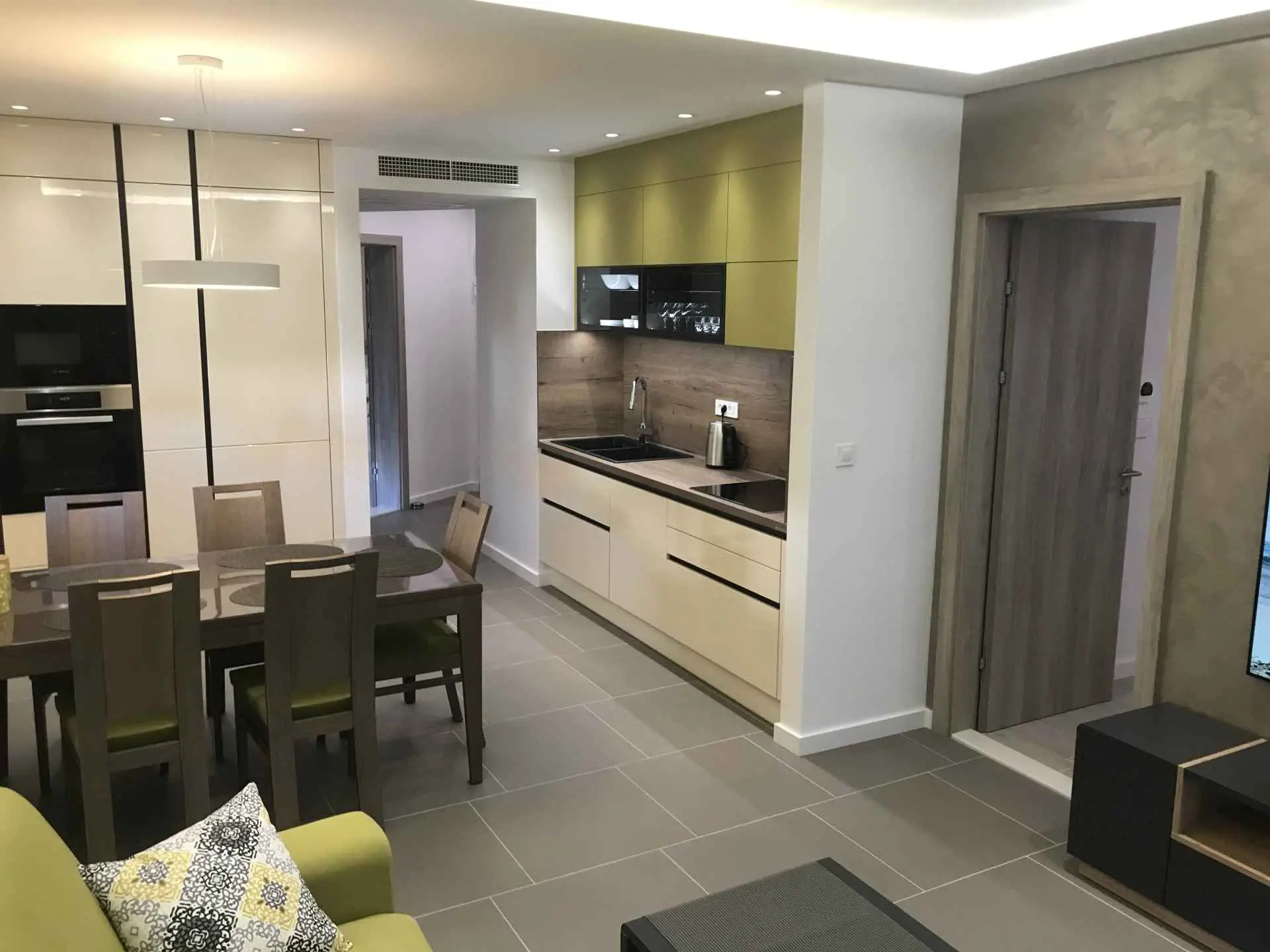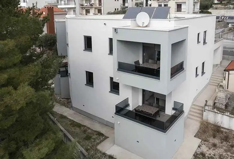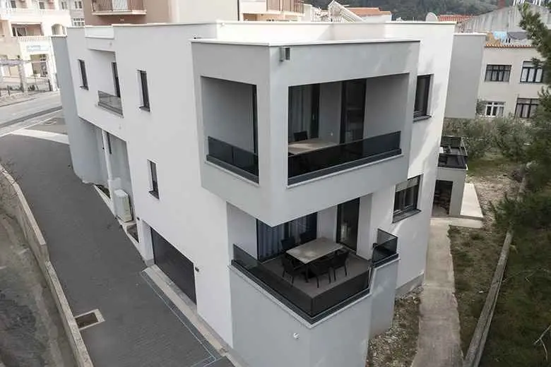 Novostavba, dům s dobře vybavenými byty a parkováním v podzemní garáži. Vedle domu vede pěší cesta na pláž.