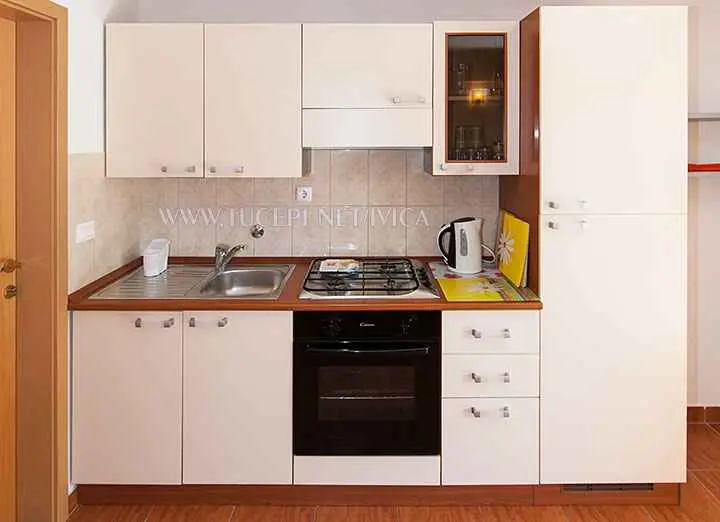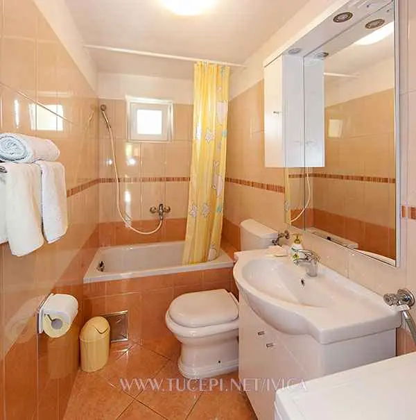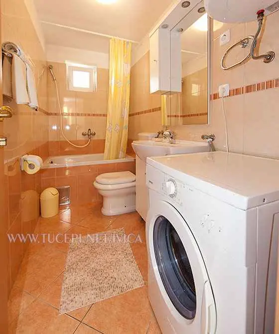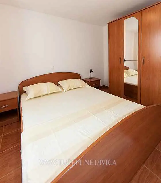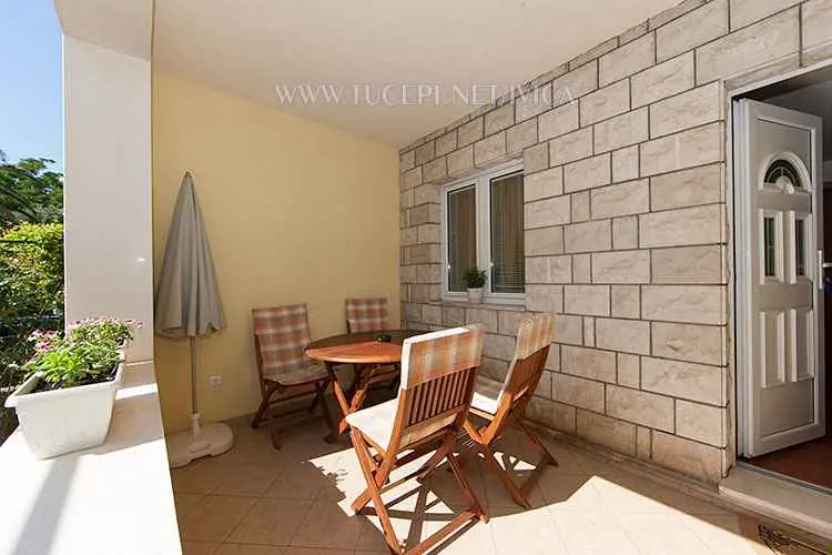 Náš apartmán A2+2 se nachází v přízemí domu. Obsahuje pokoj, přistýlku pro jednu nebo dvě osoby (děti). V koupelně je pračka, máte verandu, kde je jídelní stůl. Výhodou tohoto bytu je, že je blízko centra a pláže. Parkování je u domu.