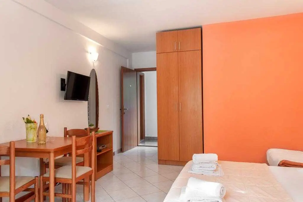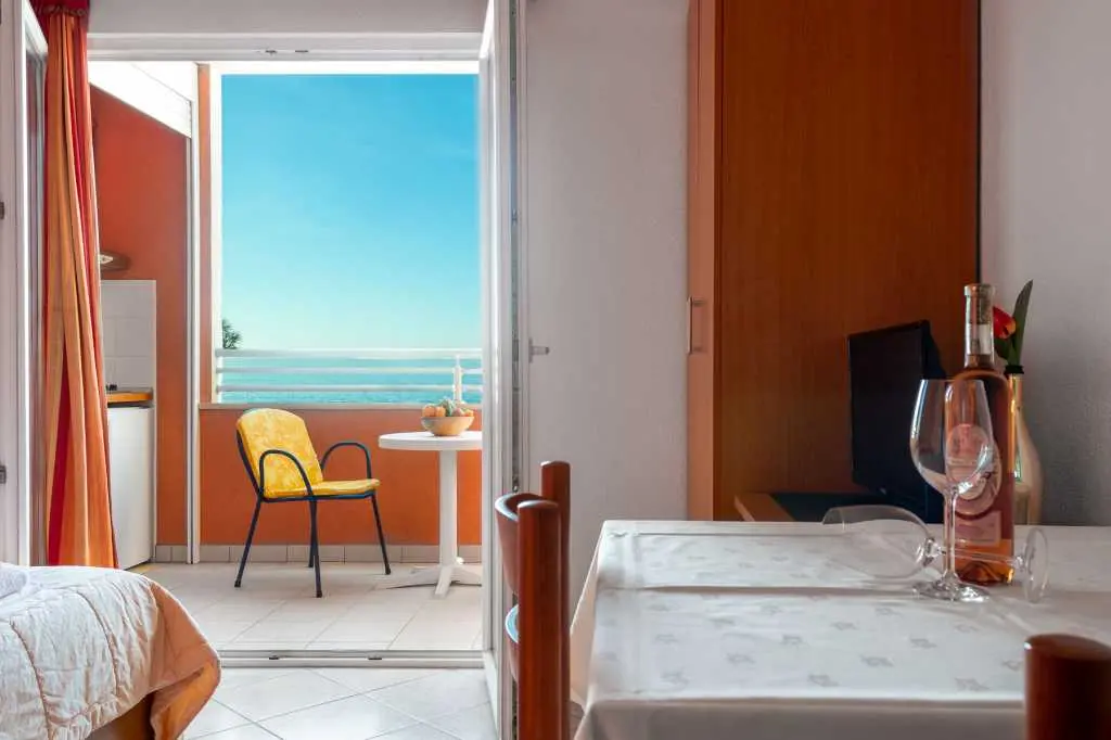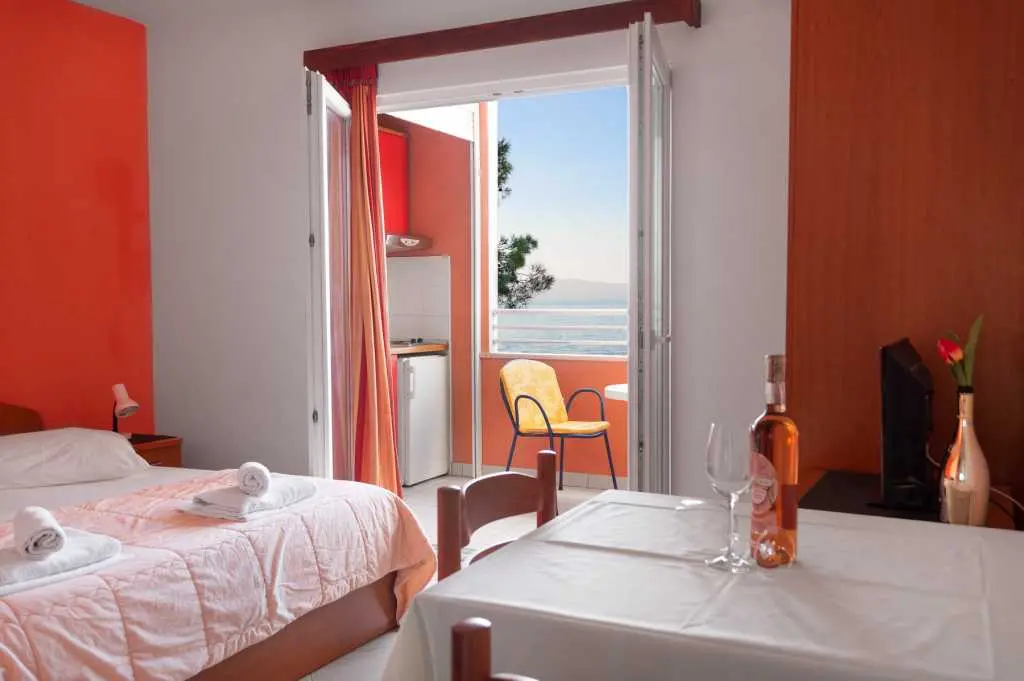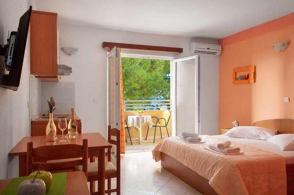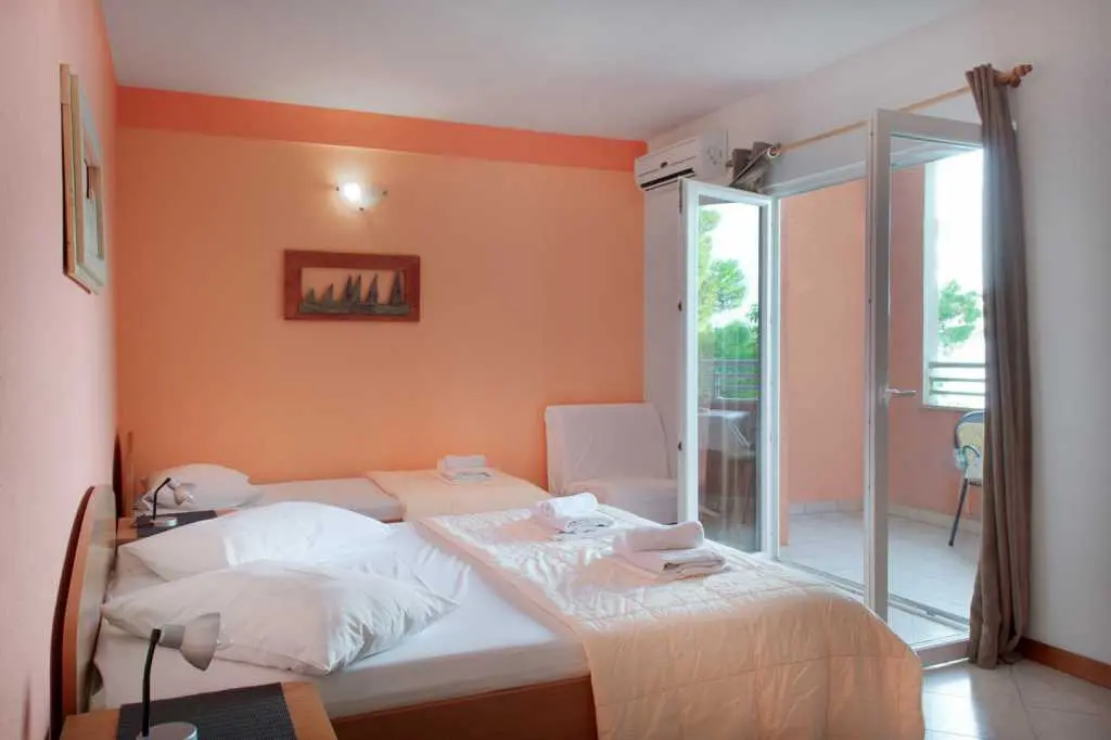 Toto zařízení se nachází na jedné z nejlepších pláží v regionu. V prvním a druhém patře domu je 8 bytů k pronájmu. Všechny mají jižně orientované balkony se sedacím nábytkem. Každý apartmán má vybavenou kuchyň, mikrovlnnou troubu, varnou konvici, klimatizaci, bezplatné Wi-Fi a parkoviště. Chcete-li zobrazit ceny pro požadované termíny, klikněte prosím na tlačítko "Ceník".