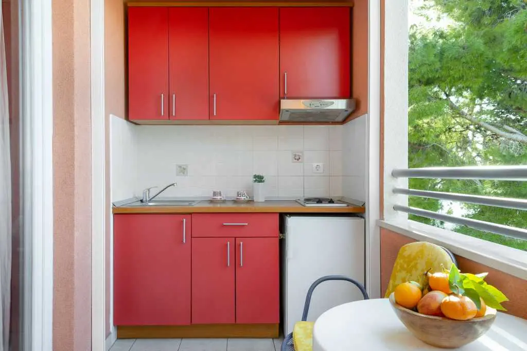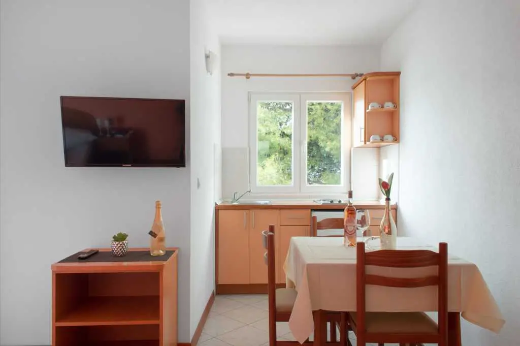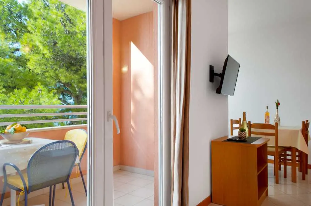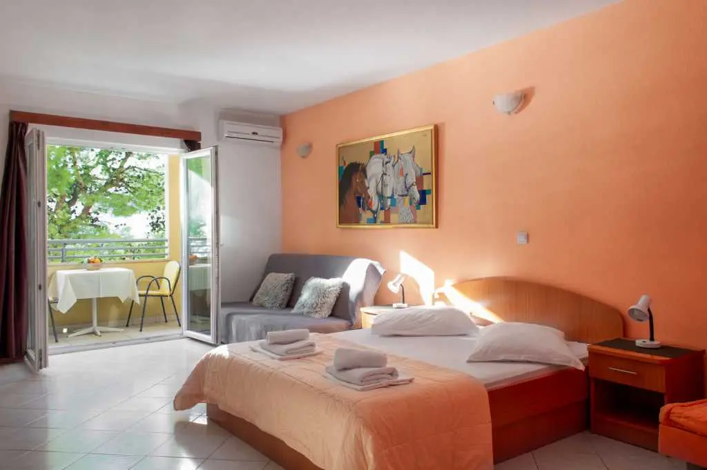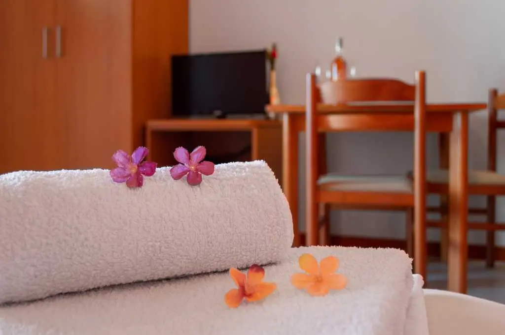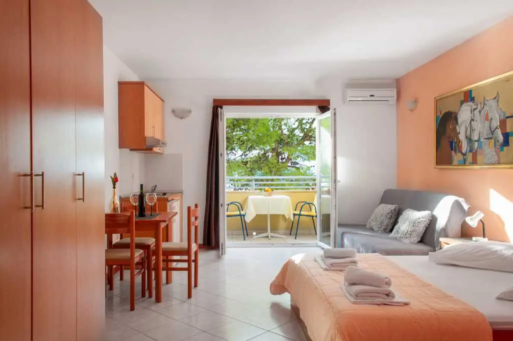 Toto zařízení se nachází na jedné z nejlepších pláží v regionu. V prvním a druhém patře domu je 8 bytů k pronájmu. Všechny mají jižně orientované balkony se sedacím nábytkem. Každý apartmán má vybavenou kuchyň, mikrovlnnou troubu, varnou konvici, klimatizaci, bezplatné Wi-Fi a parkoviště. Chcete-li zobrazit ceny pro požadované termíny, klikněte prosím na tlačítko "Ceník".