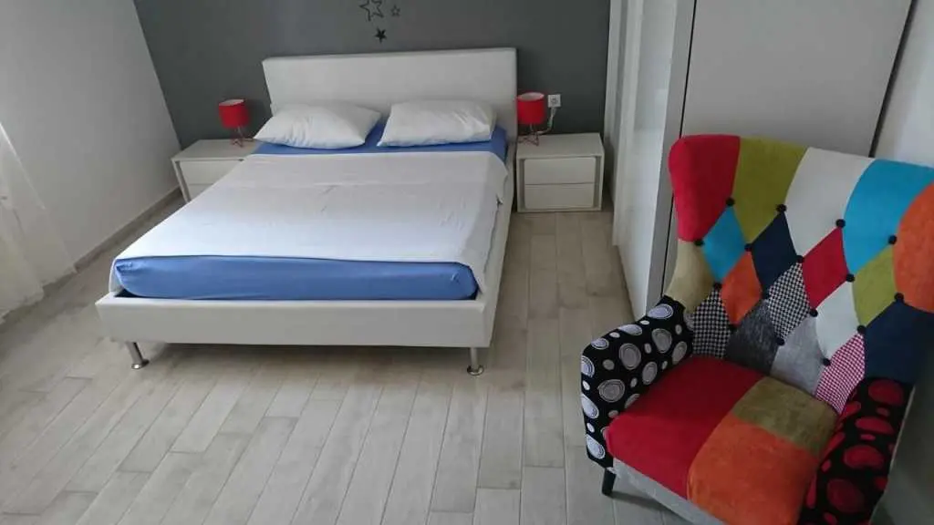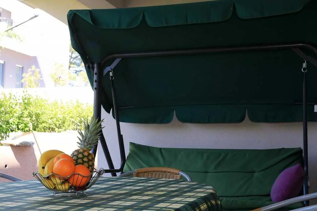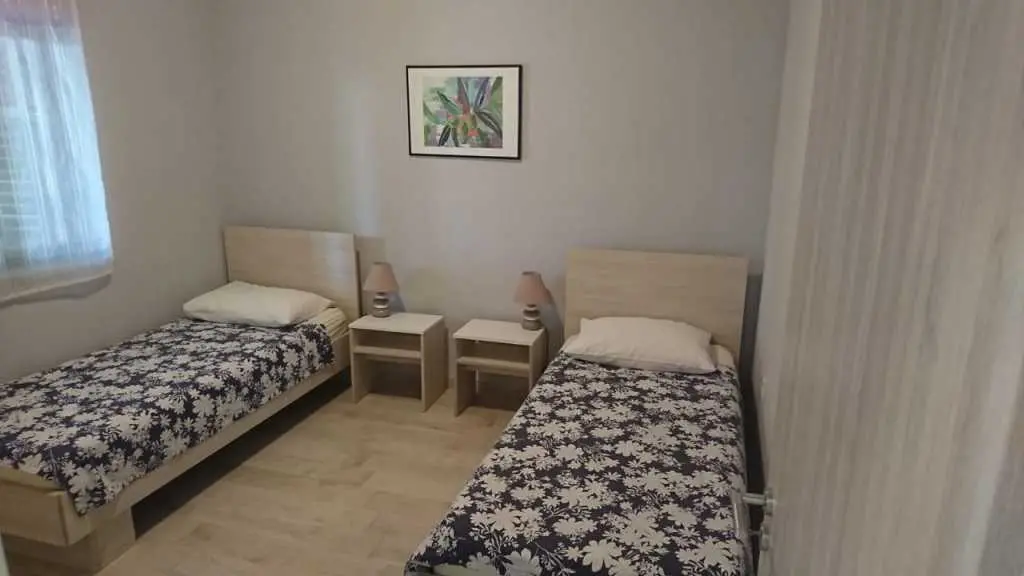 Soldo Byt se nachází v rodinném domě v atraktivním letovisku Zadar - Borik. Klimatizovaný apartmán se skládá ze dvou prostorných pokojů, z nichž jeden je dvoulůžkový s dvěma samostatnými lůžky a druhý triple s dvojlůžkem a jednou přistýlkou, kuchyň s jídelnou, koupelna s vanou a velkou terasu se stolem pro 6 osob a zahradní houpačka - sofa. Nabízíme velkou společnou terasu s grilem. Kuchyň je vybavena tímto zařízením: elektrický sporák s dvěma deskami, lednička, mikrovlnná trouba, kávovar, nádobí a kuchyňské čisticí prostředky. Ložní prádlo se mění jednou týdně, existují dva ručníky pro každou osobu a týden. Předpokladu, že jsou dva volné parkovací místa před domem. Domácí zvířata jsou povolena. Po příjezdu budete uvítáni majitele apartmány a nabídne vám všechny informace, které zpříjemnit pobyt v naší oblasti.