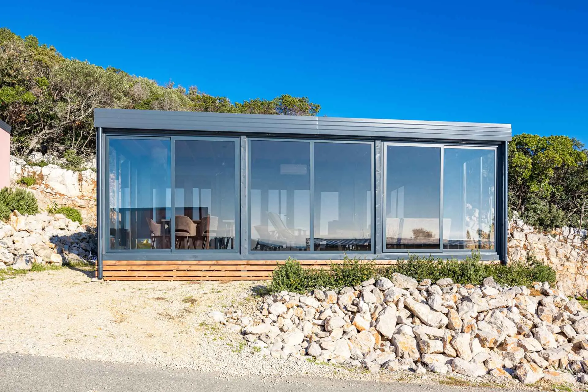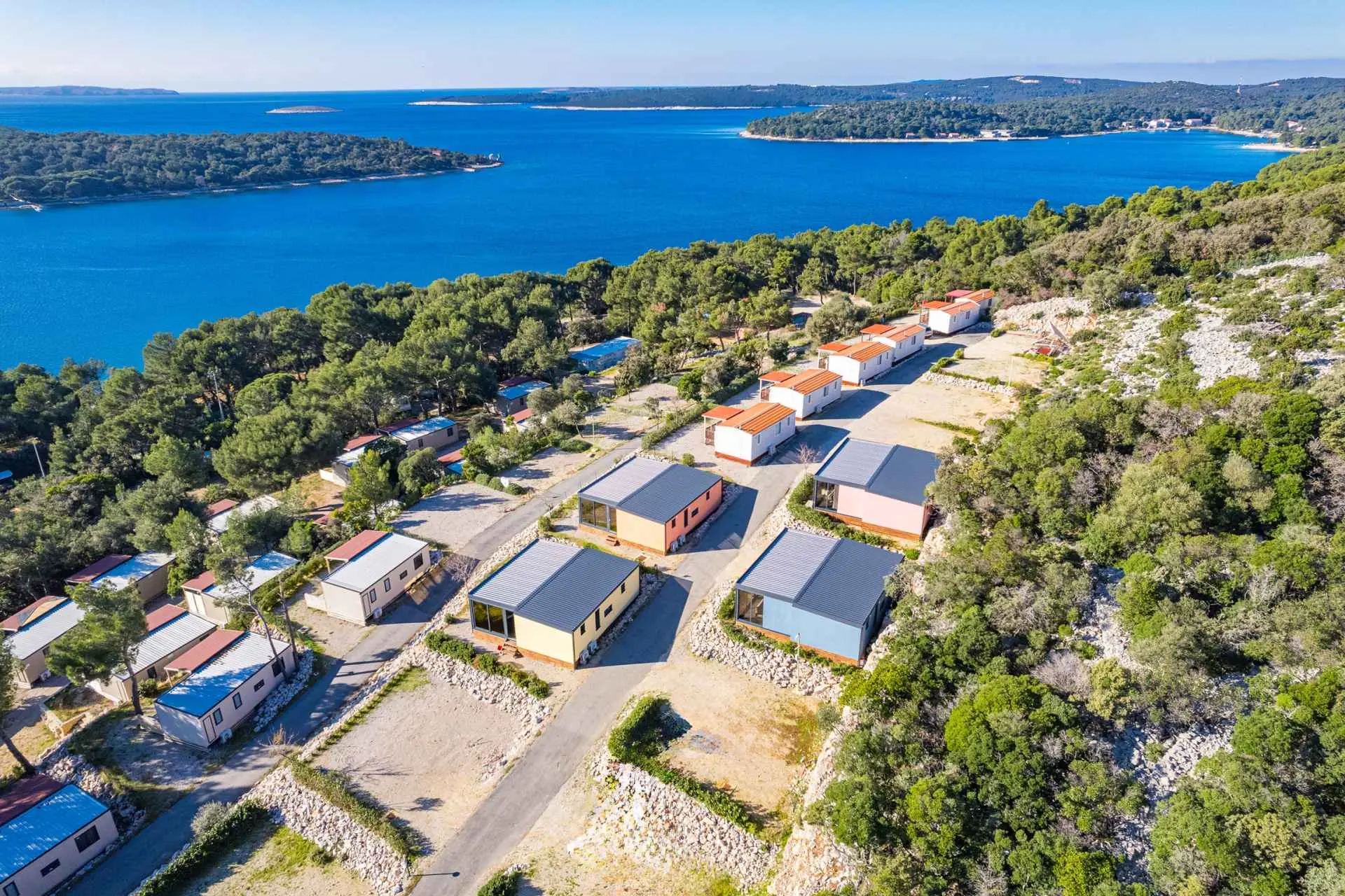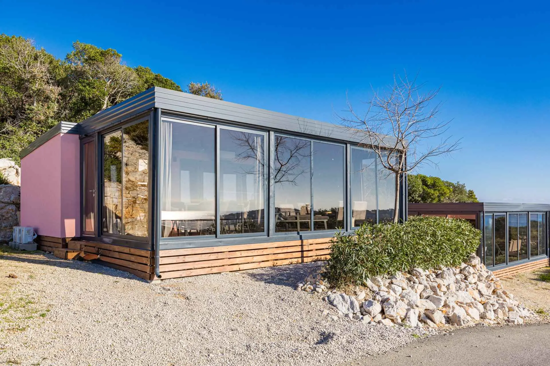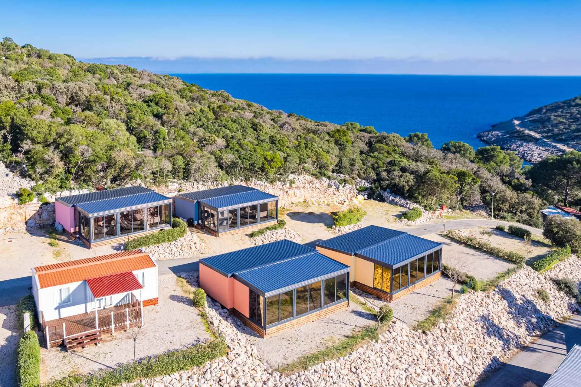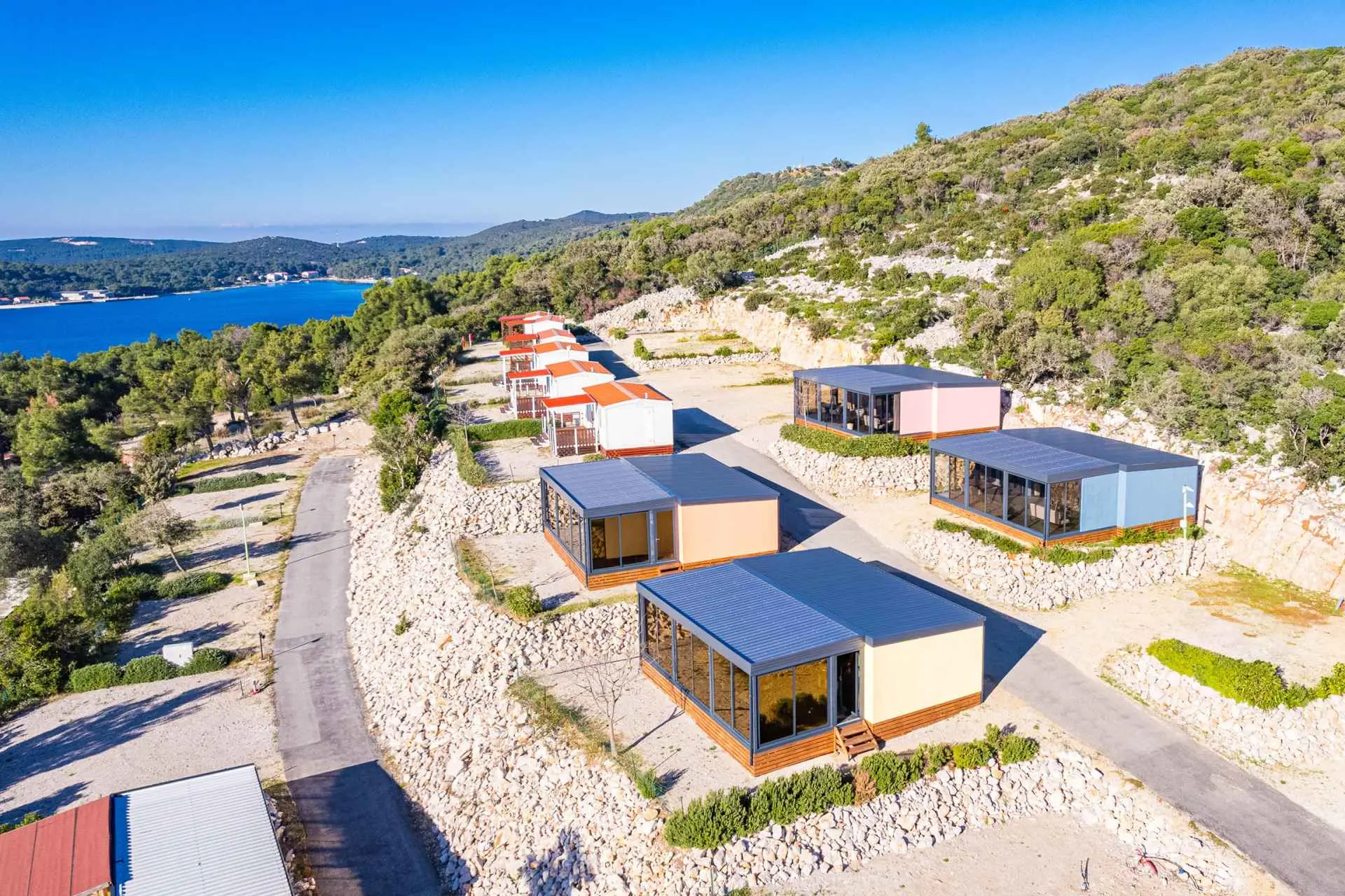 Přijďte a užijte si luxusní dovolenou v krásném prázdninovém domě Kasthouse Luxury Mobile Homes, který se nachází v Mali Lošinj v Kvarnerském zálivu. Nemovitost se skládá ze 4 samostatných mobilních domů. Každý mobilní dům může ubytovat až 5 hostů na 80 metrech čtverečních obytné plochy se 2 ložnicemi a 1 koupelnou. Kasthouse je vybaven veškerým moderním vybavením, které potřebujete pro perfektní dovolenou, včetně parkovacího místa, zasklené terasy, klimatizace, mikrovlnné trouby, rychlovarné konvice, ložního prádla, TV, fénu a možnosti dlouhodobého pronájmu. Dům je určen pouze pro nekuřáky. Užijte si krásný venkovní prostor s terasou obklopenou zelení, kde můžete trávit čas relaxací s okouzlujícím výhledem na moře. Interiér domu dýchá teplem a pohodlím a obývací pokoj, který se otevírá na terasu, dodává prostoru pocit prostornosti.