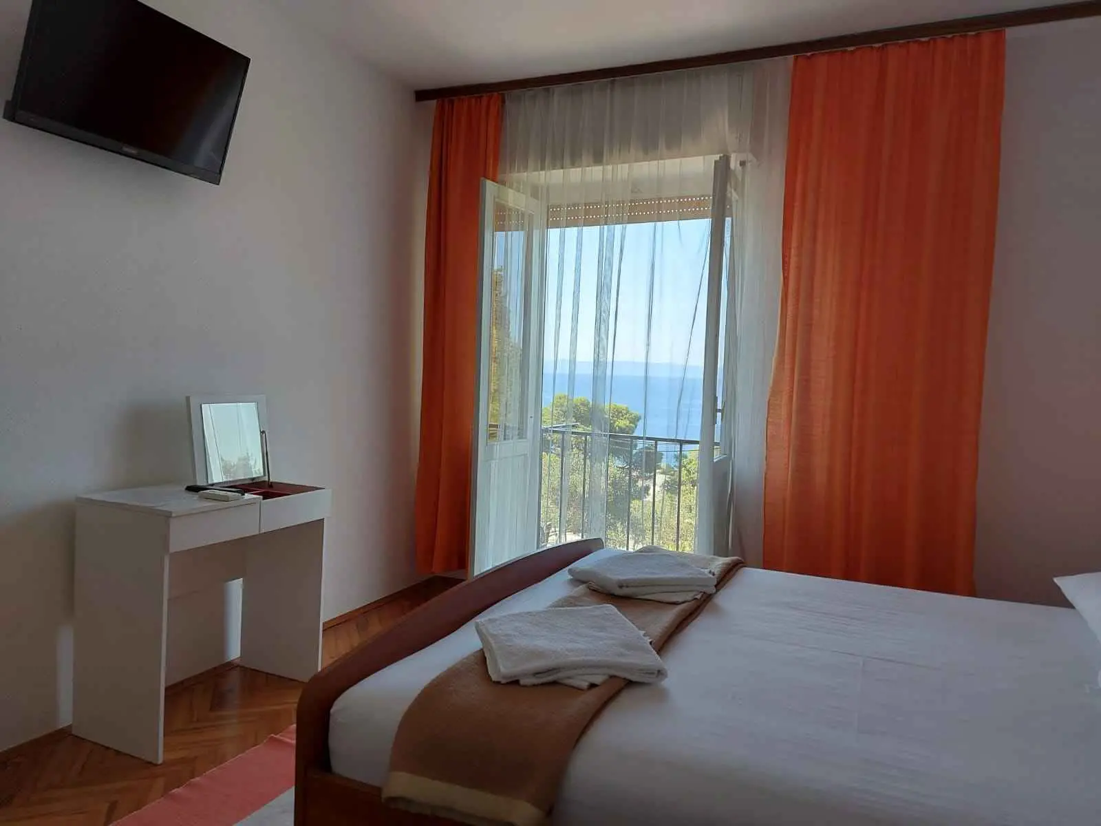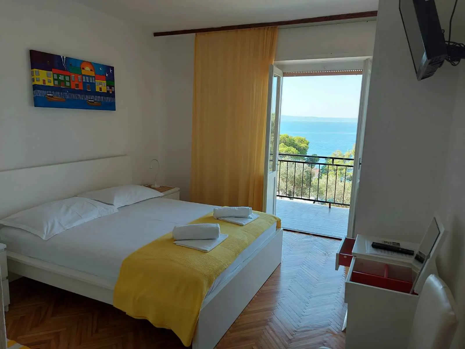 Pokoje Sodan se nacházejí v oblasti Brela zvané Soline. Dům k pronájmu má 5 pokojů, velký obývací pokoj cca 25 m2, kuchyň cca 16 m2 a velkou terasu cca 40 m2. Všechny pokoje mají vlastní sociální zařízení, LED SAT TV 82 cm, klimatizaci a rychlou WIFI s neomezeným provozem. Všechny pokoje mají manželské postele a dům pojme 10 osob. Kuchyňku můžete využít k přípravě snídaní a minutek. V tom případě budete mít svůj vlastní stůl na společné terase s výhledem na moře. Pokoje Sodan se nacházejí 50 metrů od krásné oblázkové pláže, jak můžete vidět na přiložených obrázcích. Pokoje Sodan je 5-10 minut chůze od centra Brely a 10-15 minut chůze od centra Baška Voda. Supermarket je 15 metrů od domu. V obývacím pokoji je TV se satelitním příjmem. Pro podrobnější informace nás kontaktujte e-mailem.