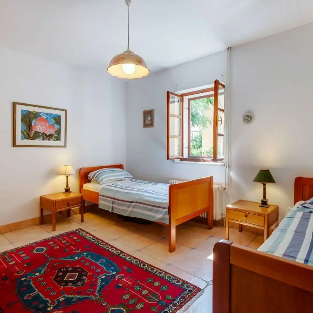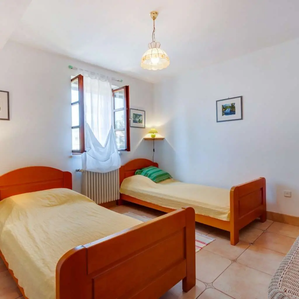 Navštivte náš krásný dvoupatrový rodinný dům je obklopen prostornou zahradou. Ideální pro dvě rodiny s dětmi nebo skupinu přátel. Spaceinterior: 6-pokojový dům 180 m2 na 3 podlažích, jihozápadní orientace: velký obývací pokoj / jídelna 55 m2 s otevřeným ohniště a satelitní TV. Vstup na terasu. Otevřená kuchyně (4 plotýnky, trouba, myčka, mraznička). Vstup na terasu. Září WC. V horním patře: obývací pokoj se satelitní TV a klimatizací. Vstup na terasu. 1x pokoj, 2x lůžko (90 cm, v délce 200 cm). Sprcha / WC. Ve 2. patře: 1x pokoj, 1x francouzské lůžko (2 x 90 cm, v délce 200 cm). 2x pokoj, v kazdem pokoji 2x lůžko (90 cm, v délce 200 cm). Koupelna / WC. Terasa 8 m2. Zahradní nábytek, lehátka. Vybavení: internet (Wi-Fi, zdarma). stavba a venku: Single-rodinný dům Dům Lana, 3-podlažní, obklopen stromy. V centru obce Osor 20 km od centra města Mali Lošinj, 35 km od centra města Cres, 150 m od moře, 150 m od pláže. Soukromý: vlastnost 400 m2 (oplocený) s trávníkem 100 m2, Přírodní zahrada. Venkovní sprcha, stolní tenis, pergola (40 m2), terasa (50 m2), zahradní nábytek, gril. V domě: přístup na internet, pračka. Dům se nachází v krásném městečku s velmi dlouhou historií, Osor, na jižním cípu ostrova Cres. Užijte si teplé letní večery, zahrát si stolní tenis a grilování na zahradě, nebo jen relaxovat v jednom z měst dvě pláže pouhých 50 metrů. Vše, co potřebujete, je tak blízko, trhy, restaurace, pizzerie, kavárny, obchod se suvenýry ... Cres ostrov je plná úžasných památek a zajímavých míst k návštěvě, o kterých budeme rádi informovat. Interakce s hosty. Jen přes ulici, tam je milá dáma Dragica, kteří vám ochotně pomohou s jakýmikoliv požadavky a tipy. Ostatní věci Poznámka: Dům je velmi vhodný pro domácí vaření, s prostornou kuchyní, troubou, lednicí a mrazákem, kávovarem a myčkou a výběr z aromatických bylin rostoucích těsně mimo kuchyňského okna. K dispozici je wi-fi připojení k dispozici v celém domě, dva televizory se satelitním přijímači, dva obývací pokoje (jeden s krbem pro ty chladnějších nocí), čtyři ložnice, dvě plně vybavené koupelny, menší třetí jeden s pračkou a další solární sprcha v zahradě.