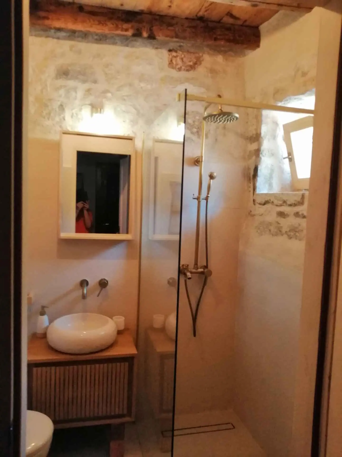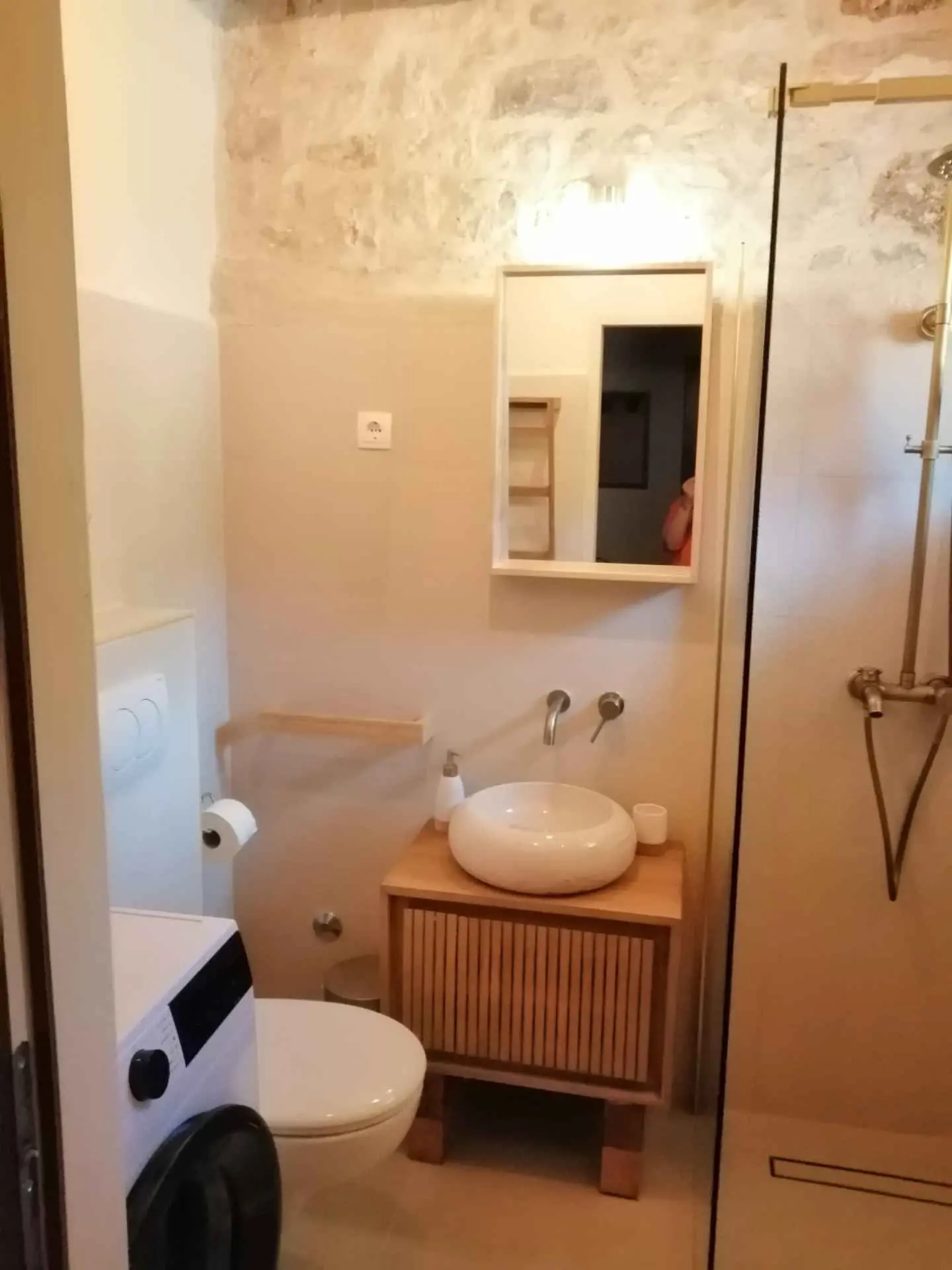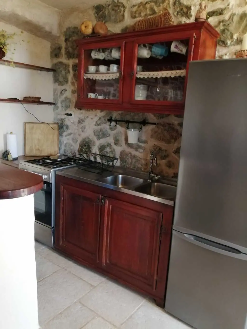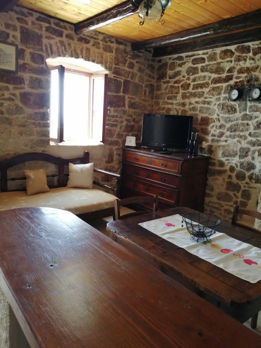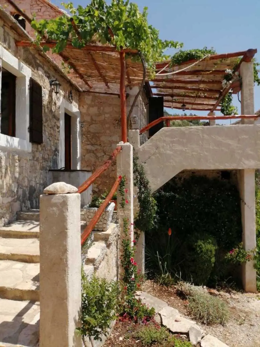 Prázdninový autentický kamenný dům v Gromin Dolac - ostrov Hvar Pokud chcete strávit svou dovolenou daleko od hluku a davů a chcete si opravdu odpočinout, navštivte Gromin Dolac v našem autentickém tradičním kamenném domě. Gromin Dolac je osada na jižní straně ostrova Hvar bez stálých obyvatel, pod níž je několik pláží s dokonale čistým modrým mořem. Gromin Dolac je jen 3 km štěrkové cesty daleko od větší turistické osady Zavala, kde najdete malý obchod a několik restaurací. Do Zavaly se dostanete malým tunelem z vesnice Pitve. Gromin Dolac se zároveň nachází uprostřed ostrova jako dobrá základna k prozkoumání celého ostrova. Náš autentický kamenný dům je starý více než sto let, ale byl zrekonstruován, aby uspokojil moderní bydlení s použitím pouze přírodních materiálů. Byl zařízen v rustikálním stylu. Dům se skládá z kuchyně s jídelnou a obývacího pokoje s krbem ve stejném prostoru, dvou ložnic, chodby, koupelny se sprchovým koutem a úložného prostoru. Před domem je velká terasa s krásným výhledem na moře na ostrovy Ščedro, Korčula a poloostrov Pelješac, parkovací místo a terasa. Za domem je umístěn gril zrekonstruovaný z původní chlebové pece z minulosti. Je vhodný pro jednu rodinu s dětmi a ubytuje 4-5 osob. Potřebujete pouze 5 min. příjemná procházka na nejbližší pláž s dokonale čistým mořem.