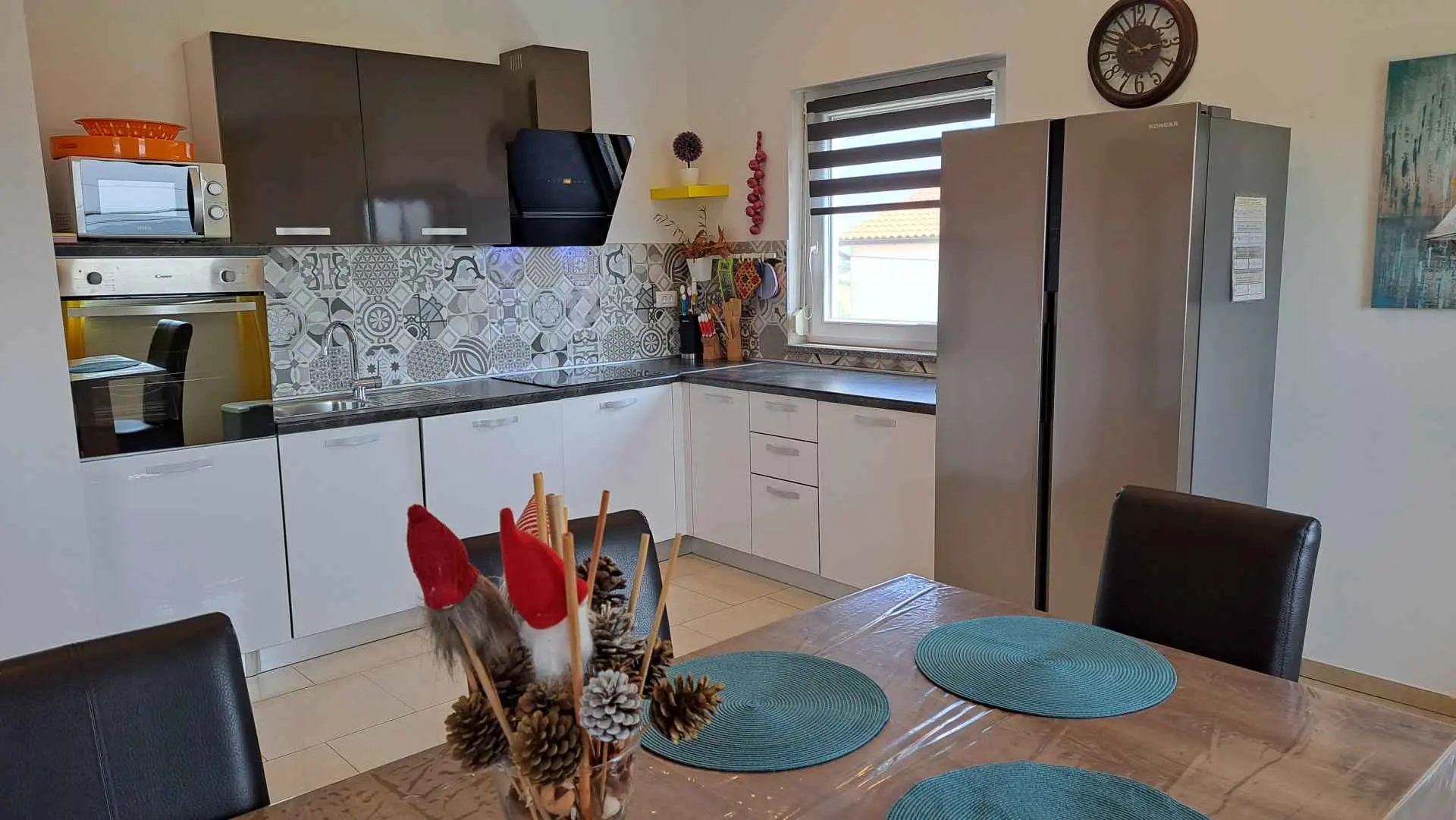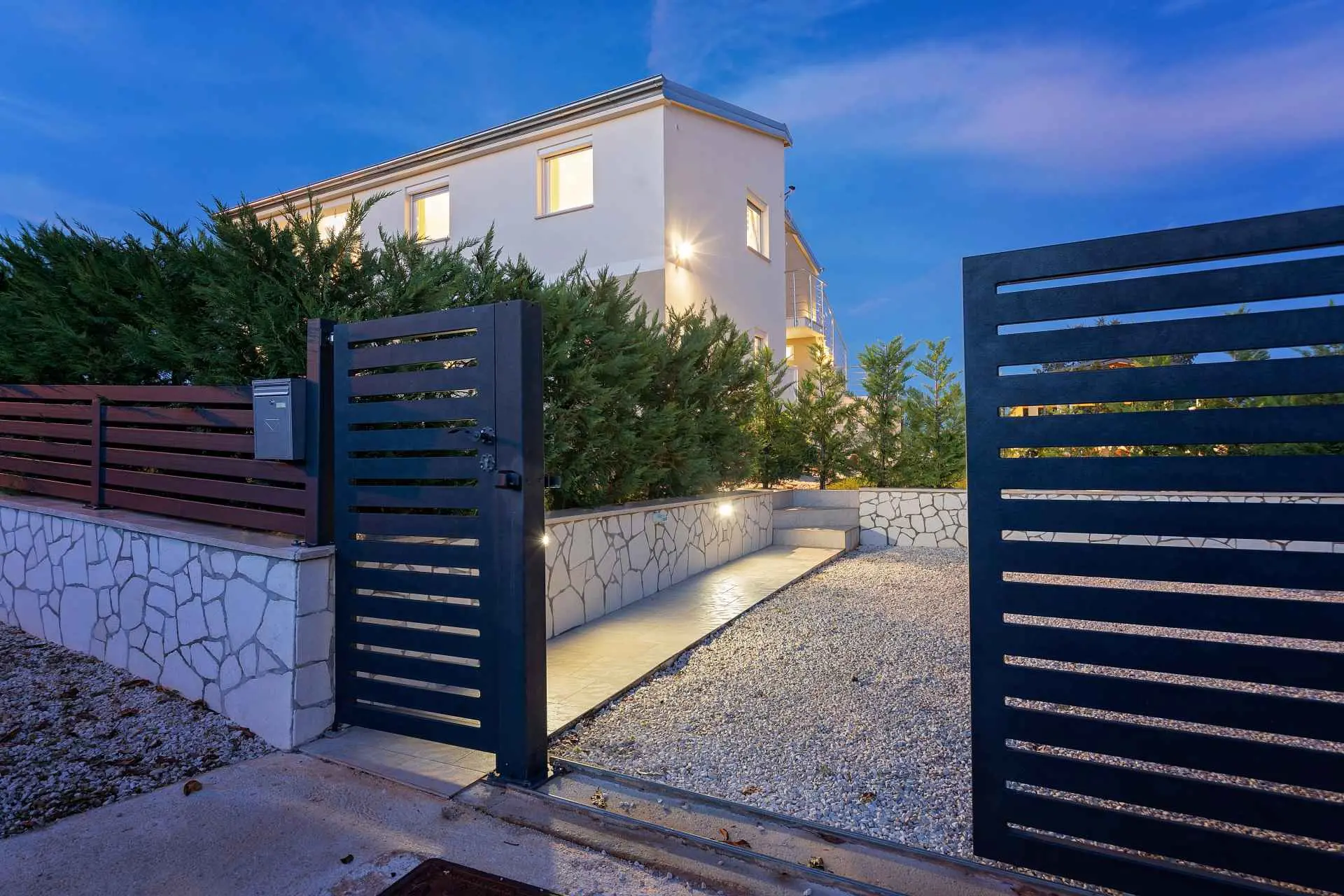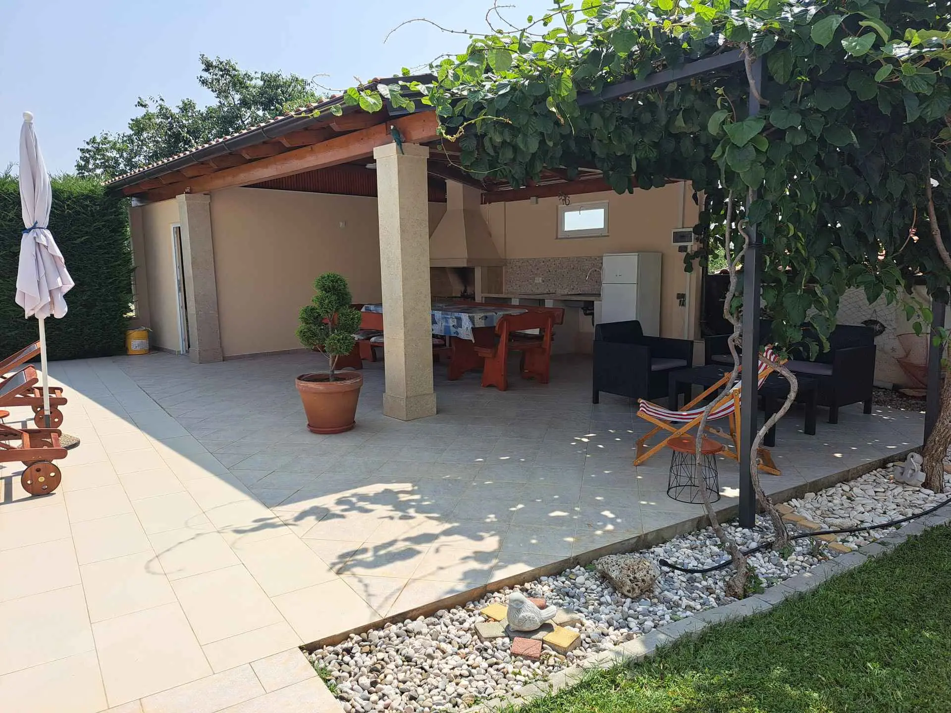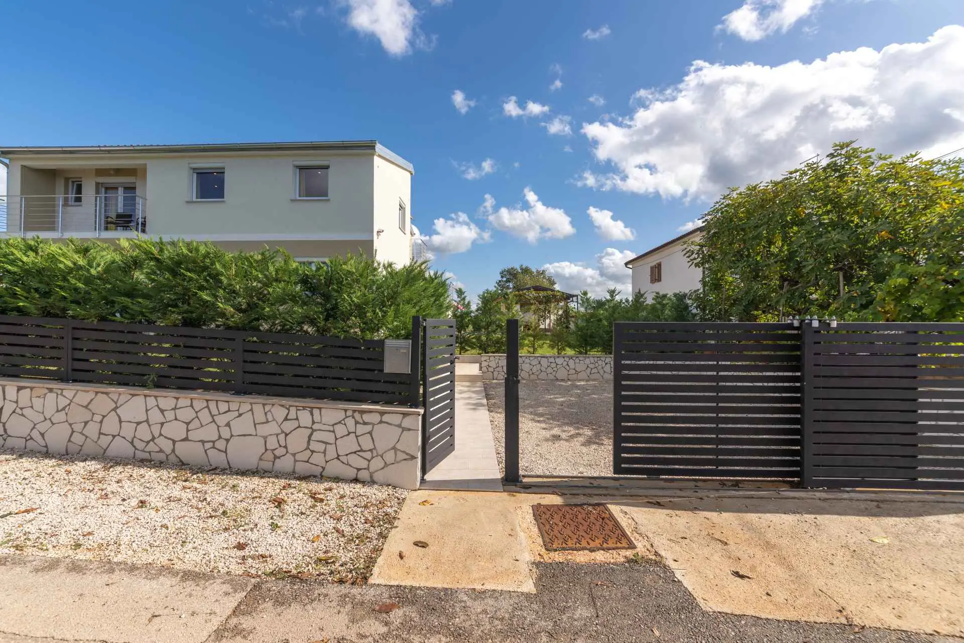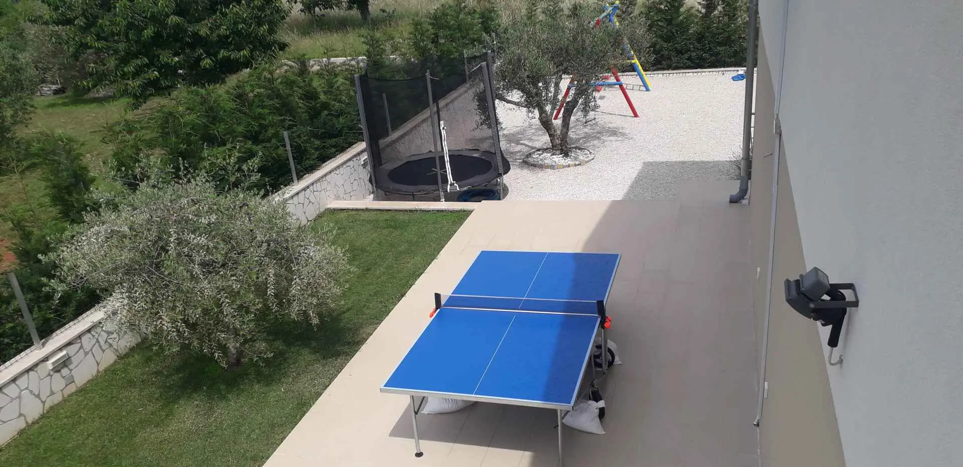 Dům se nachází v malém klidném městečku Kaštelir, pouhých 8 km od Poreče. Dům se skládá ze 2 apartmánů, každý má svůj vchod, takže je vhodný pro 2 rodiny, dvůr je společný a skvělý pro socializaci. Dům se pronajímá jako celek. Každý apartmán se skládá z kuchyně, obývacího pokoje a 2 ložnic. Každý pokoj má svou koupelnu, jak v prvním patře, tak v přízemí, s jedním dalším WC v přízemí. Dvůr je kompletně oplocený. K dispozici máte vlastní bazén 8m x 4m, trampolínu, dětské hřiště, venkovní terasu s grilem a 4 parkovací místa, z toho dvě krytá. Ideální místo pro strávení dovolené s dětmi. Večírky nejsou povoleny.
