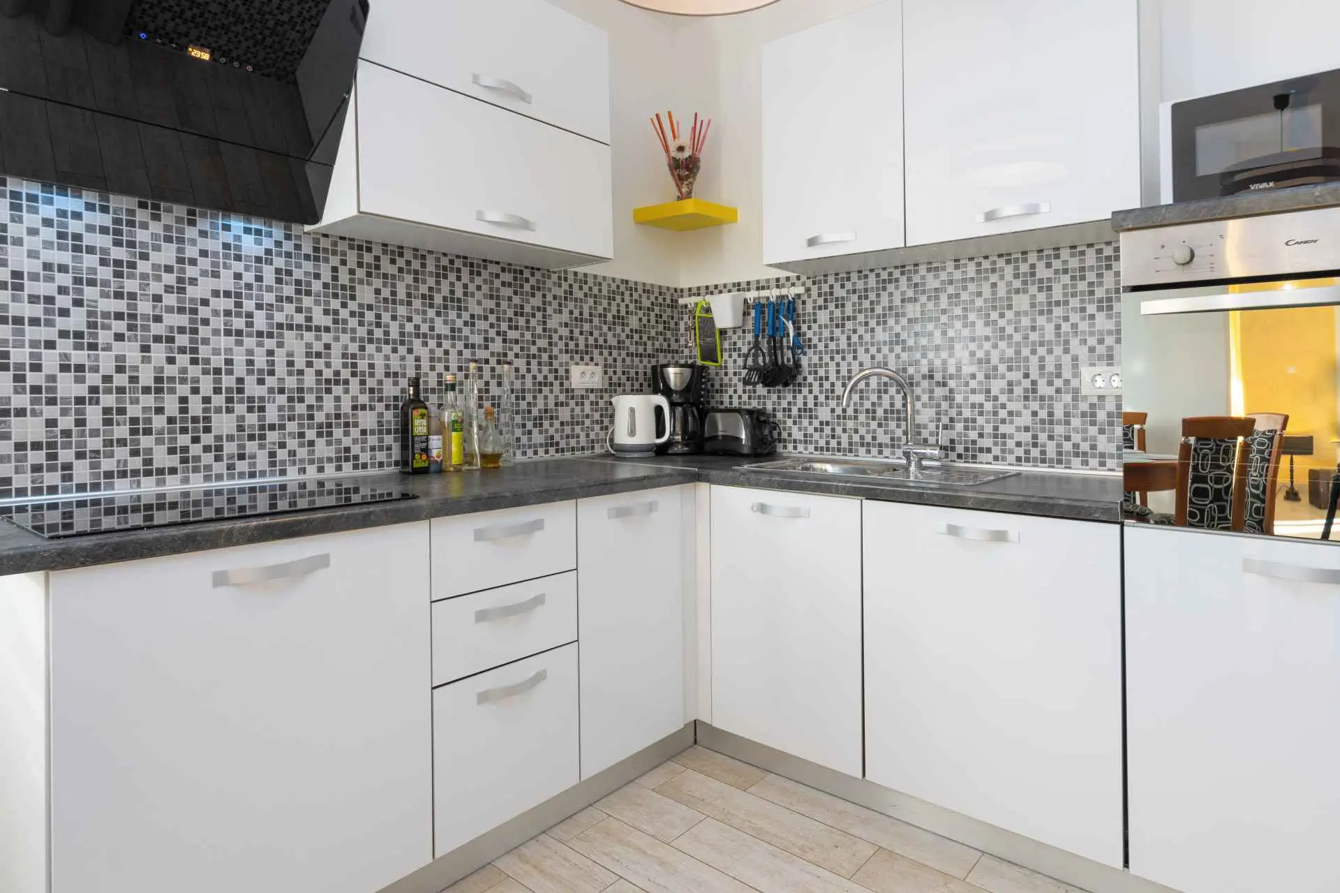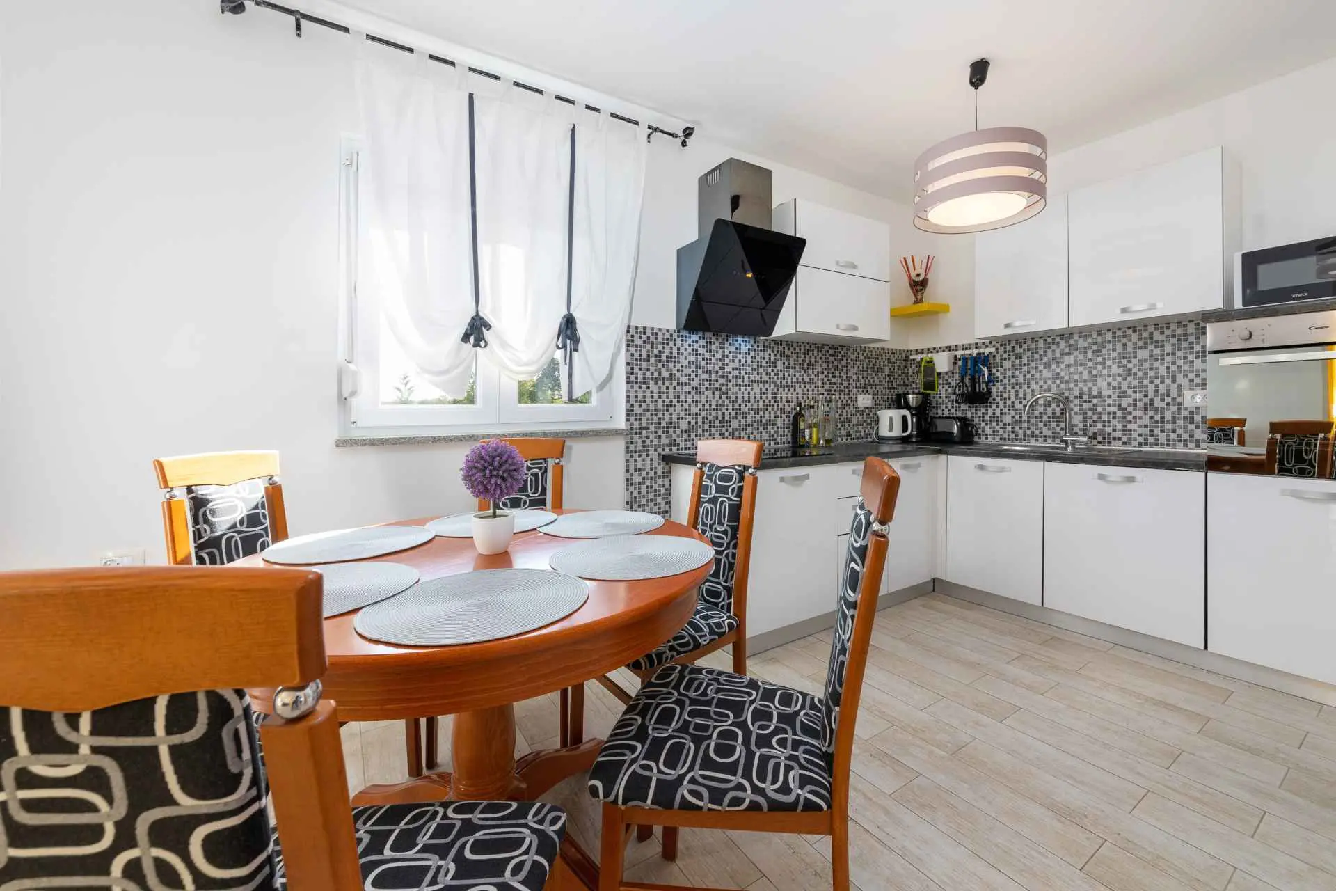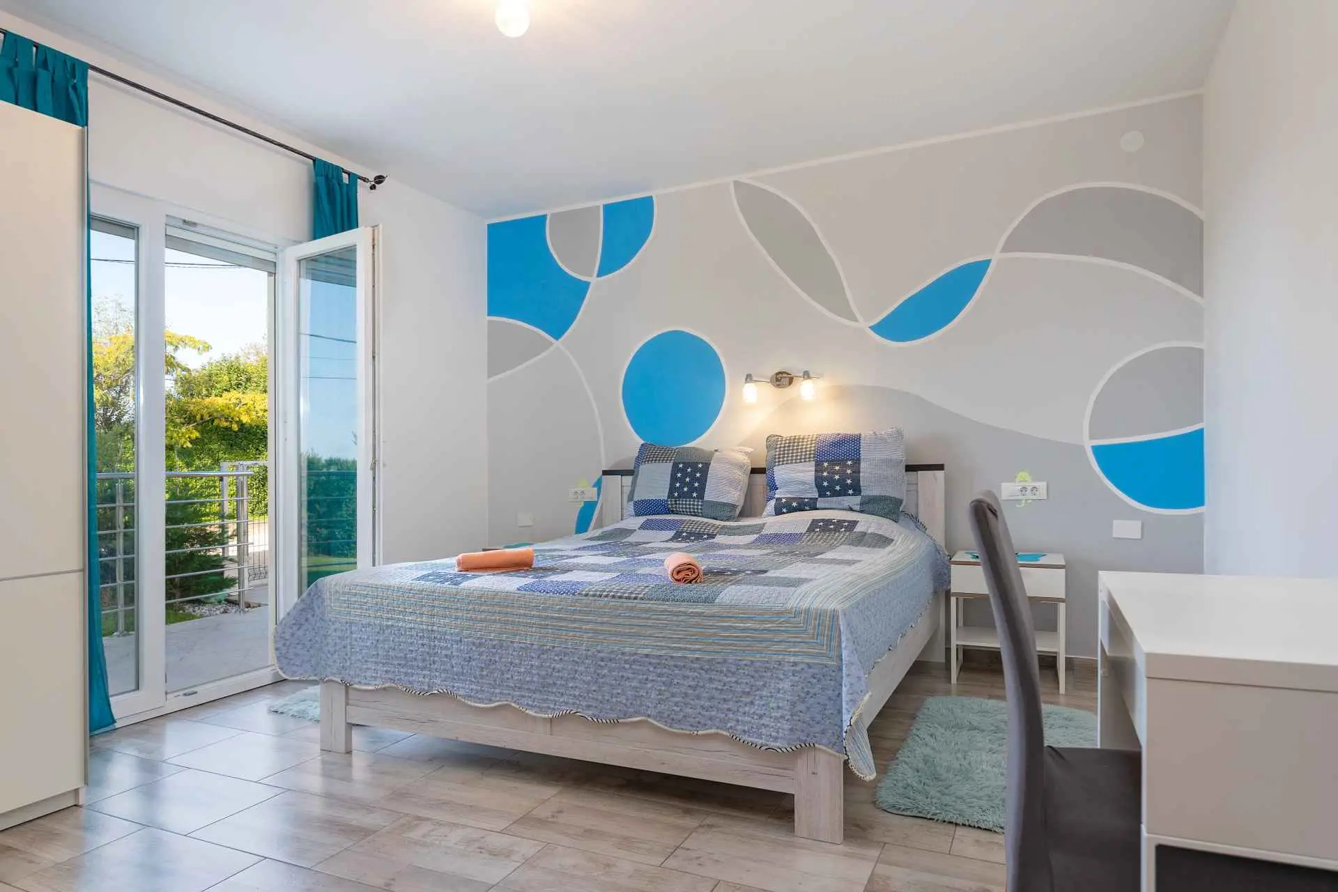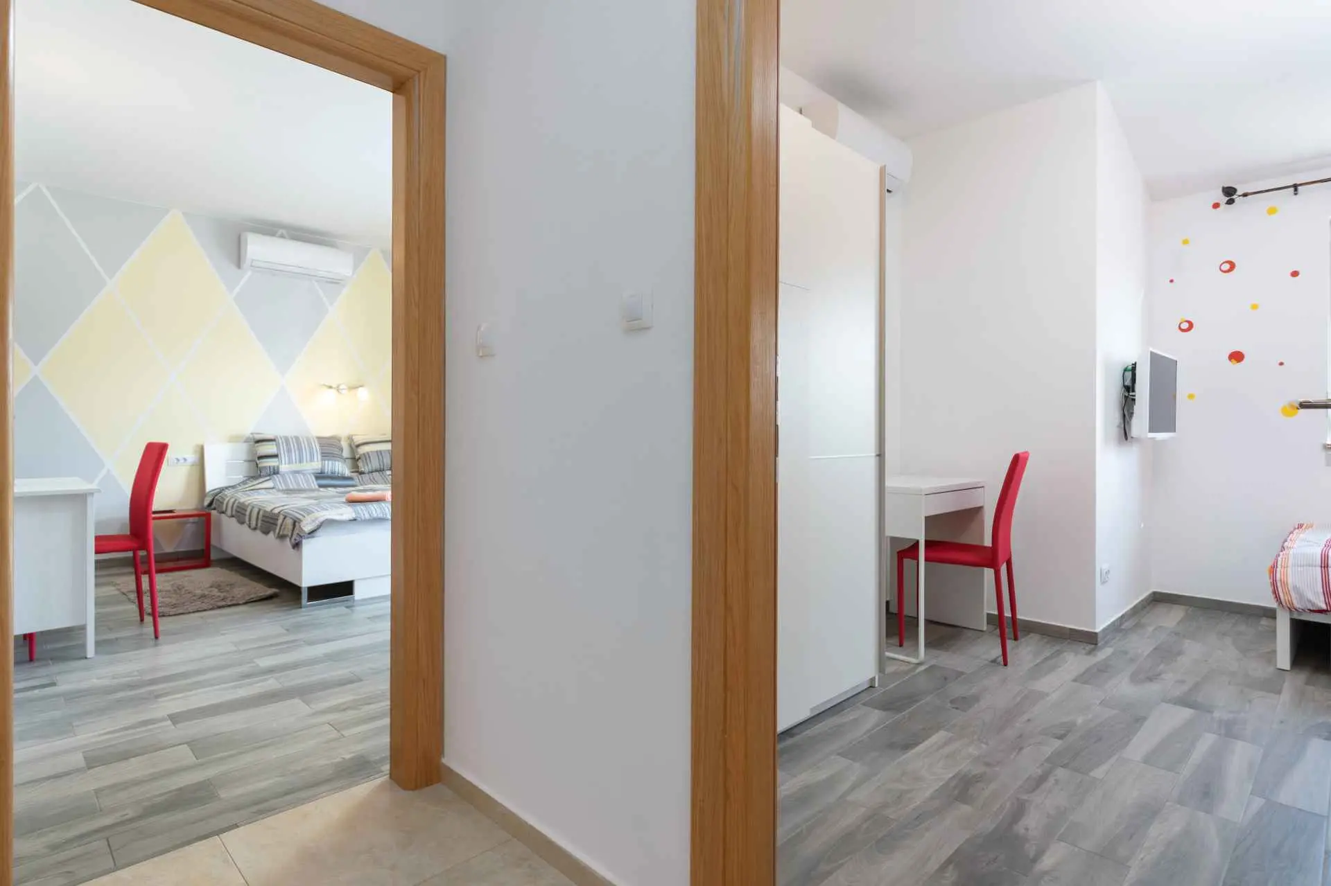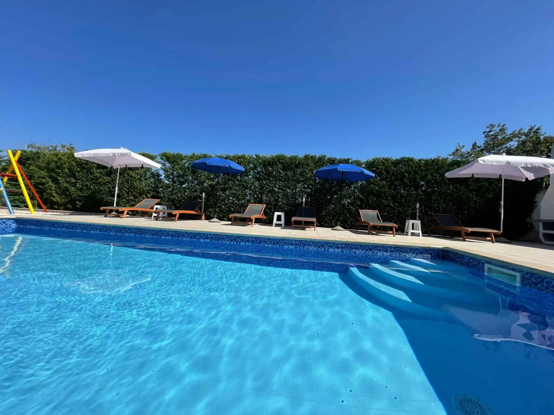 Dům se nachází v malém klidném městečku Kaštelir, pouhých 8 km od Poreče. Dům se skládá ze 2 apartmánů, každý má svůj vchod, takže je vhodný pro 2 rodiny, dvůr je společný a skvělý pro socializaci. Dům se pronajímá jako celek. Každý apartmán se skládá z kuchyně, obývacího pokoje a 2 ložnic. Každý pokoj má svou koupelnu, jak v prvním patře, tak v přízemí, s jedním dalším WC v přízemí. Dvůr je kompletně oplocený. K dispozici máte vlastní bazén 8m x 4m, trampolínu, dětské hřiště, venkovní terasu s grilem a 4 parkovací místa, z toho dvě krytá. Ideální místo pro strávení dovolené s dětmi. Večírky nejsou povoleny.