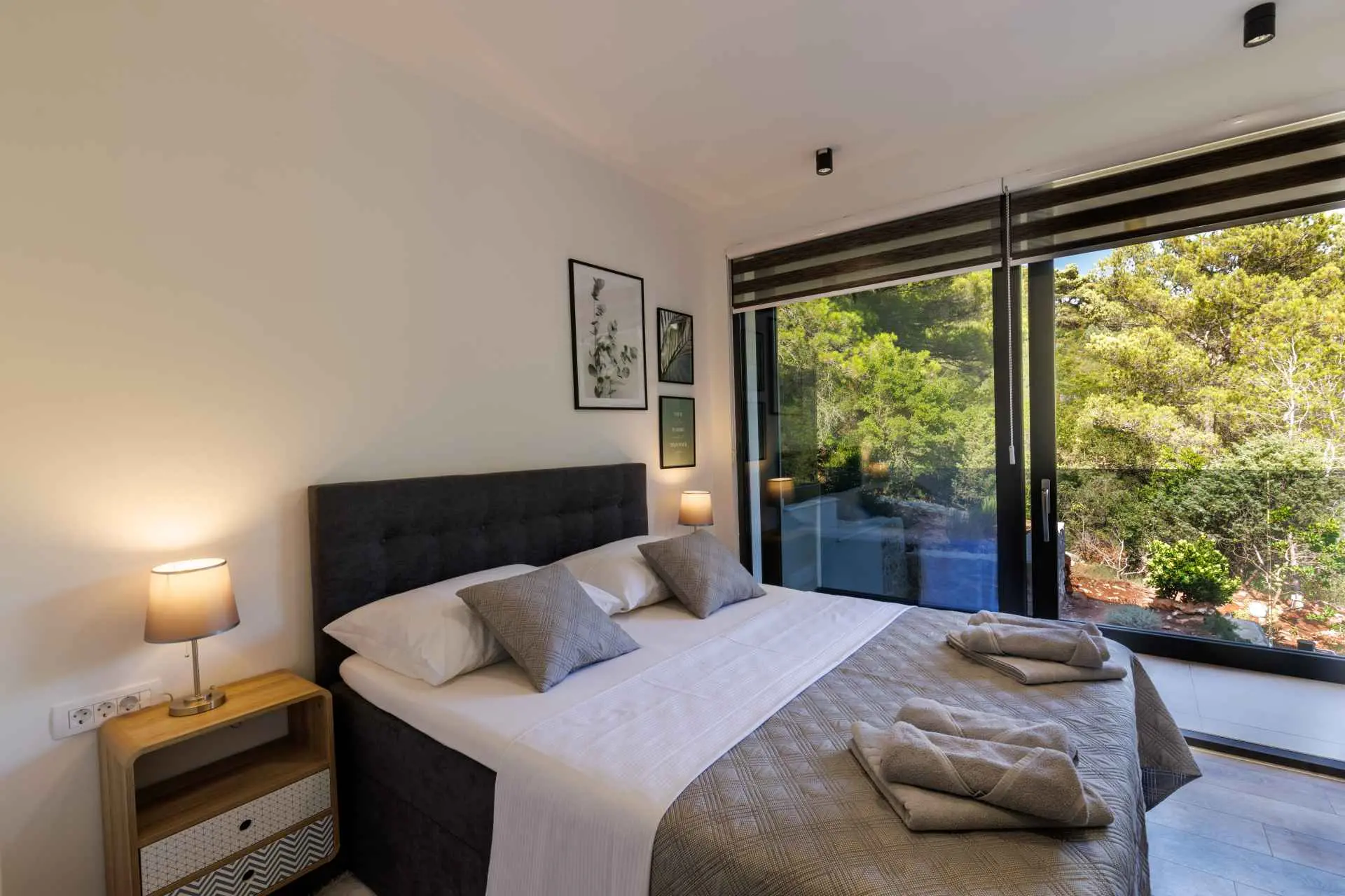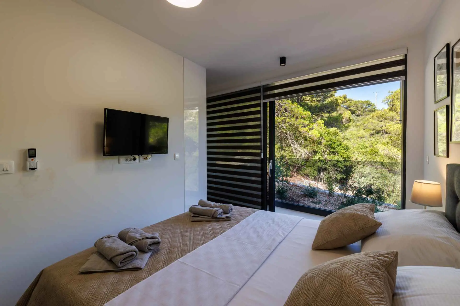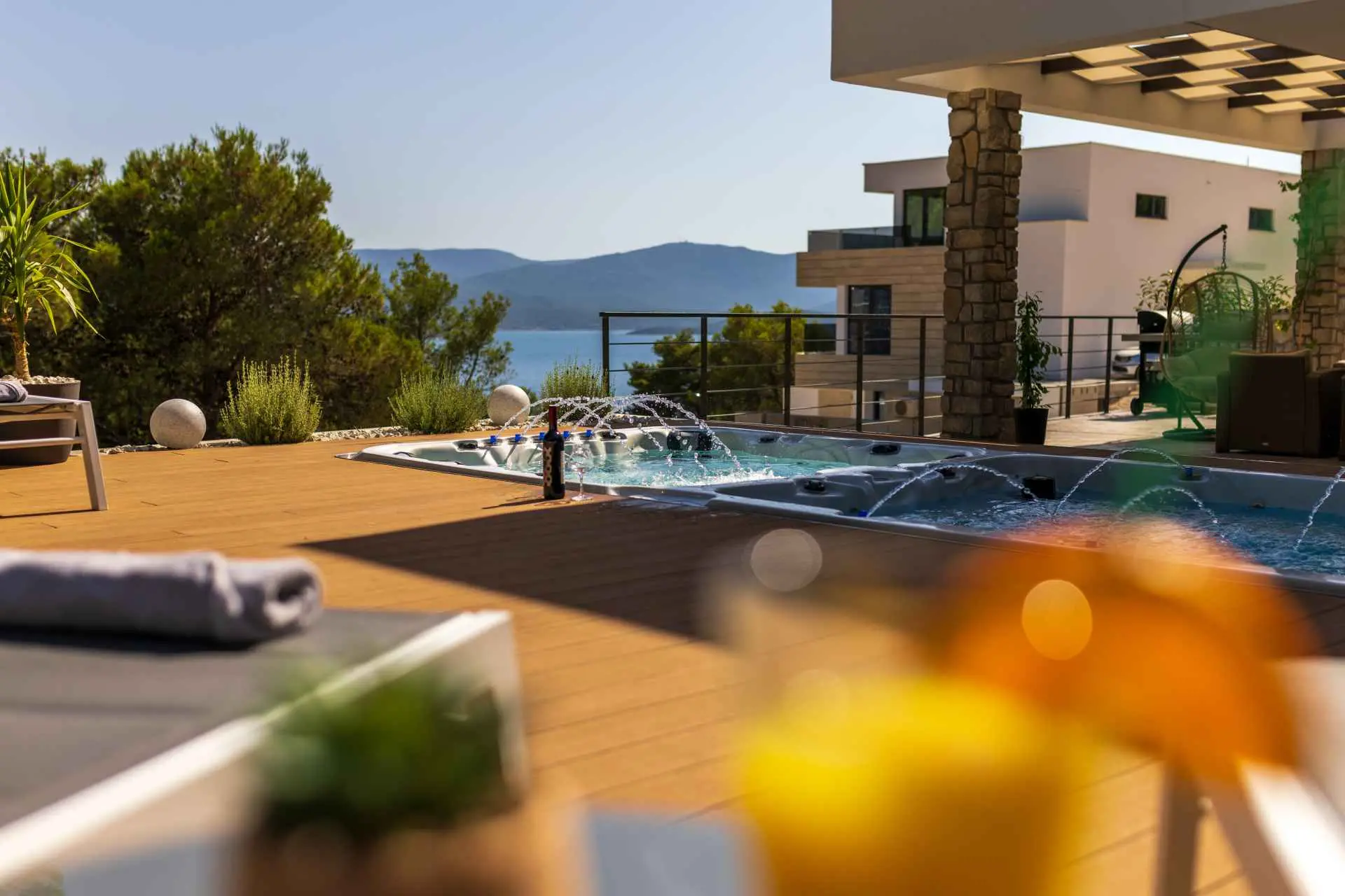 O NEMOVITOSTI Moderně zařízený a plně vybavený dům pro nekompromisní požitek. Vnitřní prostor nabízí tři ložnice v prvním patře, s koupelnami a krásným výhledem na moře nebo les. V přízemí se nachází obývací pokoj, jídelna, velká kuchyně vybavená všemi potřebnými spotřebiči, koupelna, prádelna a dětský pokoj s hernou. V přízemí pokračuje prostorná terasa, kde si můžete vychutnat jídlo venku, s krásným výhledem a jedinečnou zvukovou kulisou, kterou poskytují cvrčci a ptáci. K dispozici je také bazén s protiproudem s hydromasážní vanou pro 6 osob a prostorem na opalování. Dům je obklopen zahradou, kde si každý najde to své. Villa Hedona je vám plně k dispozici.